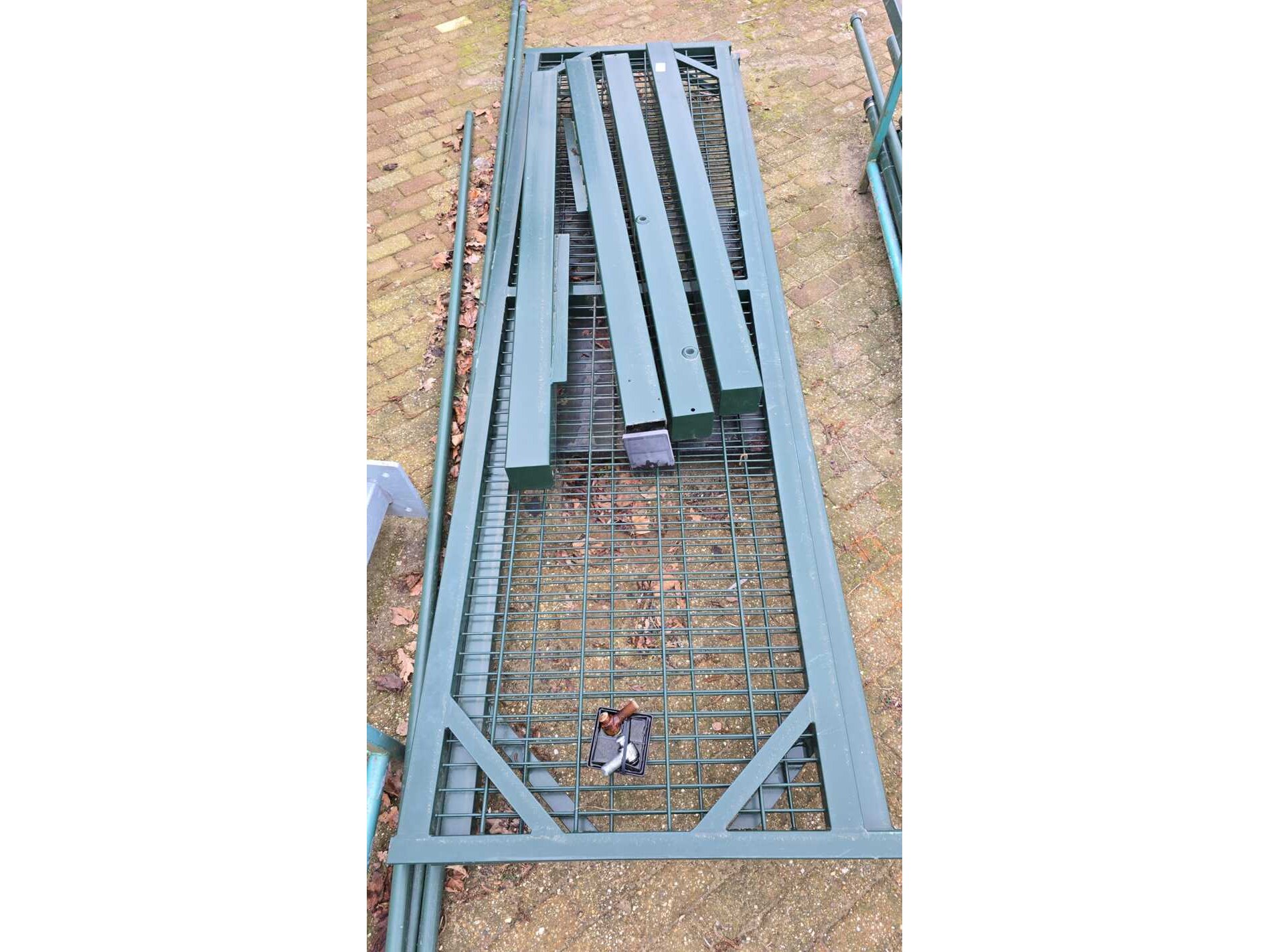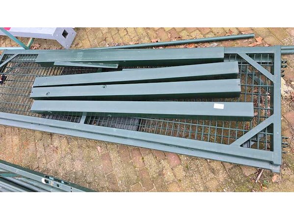 Product: Diverse hekwerk materiaal Kleur: groen Materiaal: metaal Conditie: gebruikt Specificaties: Betreft alleen hekwerk wat op de foto te zien is.