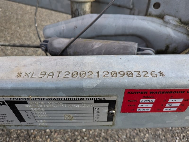 Merk: Kuiper Product: Schaftkeet BouwJaar: 2012 Conditie: Gebruikt Specificaties: Basiskenmerken Kenteken: 60-WJ-KJ Goedkeuringsnummer: KUPA 2004 C Identificatienummer: *XL9AT200212090326* Datum eerste toelating: 19 september 2012 Maten & Gewichten Lengte: 5.740 mm Breedte: 2.260 mm Hoogte: ca. 2.80m Wielbasis: 800 mm Massa rijklaar: 1.225 kg Max. massa: 2.000 kg Laadvermogen: 775 kg