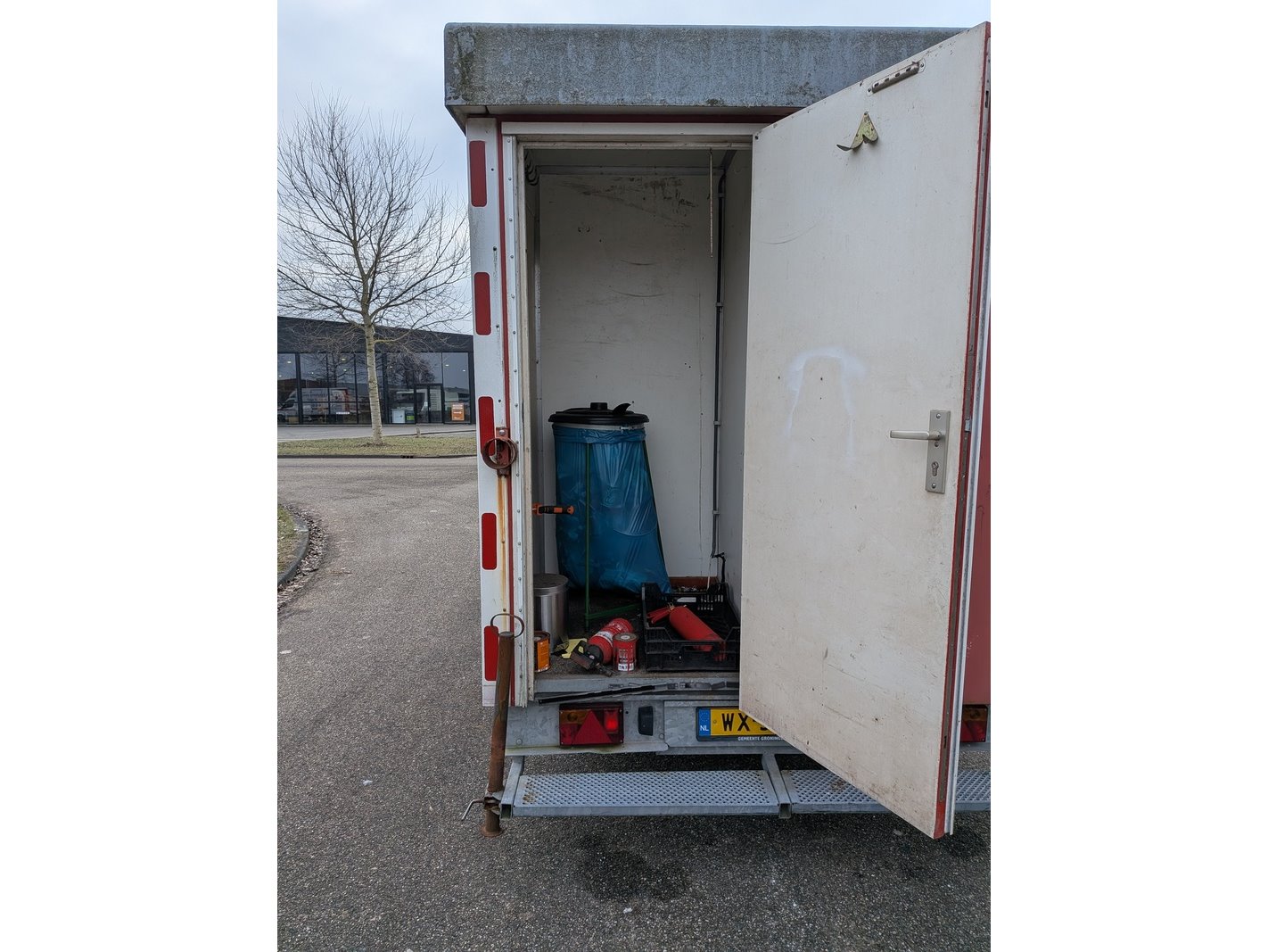 Merk: Kuiper Product: Schaftkeet BouwJaar: 2007 Conditie: Gebruikt Specificaties: Basiskenmerken Kenteken: WX-JZ-53 Goedkeuringsnummer: KUPA 2003 16 Identificatienummer: *XL9AS130107090092* Datum eerste toelating: 15 mei 2007 Maten & Gewichten Lengte: 5.260 mm Breedte: 2.160 mm Hoogte: ca. 2.80m Massa rijklaar: 830 kg Max. massa: 1.300 kg Laadvermogen: 470 kg