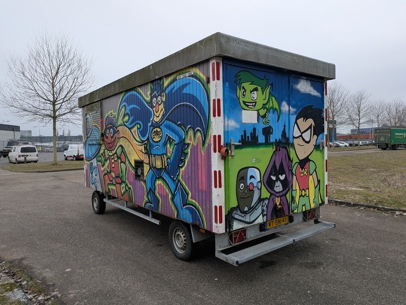 Merk: Kuiper Product: Schaftkeet BouwJaar: 2006 Conditie: Gebruikt Specificaties: Basiskenmerken Kenteken: WT-BN-41 Goedkeuringsnummer: onbekend Identificatienummer: XL9AD200206090792 Datum eerste toelating: 18 april 2006 Maten & Gewichten Lengte: 6.930 mm Breedte: 2.360 mm Hoogte: ca. 2.87m Wielbasis: 3.700 mm Massa rijklaar: 1.350 kg Max. massa: 2.000 kg Laadvermogen: 650 kg
