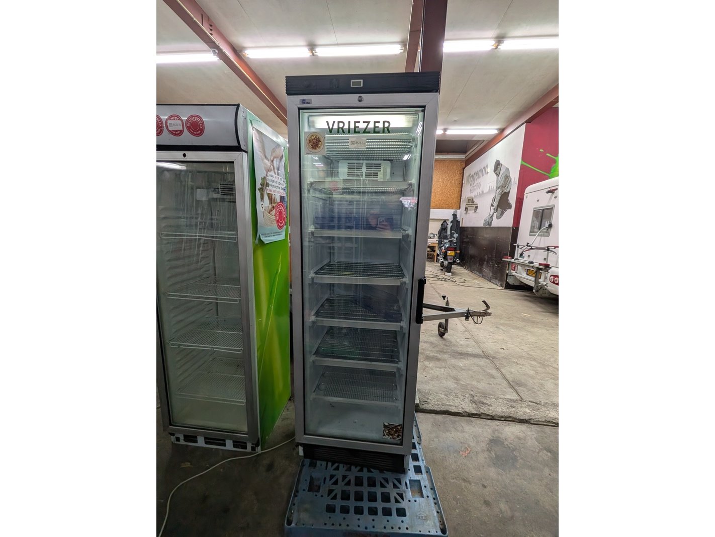 Merk: Esta Product: Glasdeurvrieskast Afmeting: hoogte ca. 184 cm Conditie: gebruikt Specificaties: 230V, 270 L
