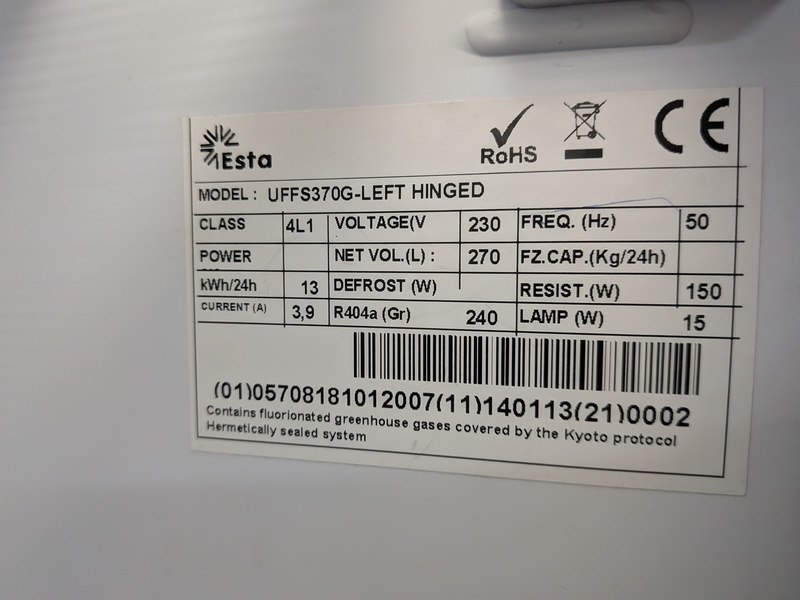 Glasdeurvrieskast esta, uffs370g-left hinged