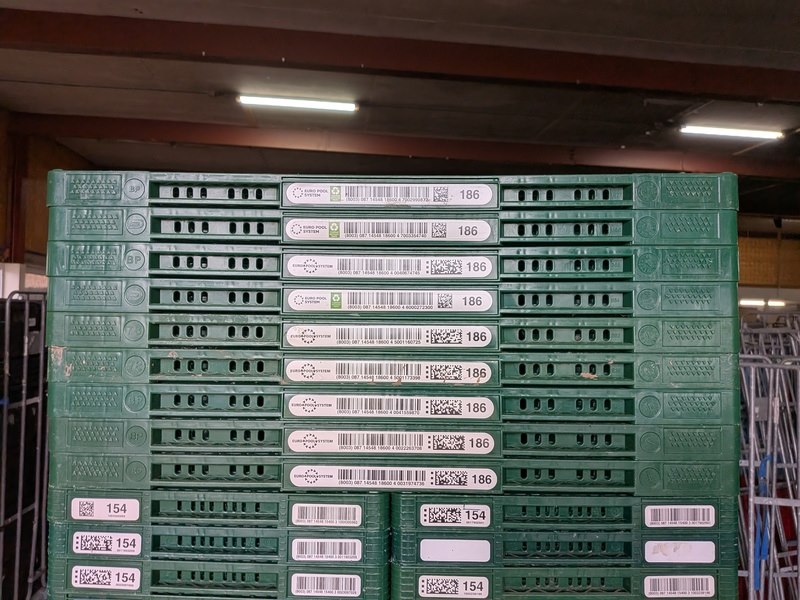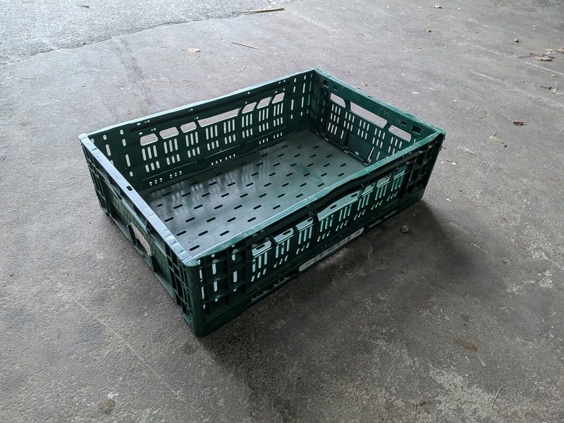 Product: Kunststof Euronorm vouwkrat Afmeting: (lxb) ca. 600 x 400 mm, hoogtes variëren Conditie: gebruikt Specificaties: De Euronorm is gebaseerd op een basismaat van 600 x 400 mm (L x B). Gebruikelijke bodemmaten zijn o.a. 200 x 150 mm, 300 x 200 mm, 400 x 300 mm, 600 x 400 mm en 800 x 600 mm.