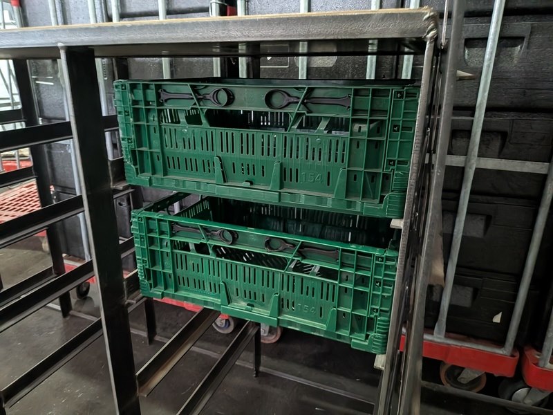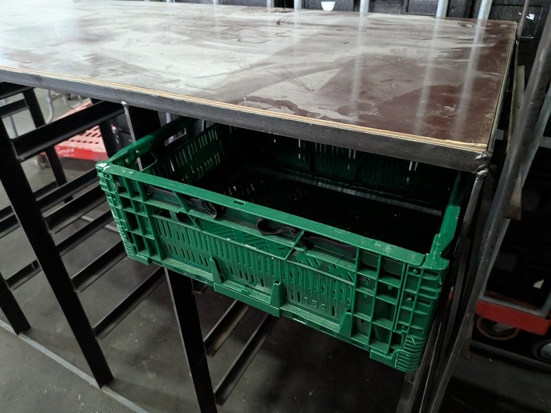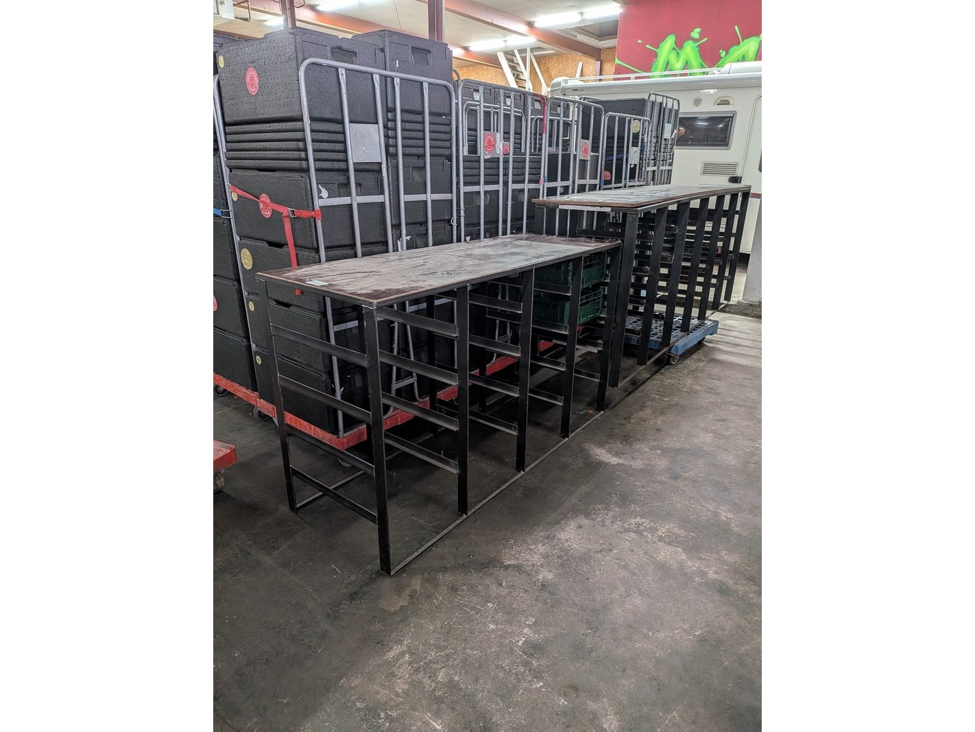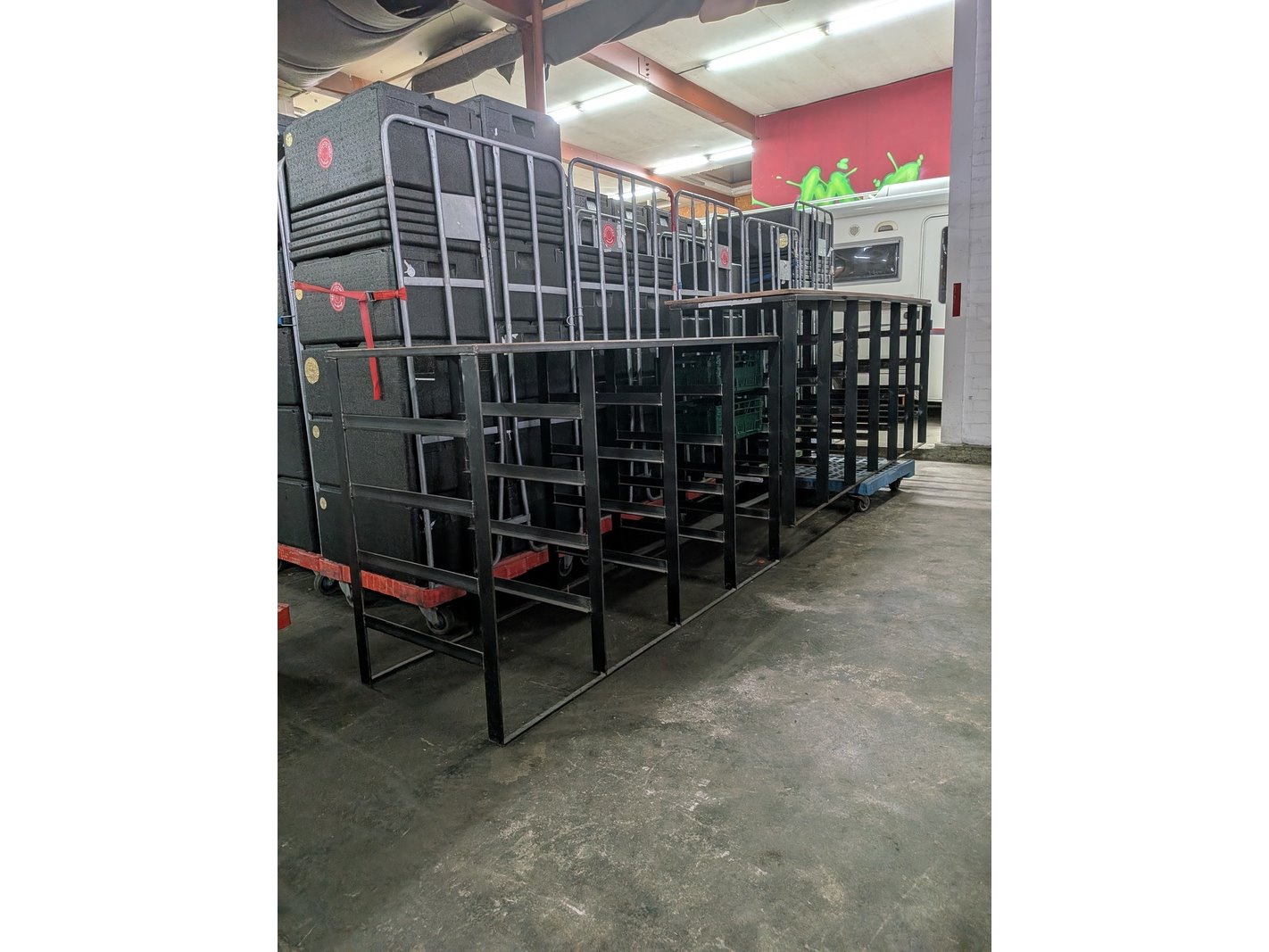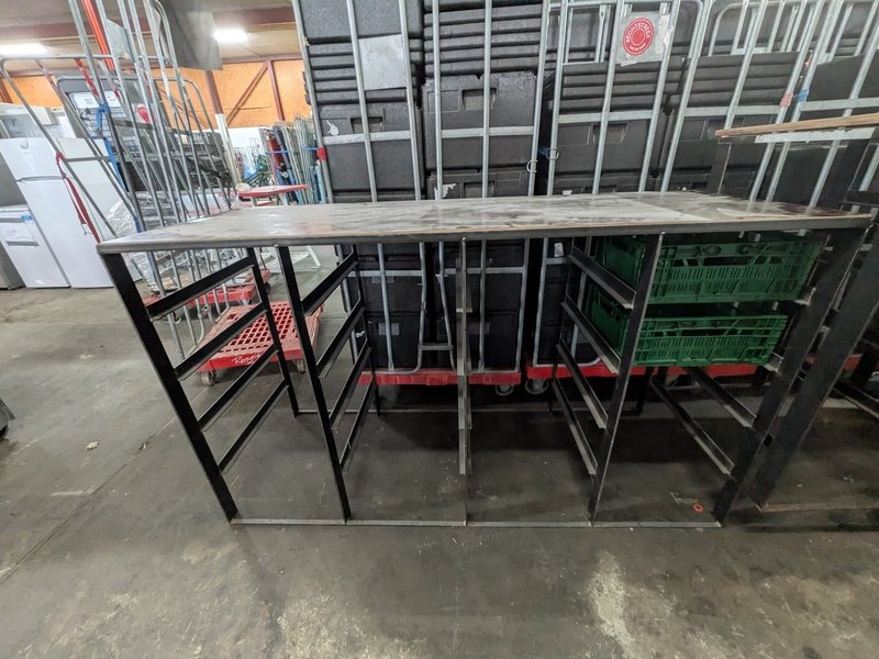 Product: Metalen schappenstelling t.b.v. Euronorm bakken/kratten Materiaal: Metaal Conditie: gebruikt Specificaties: Bestaande uit: 1x schappenstelling (lxbxh) ca. 165 x 60 x 97 cm 1x schappenstelling (lxbxh) ca. 246 x 60 x 97 cm Geschikt voor universele Euronorm kratten of bakken, waaronder kavel 20, kunststof vouwkratten. De Euronorm is gebaseerd op een basismaat van 600 x 400 mm (L x B). Gebruikelijke bodemmaten zijn o.a. 200 x 150 mm, 300 x 200 mm, 400 x 300 mm, 600 x 400 mm en 800 x 600 mm