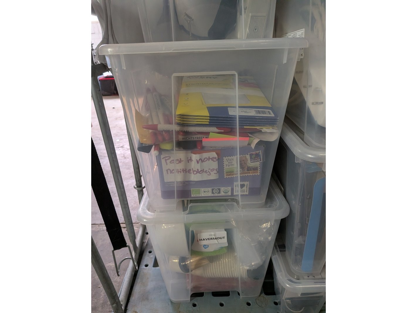 Assortiment kantoorartikelen in 4x rolcontainer