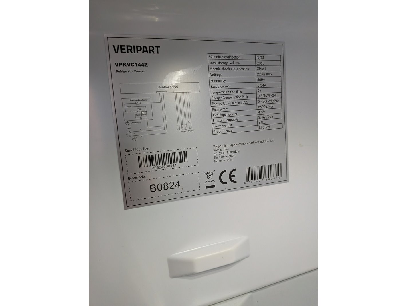 Merk: Veripart Product: Koel- / vriescombinatie Afmeting: 205L, hoogte ca. 143 cm Conditie: gebruikt Specificaties: 230V