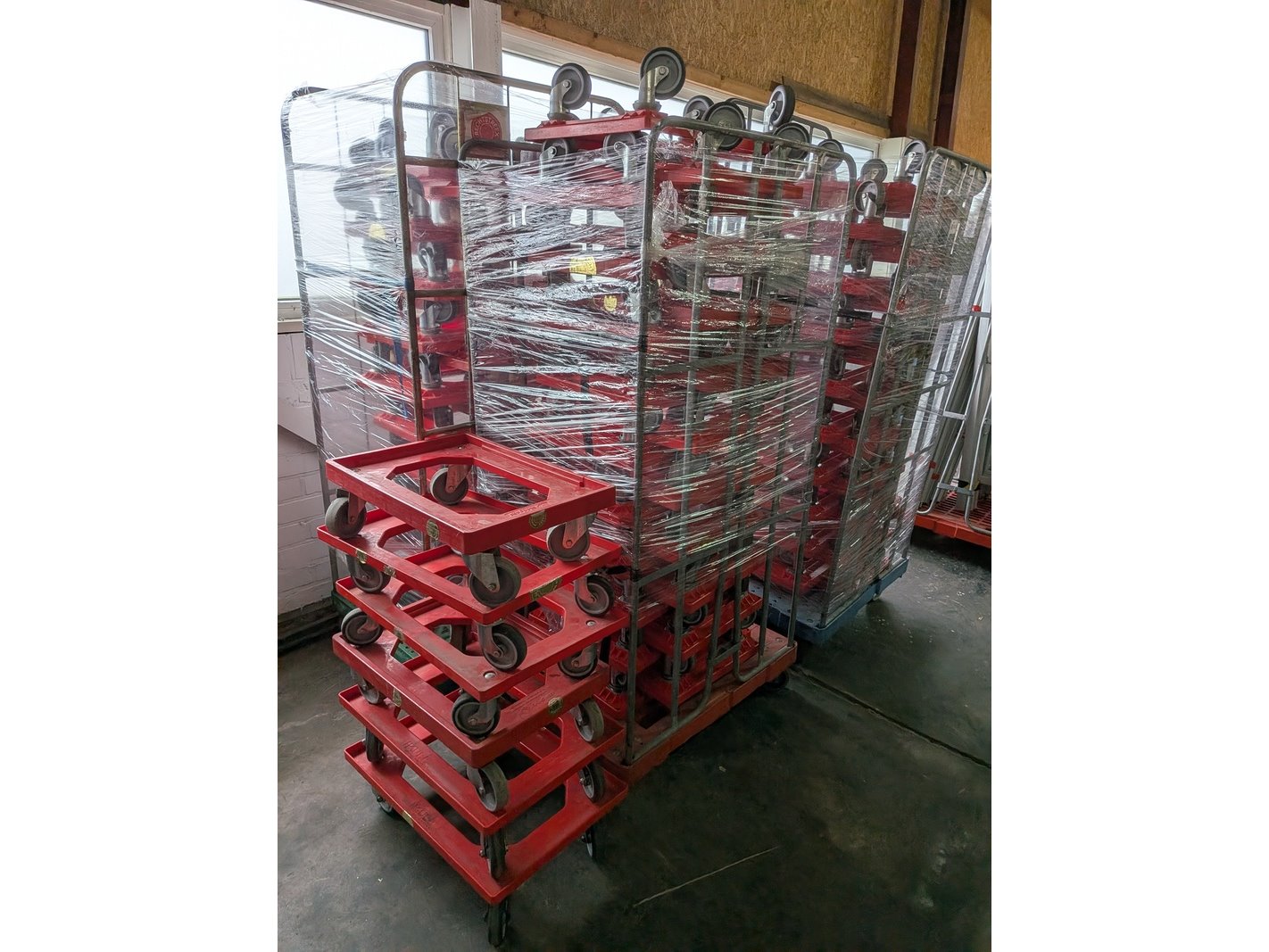 Merk: Delmo Product: Kunsstof transportroller t.b.v. Euronorm bakken/kratten Afmeting: (lxb) ca. 60 x 40 cm Conditie: gebruikt Specificaties: Geschikt voor o.a. vouwkratten (zie kavel 20) Inclusief 4x rolcontainer
