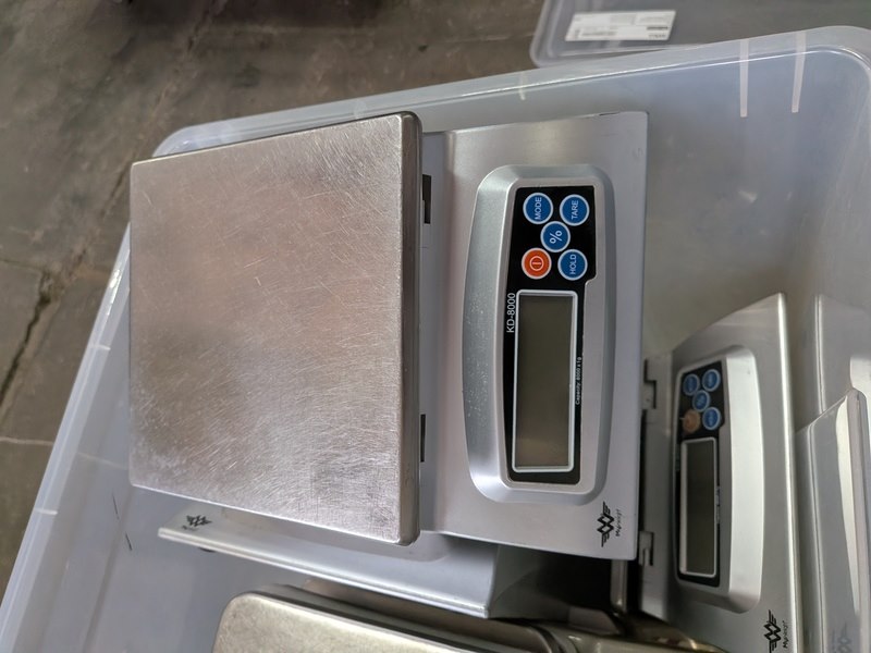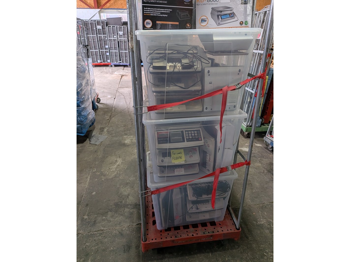 Merk: O.a. Myweigh Product: Partij weegschalen Conditie: gebruikt Specificaties: Inclusief rolcontainer
