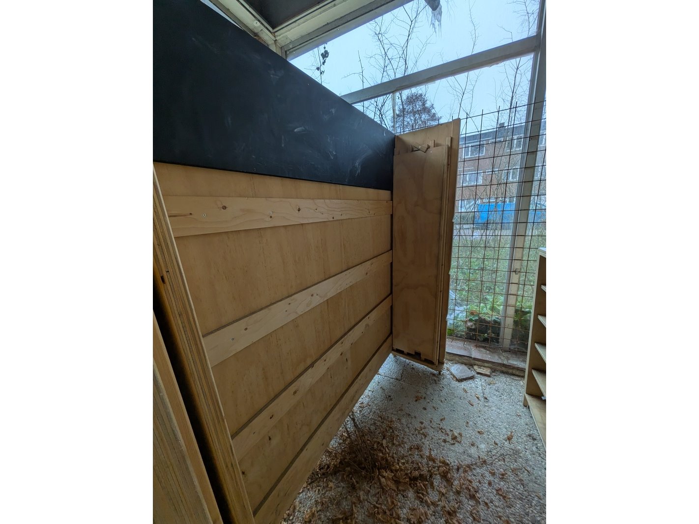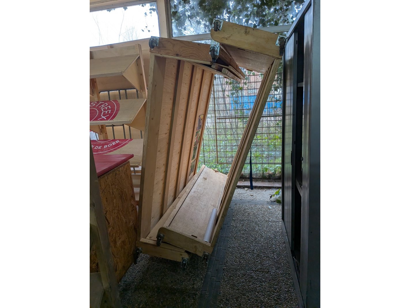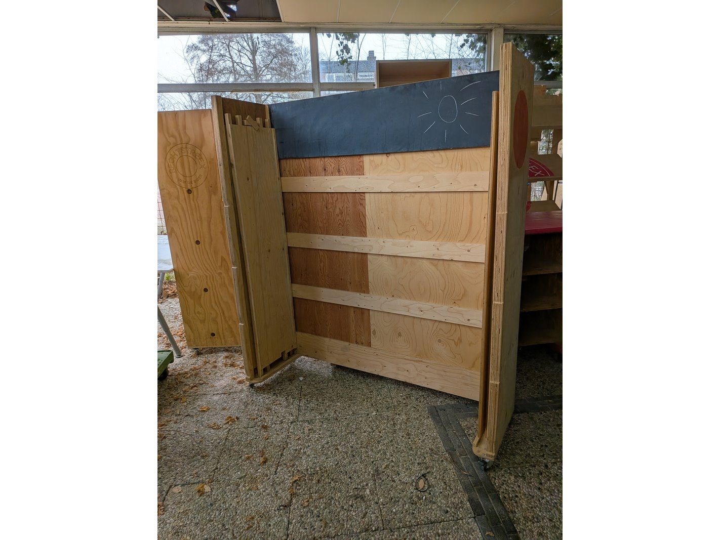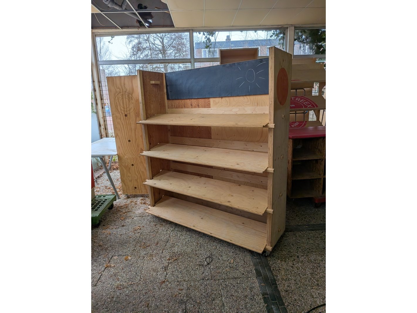 Product: Diverse houten showroommeubels Conditie: gebruikt Specificaties: Bestaande uit o.a.: 2x showroommeubel (hxbxd) ca. 210 x 130 x 52 cm 1x showroommeubel (hxbxd) ca.174 x 127 x 40 cm 1x wandkast (hxbxd) ca. 112 x 193 x 40 cm 1x tafel (lxbxh) ca. 160 x 80 x 78 cm Inclusief 2x rolcontainer 1x toonbank met rood blad (hxbxd) ca. 85 x 130 x 61 cm, 2x wiel ontbreekt 2x verrijdbare houten wand 1x staande kast (hxbxd) ca. 218 x 55 x 88 cm