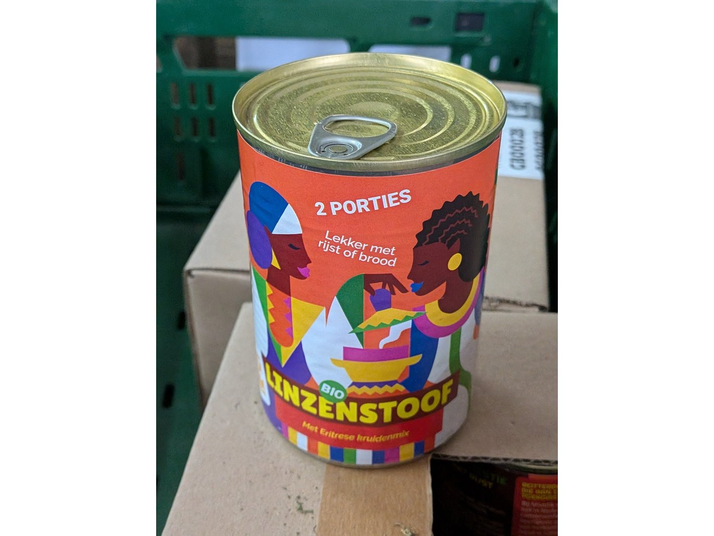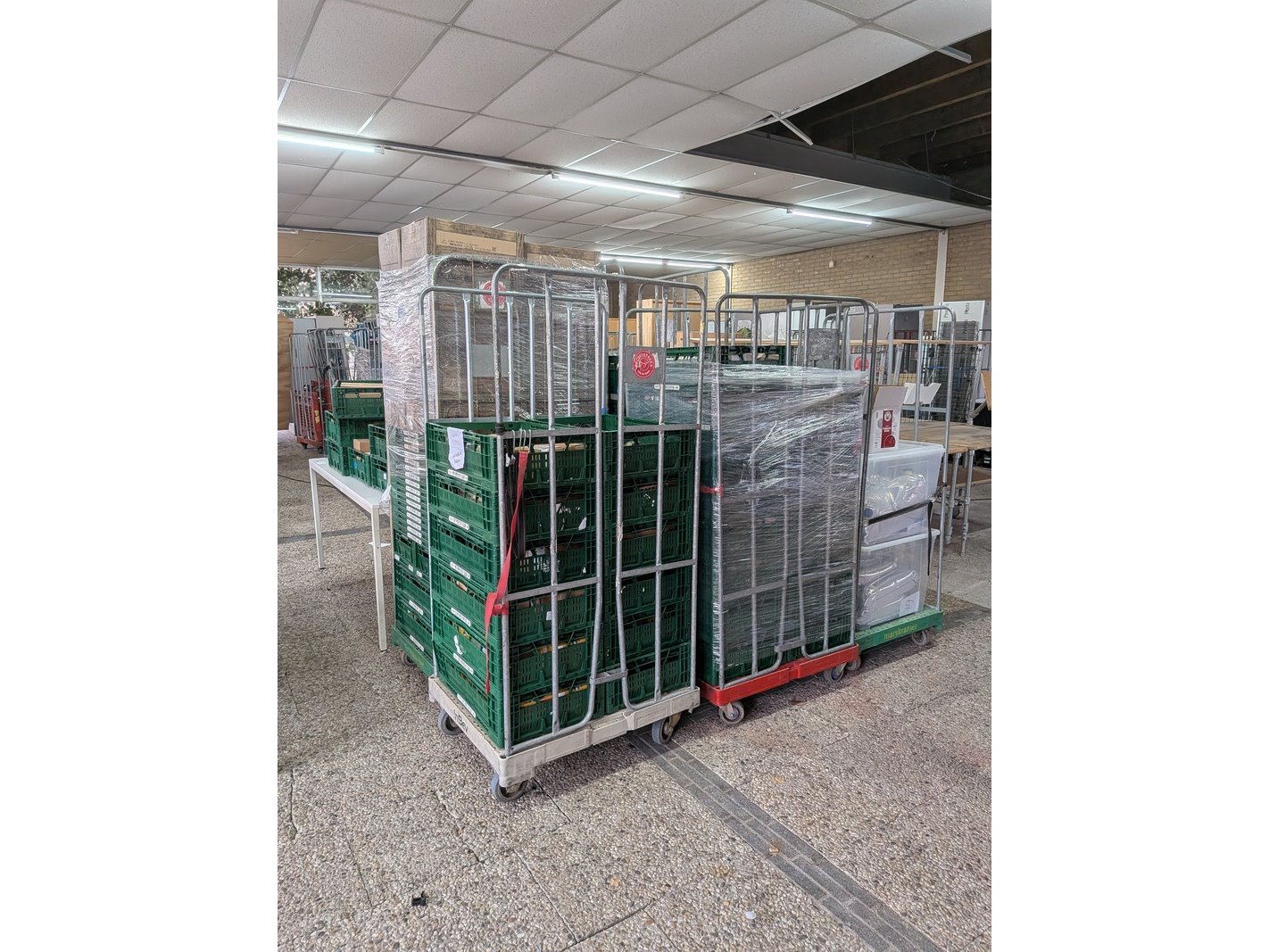 Product: Rolcontainer gevuld met diverse levensmiddelen Conditie: gebruikt Specificaties: Bestaande uit o.a.: thee, crackers, chips, wijn, linzenstoof, soy sauce, etc. De levensmiddelen hebben diverse t.h.t.(ten minste houdbaar tot) gegevens, zie foto's voor meer info. Inclusief diverse kunststof vouwkratten en 4x rolcontainer