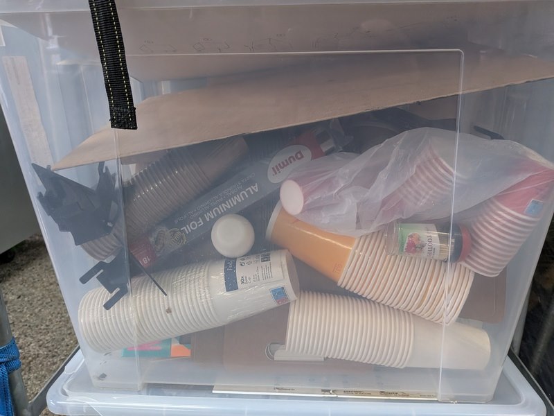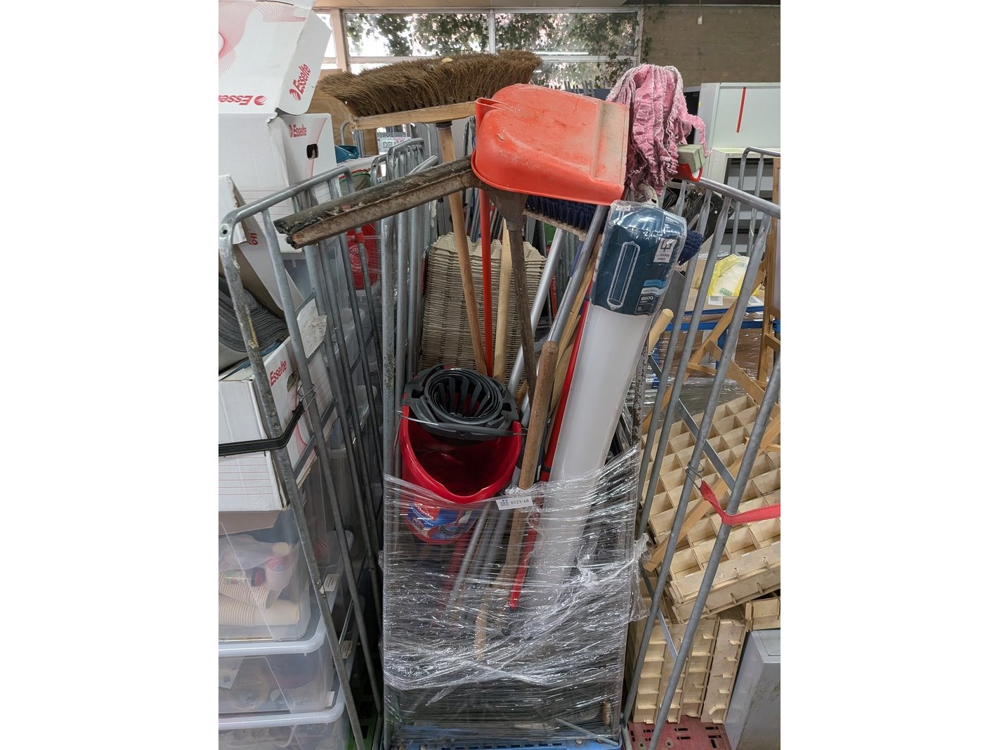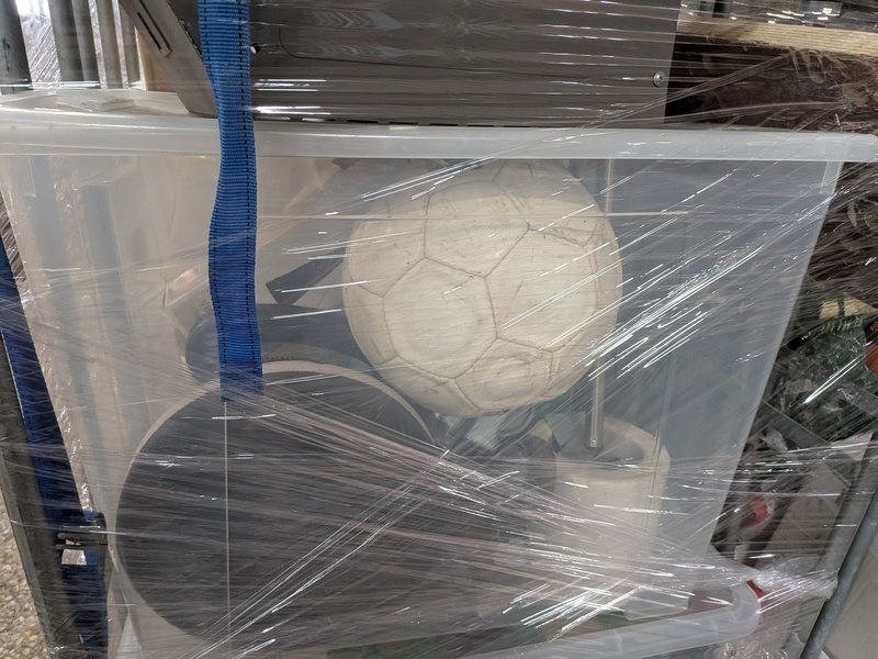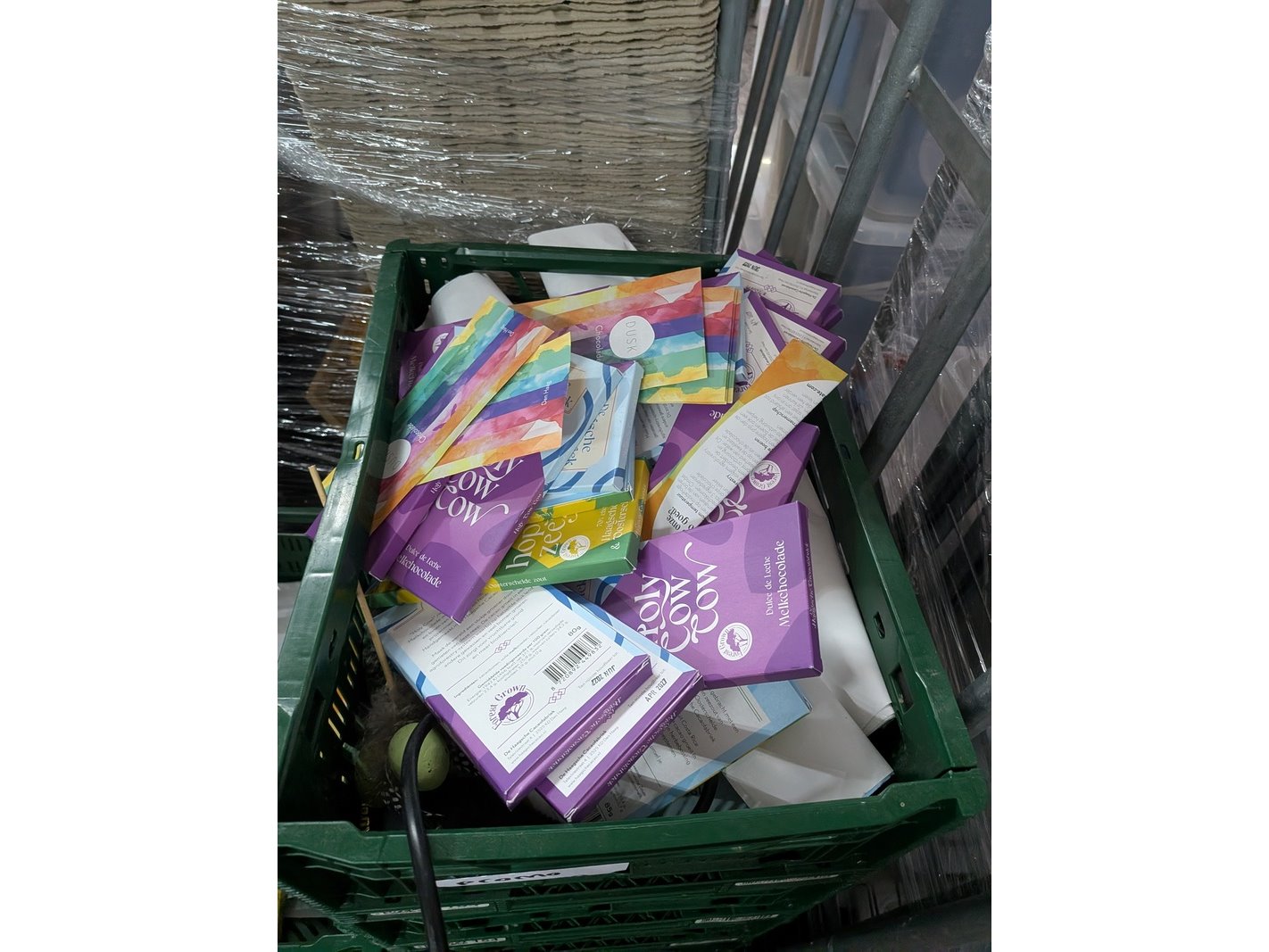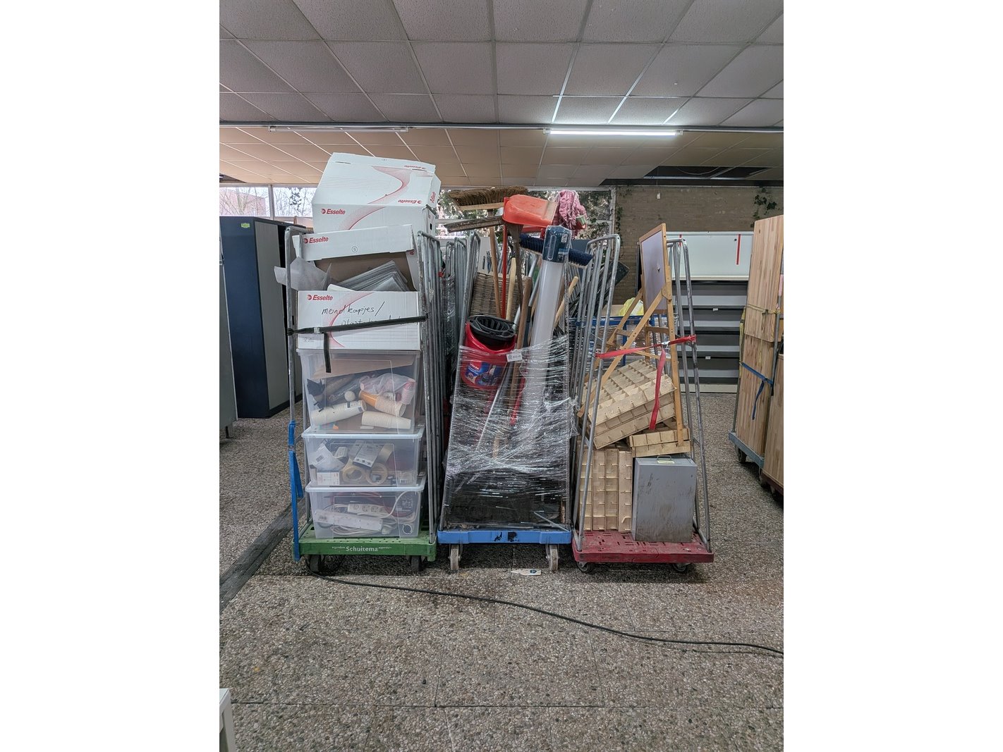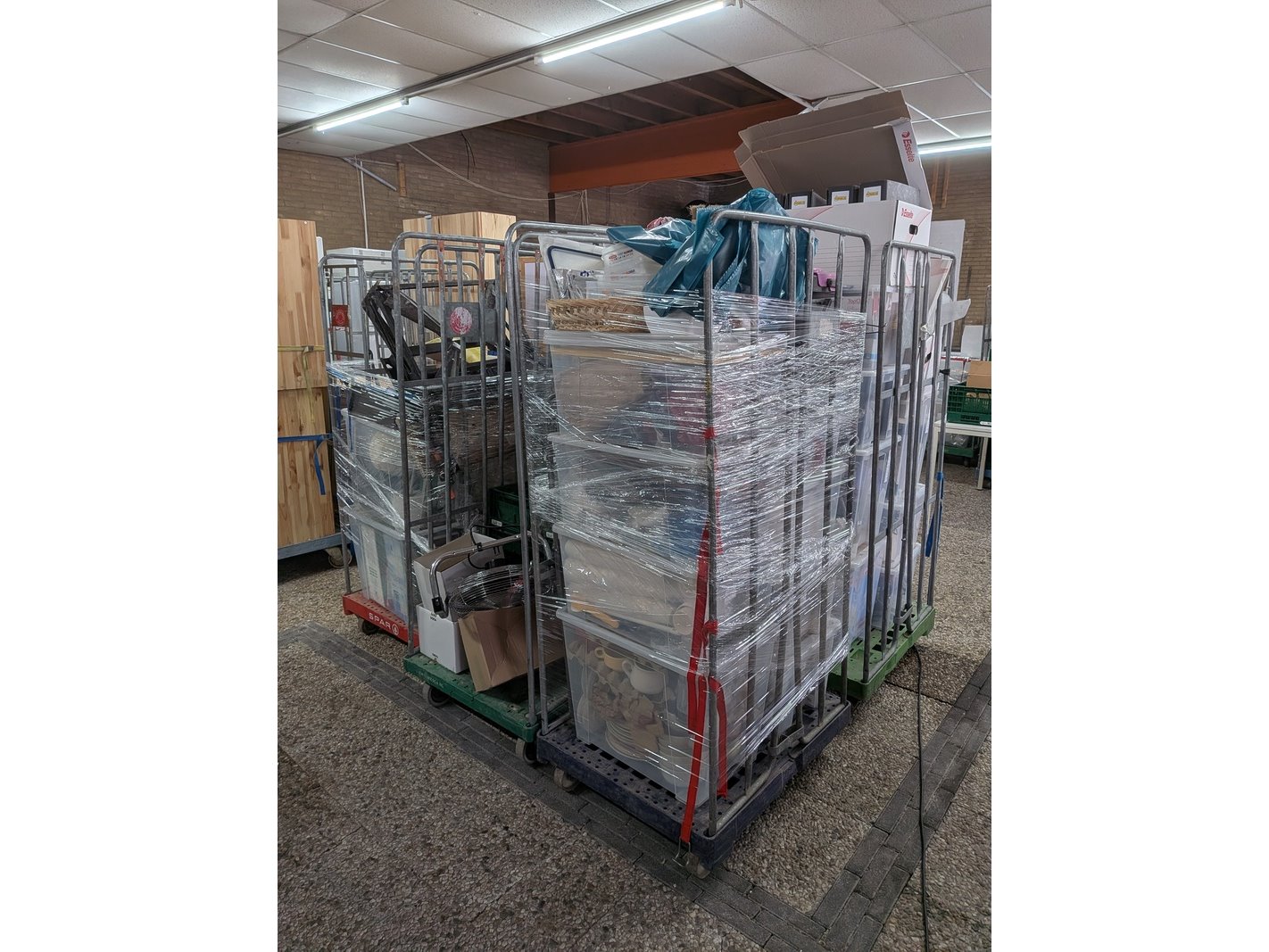 Product: Partij diversen Conditie: gebruikt Specificaties: Bestaande uit o.a.: vouwkratten, schoonmaakgereedschap, lege eierdozen, ventilator, schraag, afwasborstels, voetbal, vlaggetjes, levensmiddelen, etc. Levensmiddelen hebben wisselende houdbaarheidsdata (t.h.t.), deels over datum