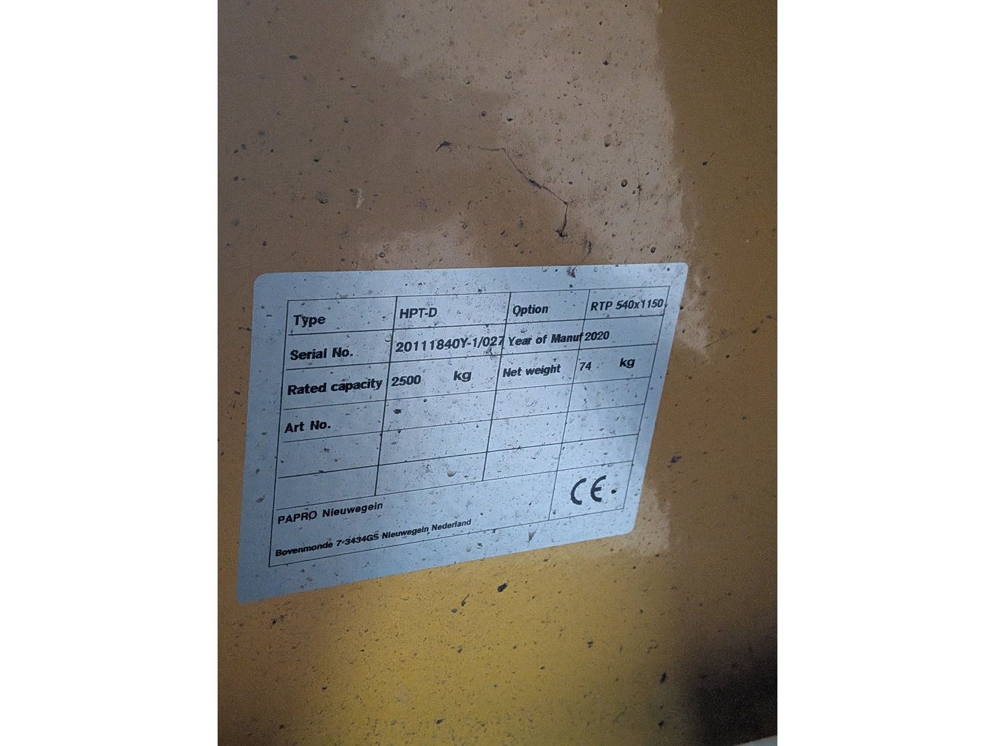 Product: Palletwagen Afmeting: Max. 2500 kg BouwJaar: 2020 Conditie: gebruikt