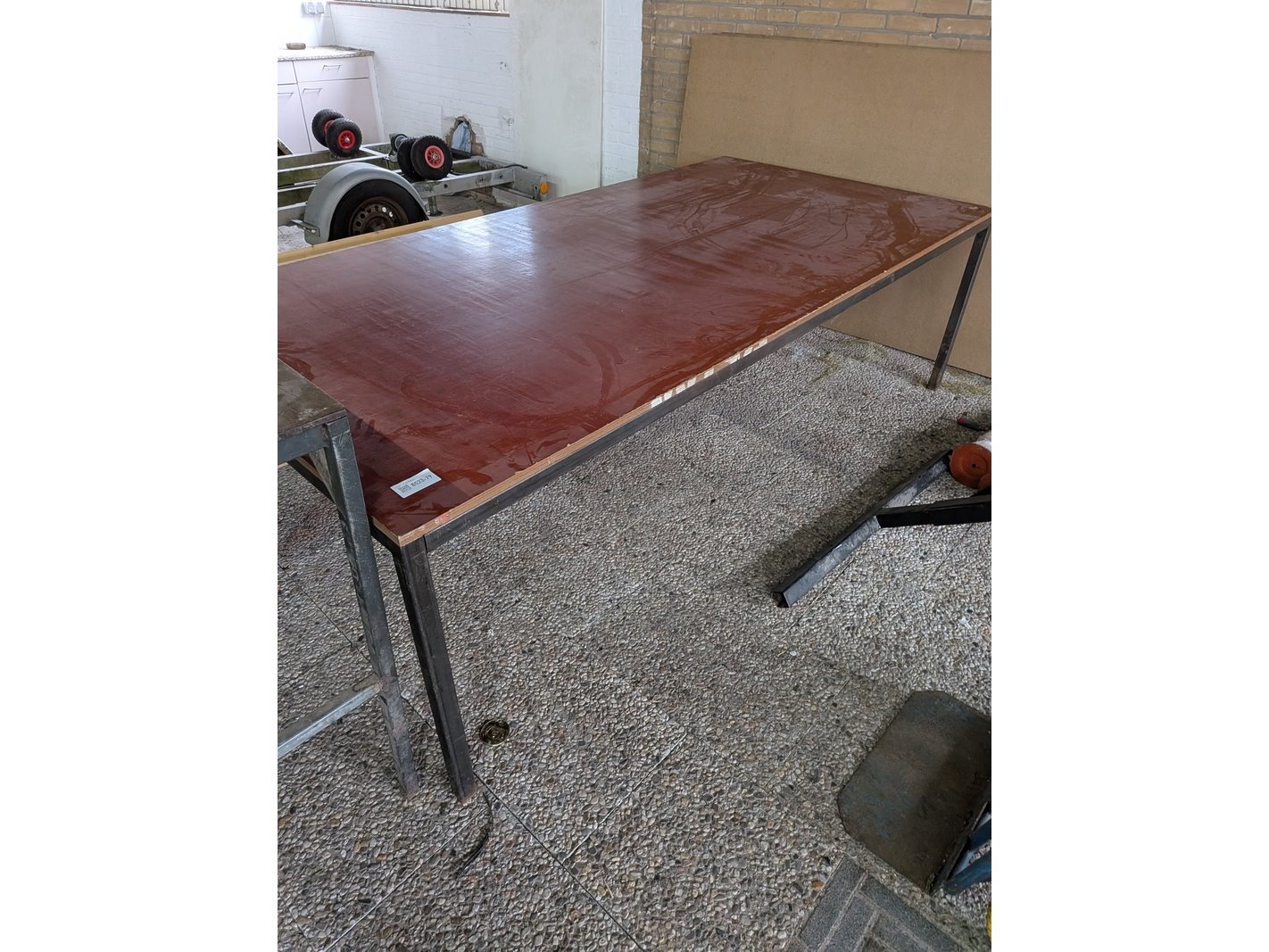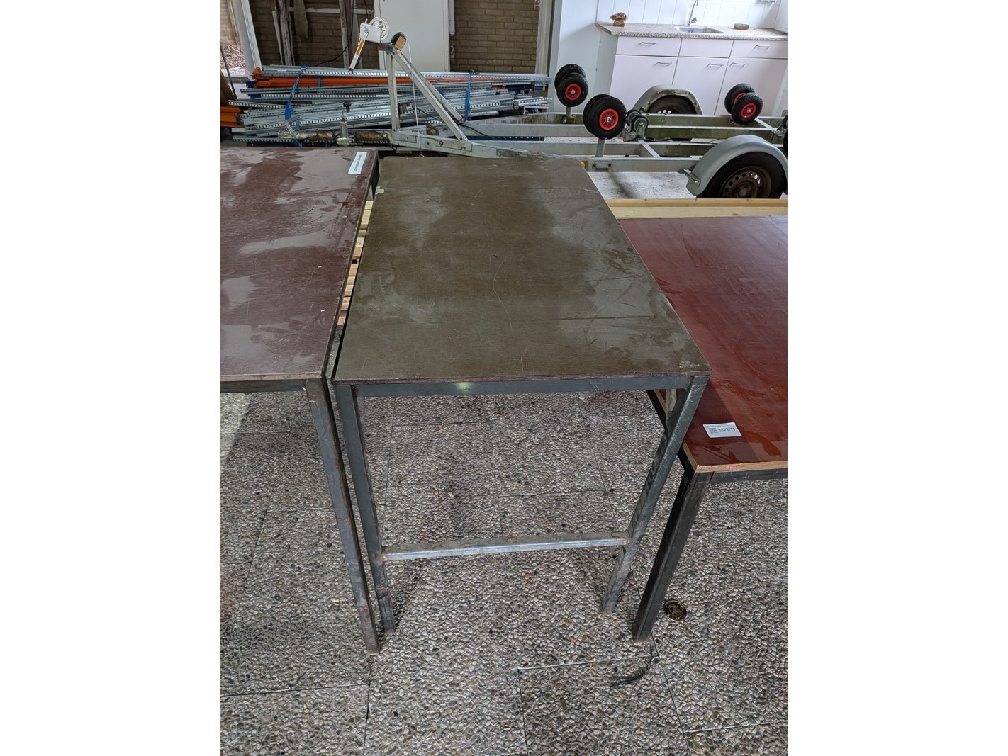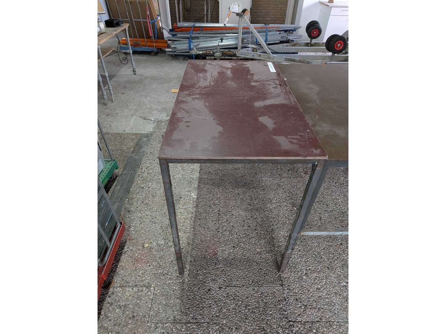 Product: Werkttafel Materiaal: Metalen onderstel / houten blad Conditie: gebruikt