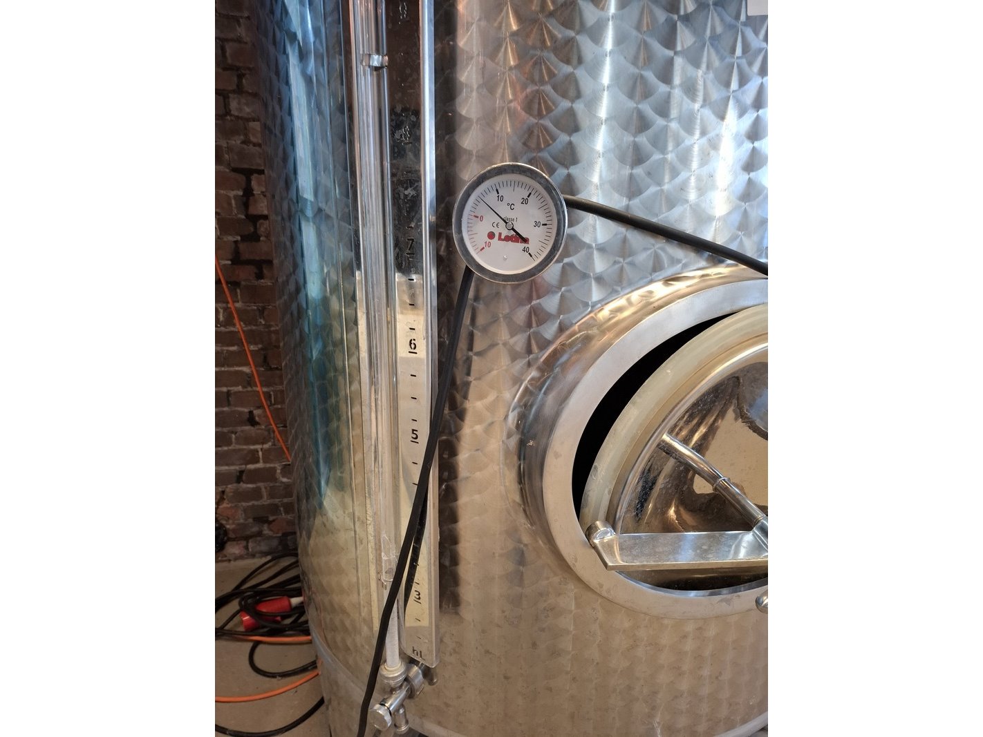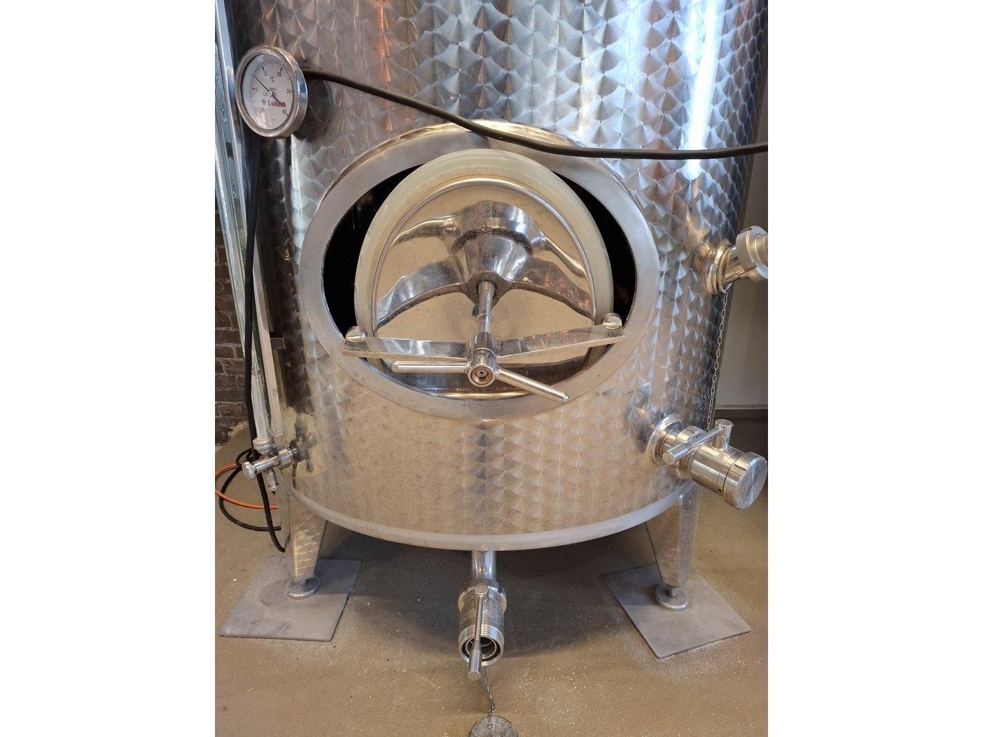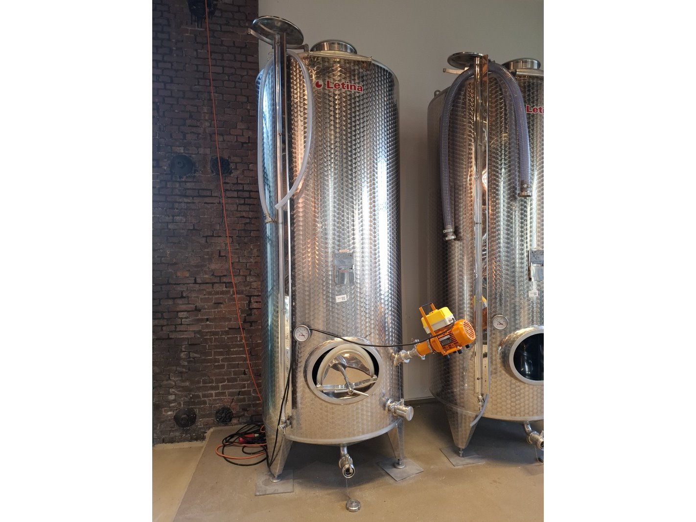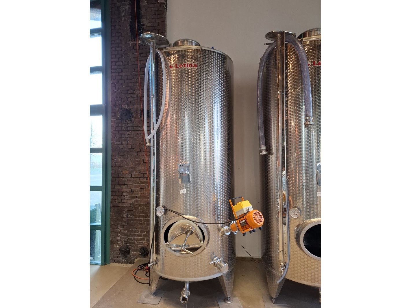 Merk: Letina Product: Opslag tank 2450L Materiaal: RVS Afmeting: H300 x D110 BouwJaar: 2020 Conditie: gebruikt Specificaties: inhoud circa 2450L, met roerinrichting met verwisselbare elektromotor, aftapkraan DN 60, temp meter, slang, peilglas, mangat boven op tank, mangat op voorzijde, op 3 stelbare poten, aftapkraan, peilbuis