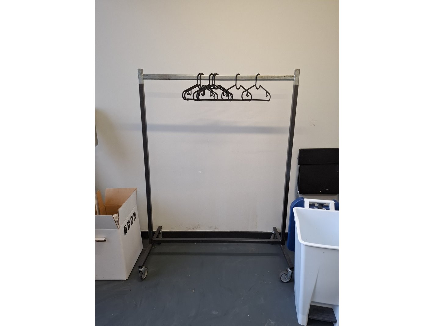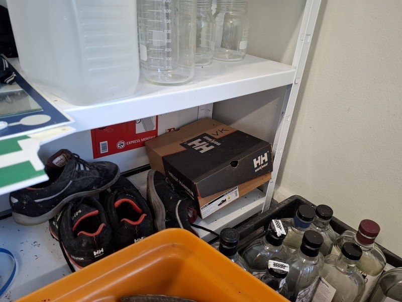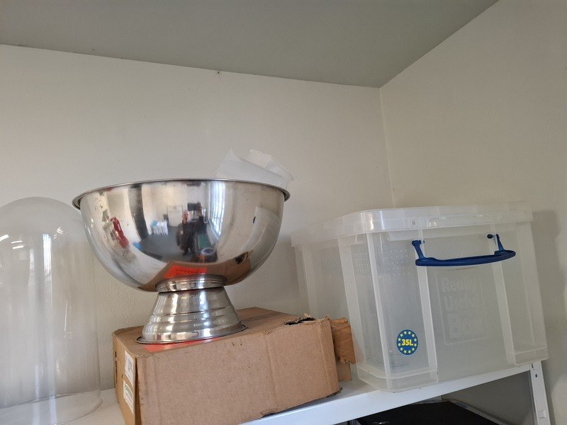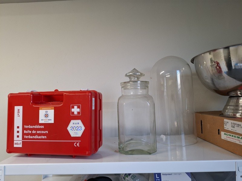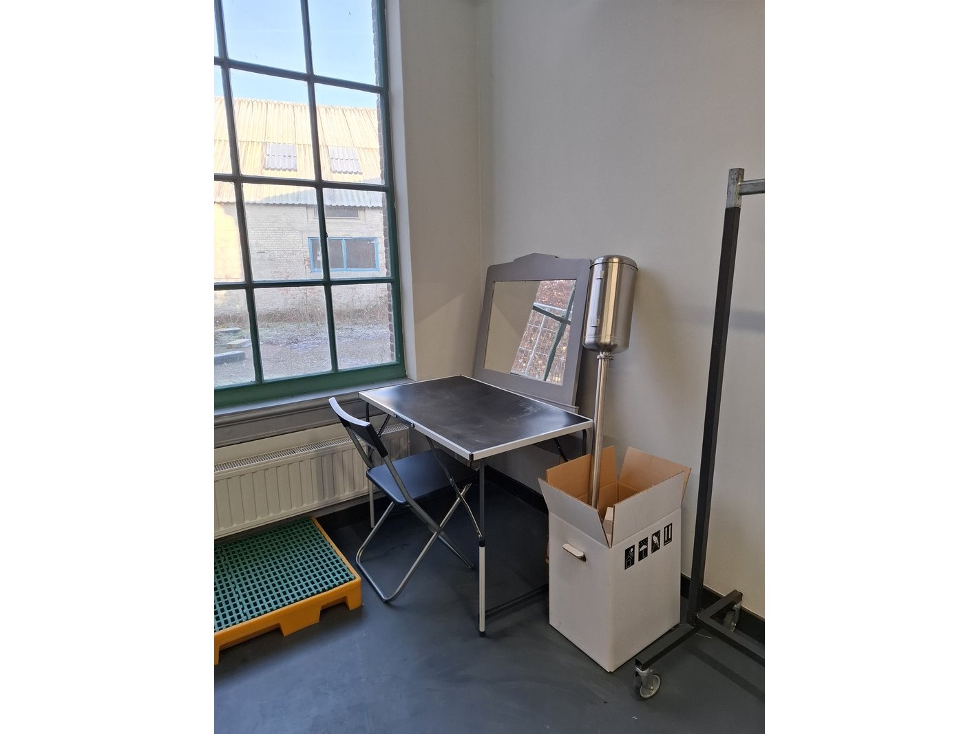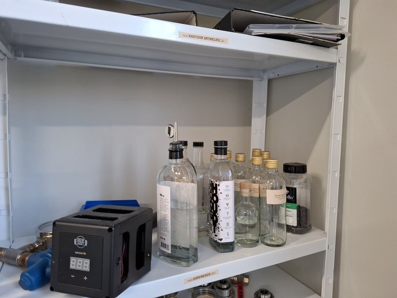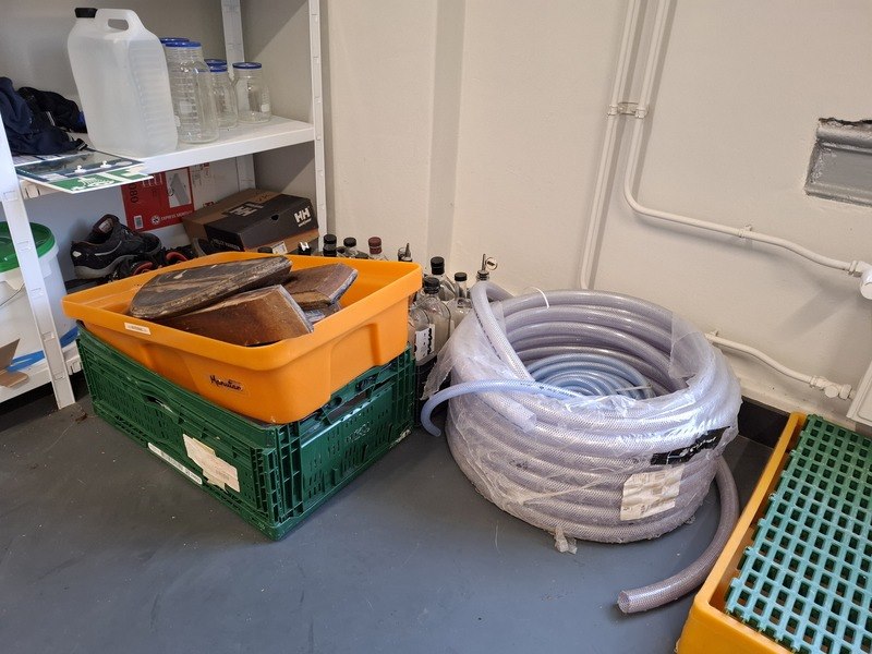 Product: Inhoud opslagruimte Conditie: gebruikt Specificaties: bestaande uit o.a. afvalbak, garderobe rek verrijdbaar, spiegel, stelling met inhoud, industriële slang, lekbak, brouwbenodigdheden koppelingen, etc.