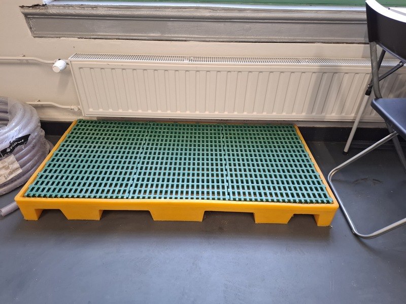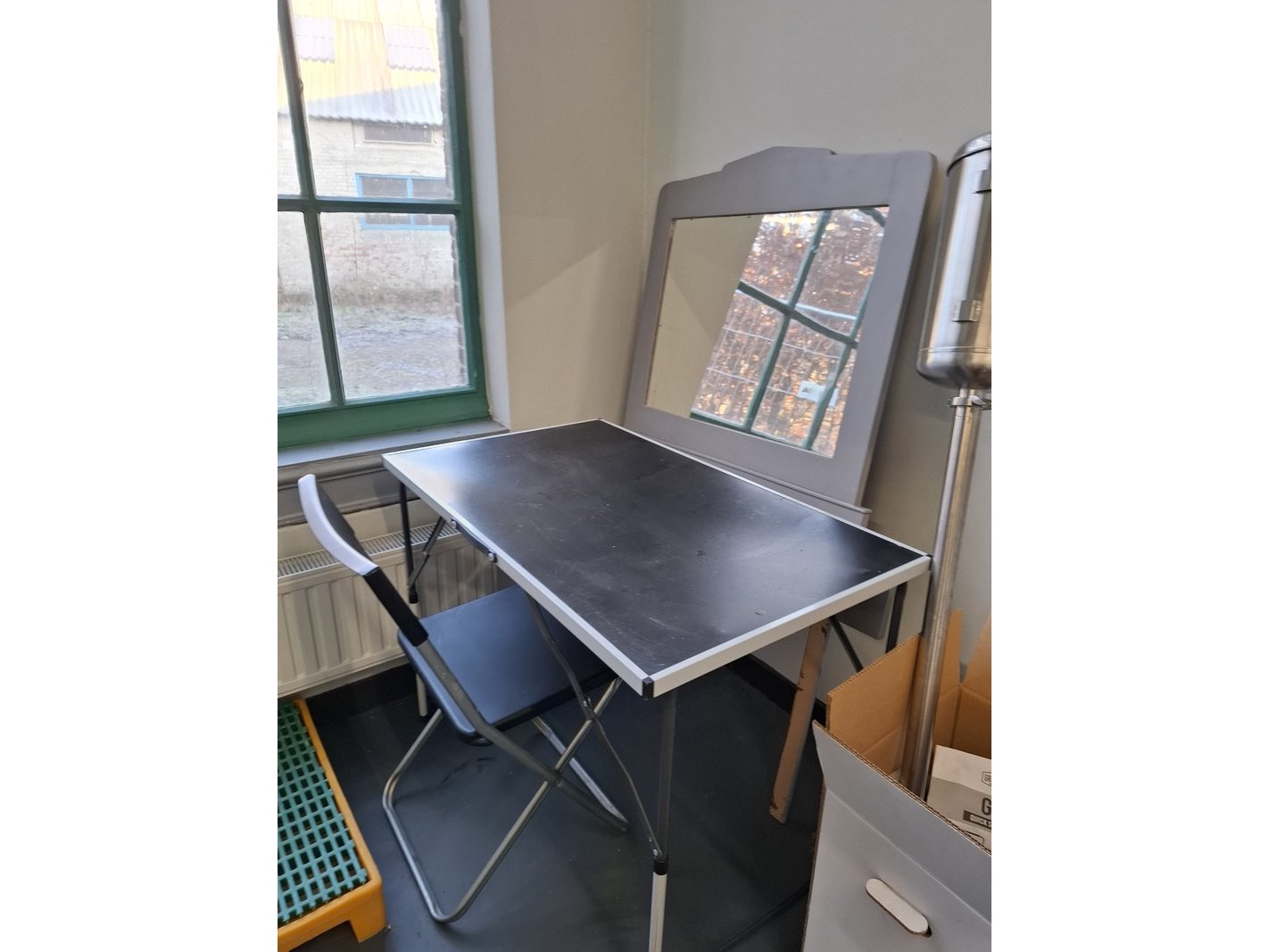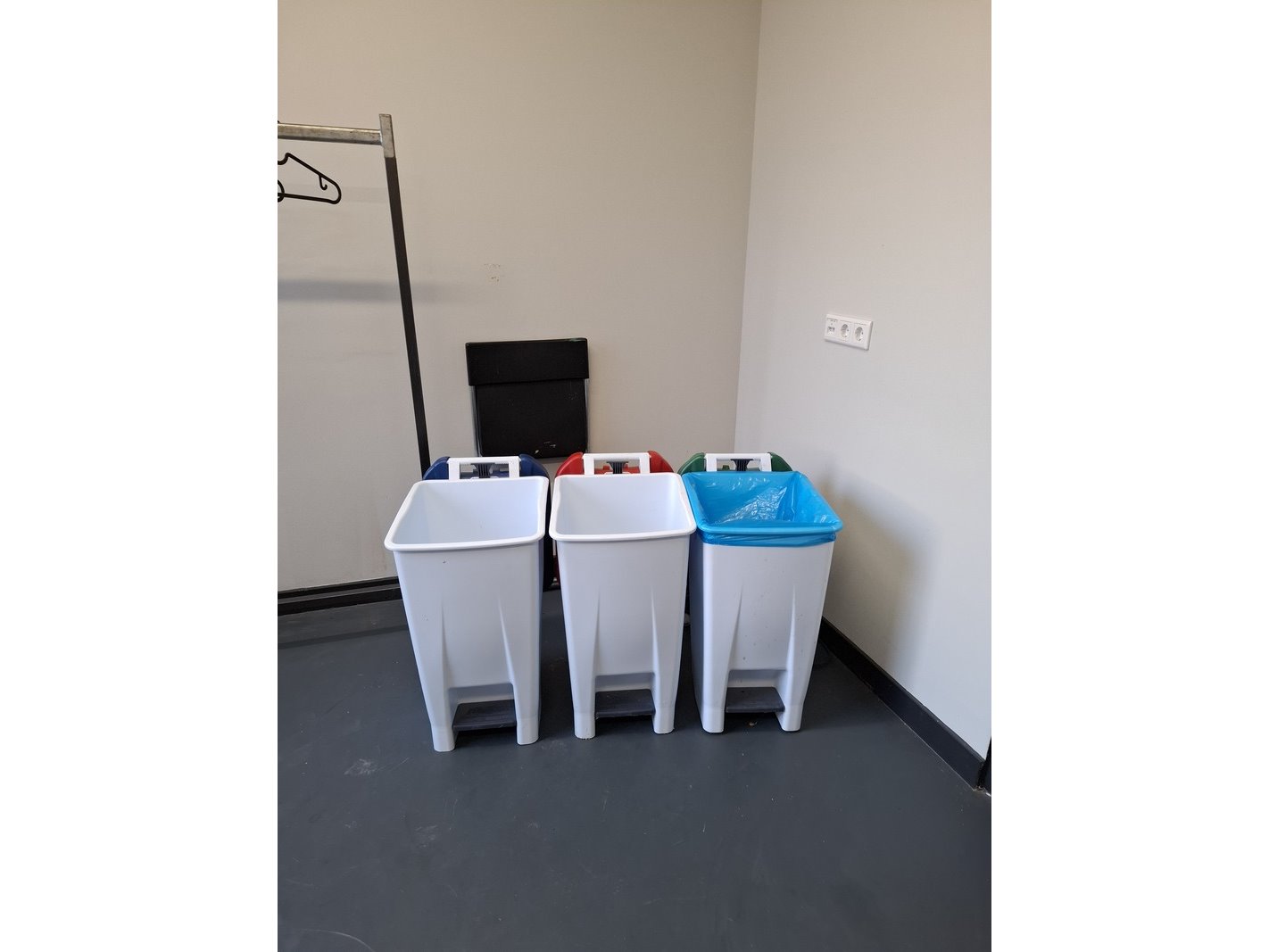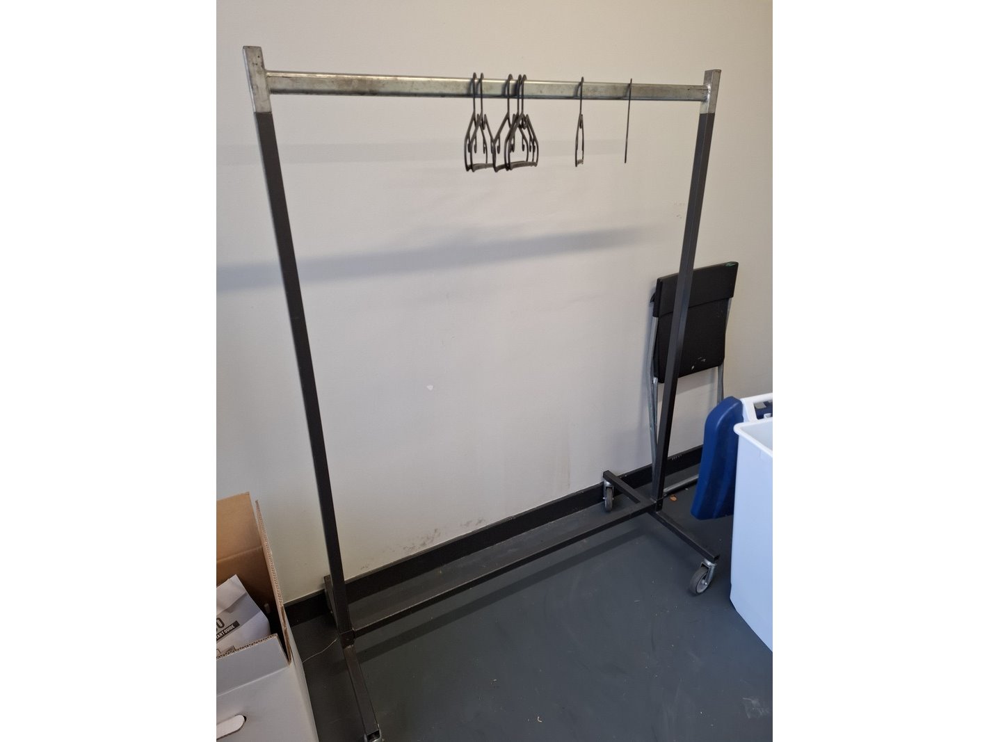 Product: Inhoud opslagruimte Conditie: gebruikt Specificaties: bestaande uit o.a. afvalbak, garderobe rek verrijdbaar, spiegel, stelling met inhoud, industriële slang, lekbak, brouwbenodigdheden koppelingen, etc.