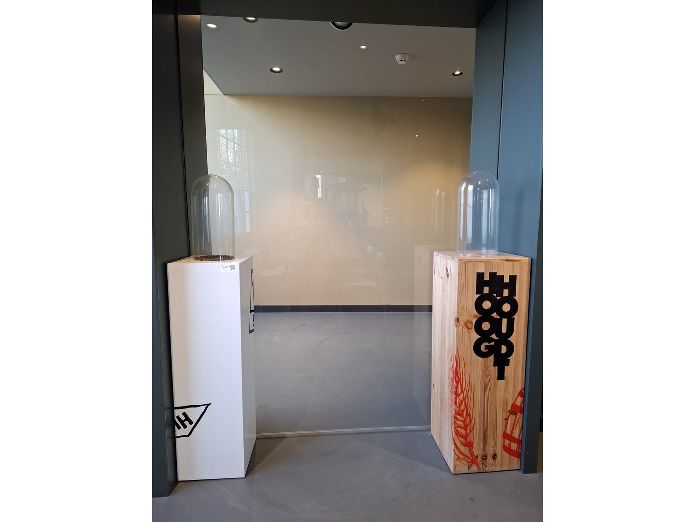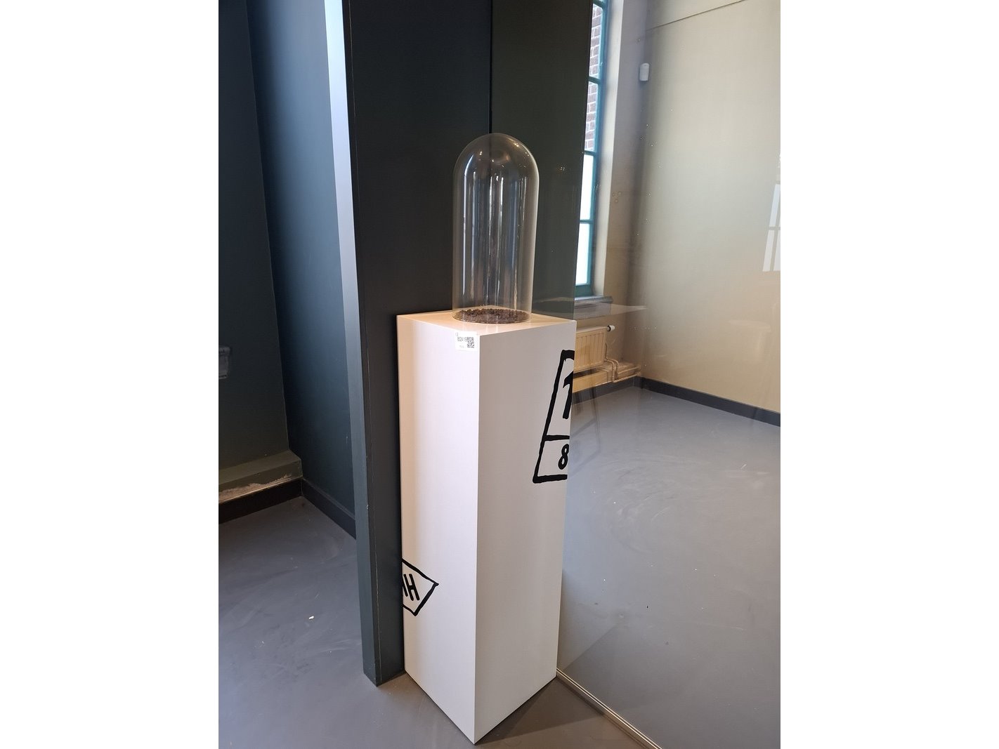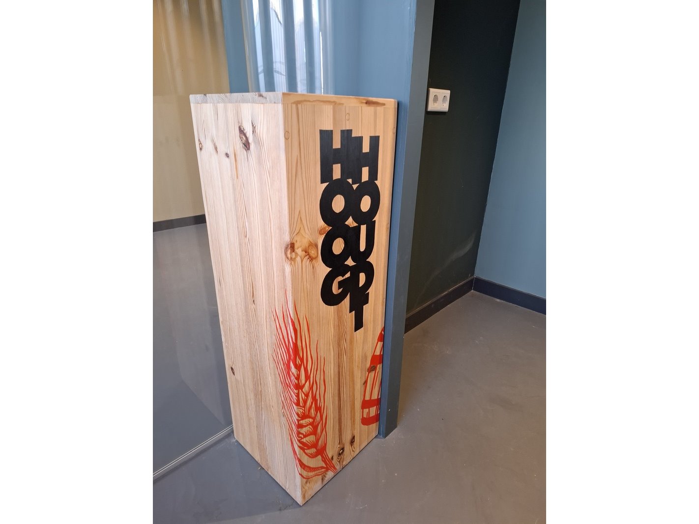 Product: Zuil / staander met stopfles Materiaal: hout Afmeting: H102 x B33 x D 33 Conditie: gebruikt