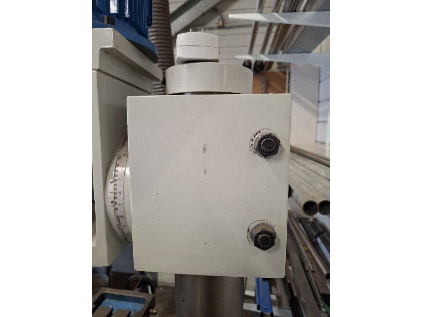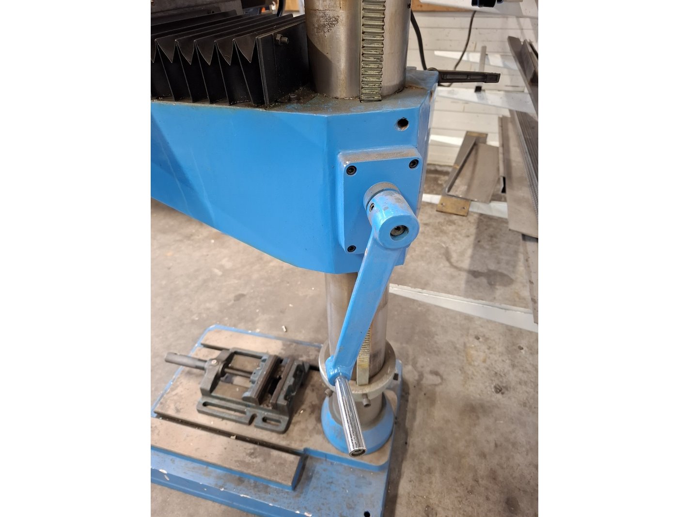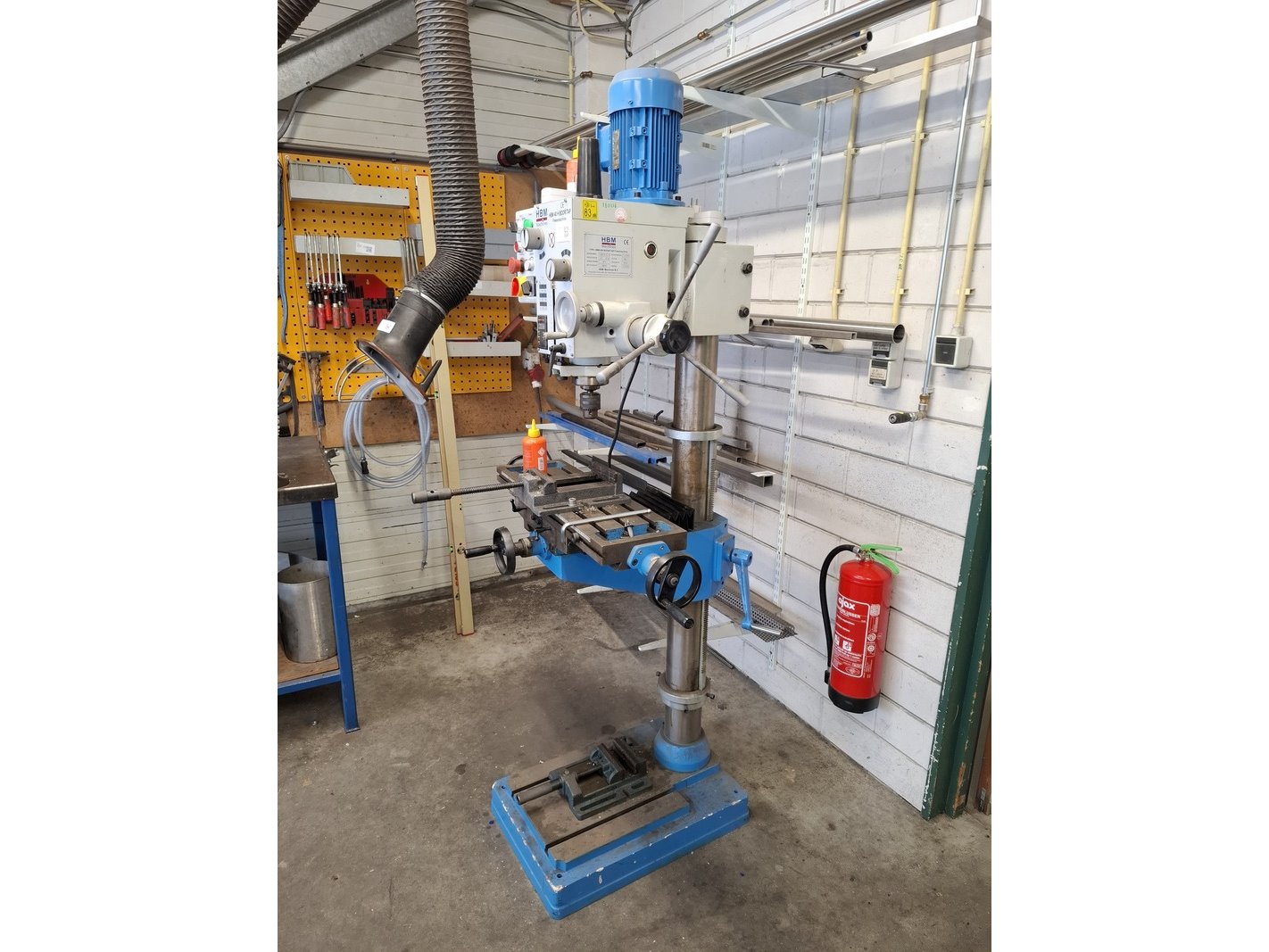 Merk: HBM Product: Kolomboormachine Afmeting: hoogte ca 210cm BouwJaar: 2019 Specificaties: 400V, 1.5kW, eigen gewicht 350kg, incl. 2 machineklemmen