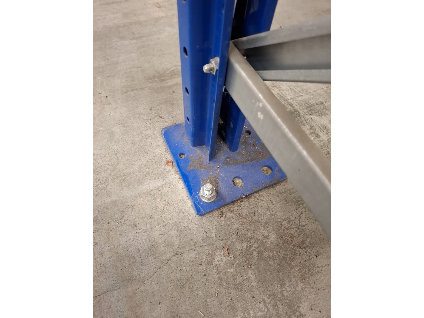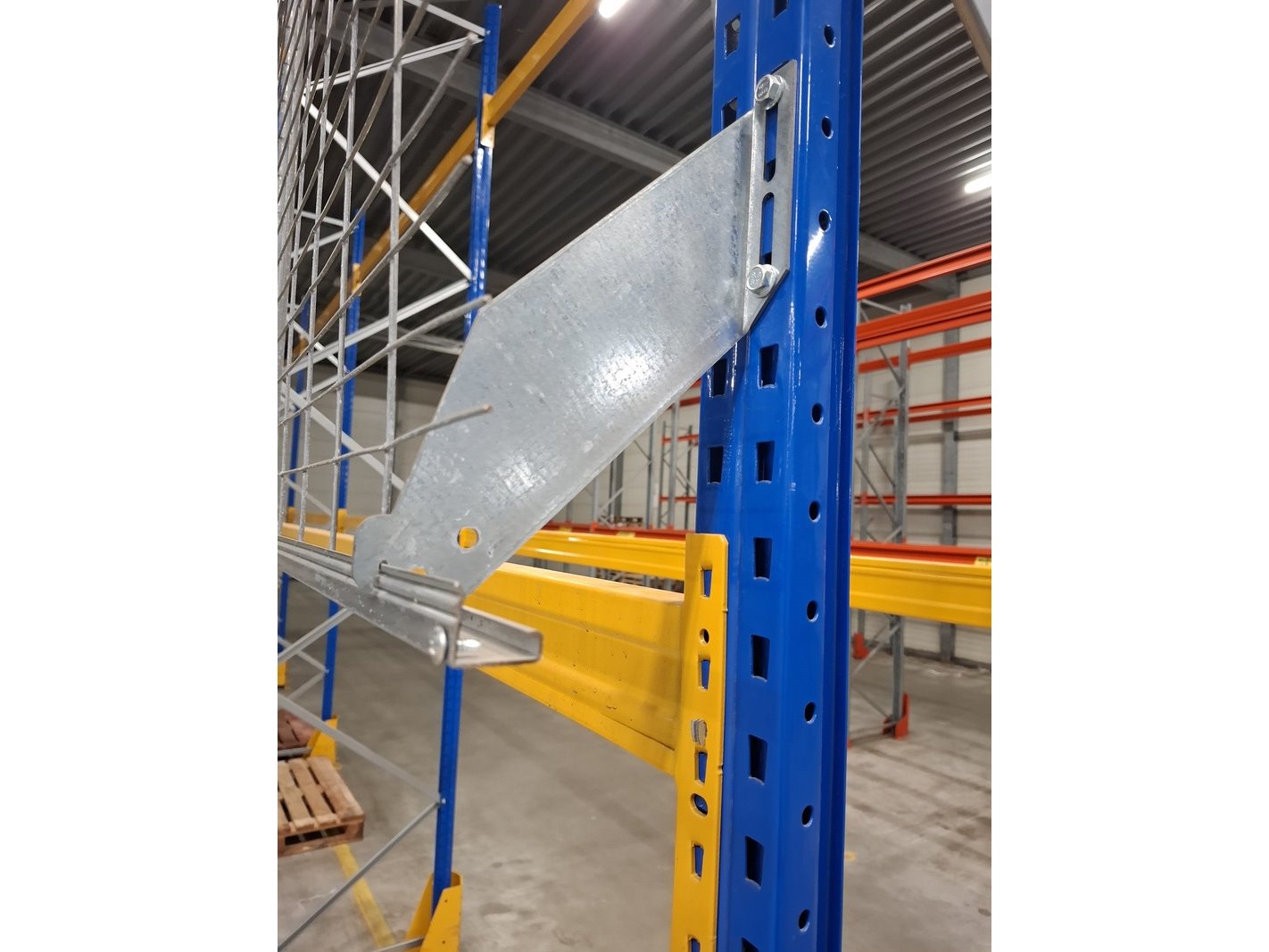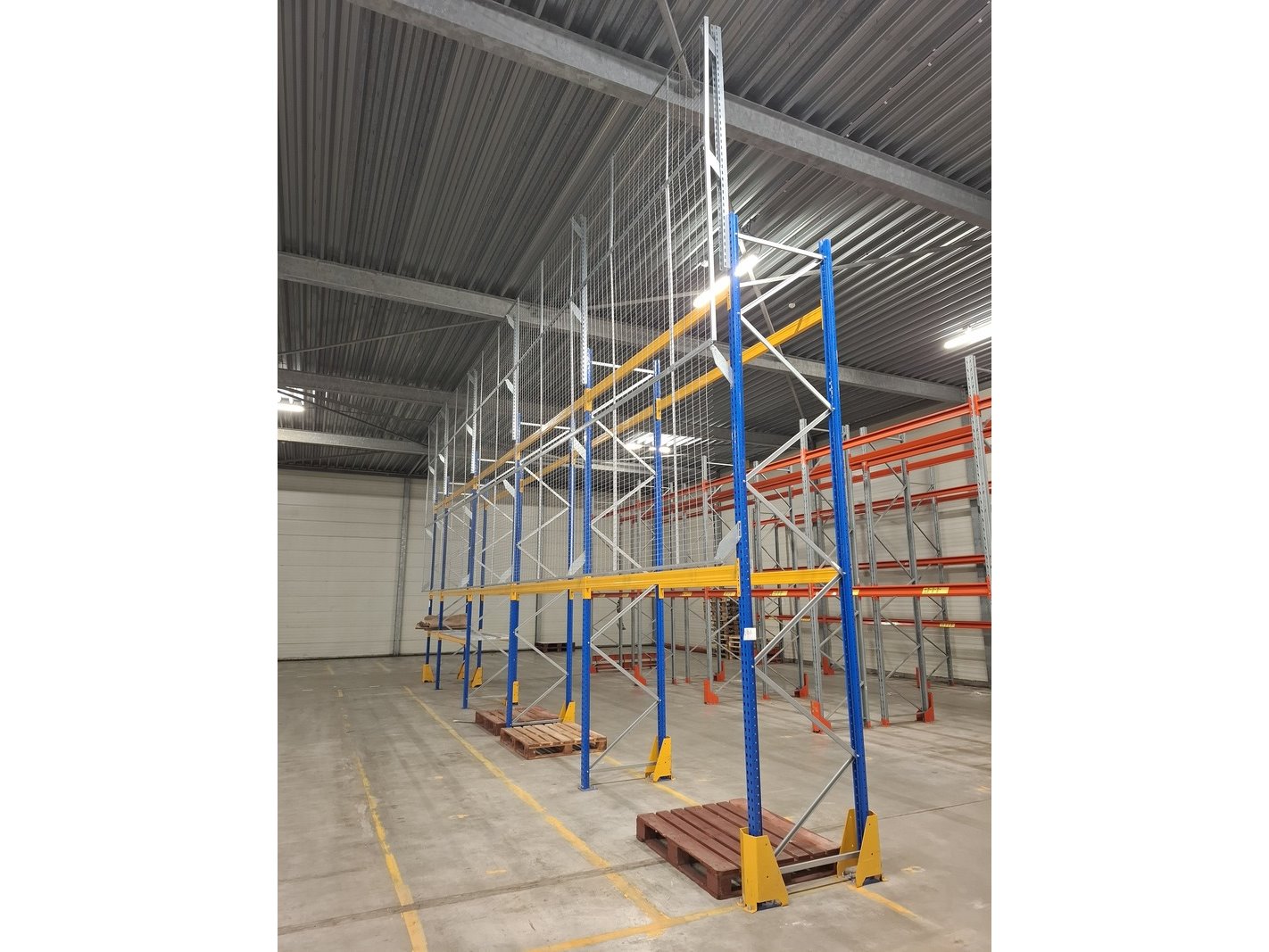 Product: Palletstelling Specificaties: bestaande uit: 6x juk hxb ca 400x90cm; 18x ligger lengte ca 275cm; 6x ligger lengte ca 140cm; incl. gaaswand en aanrijbeveiliging