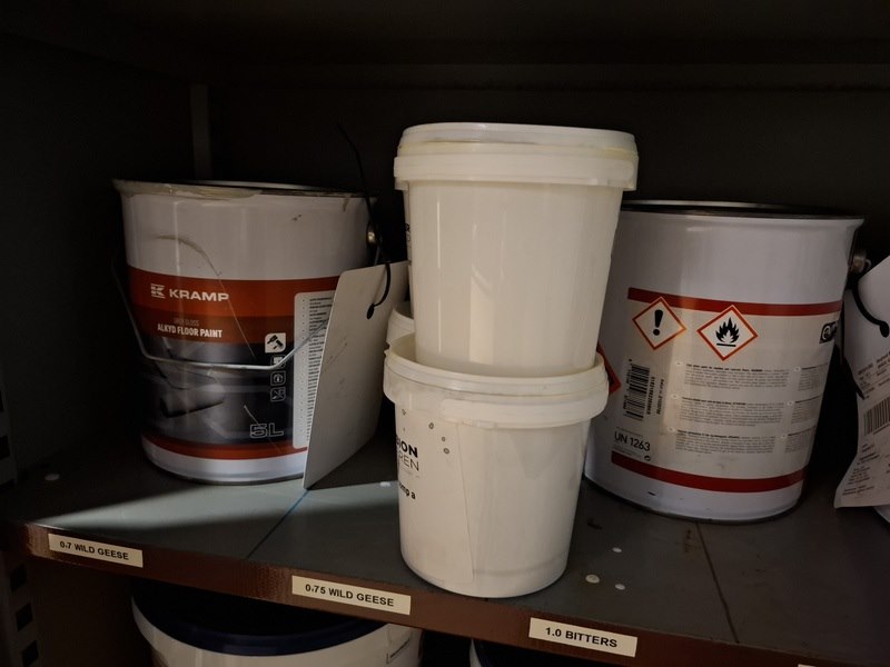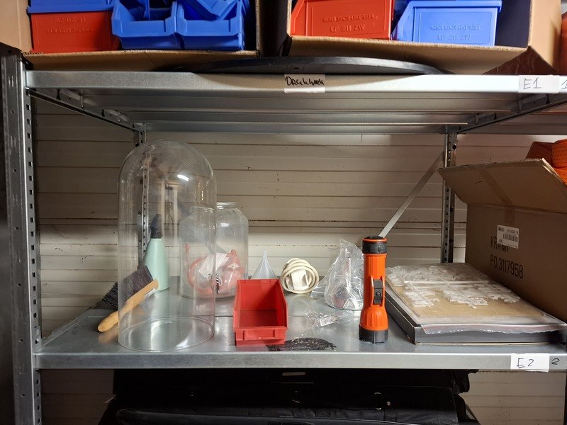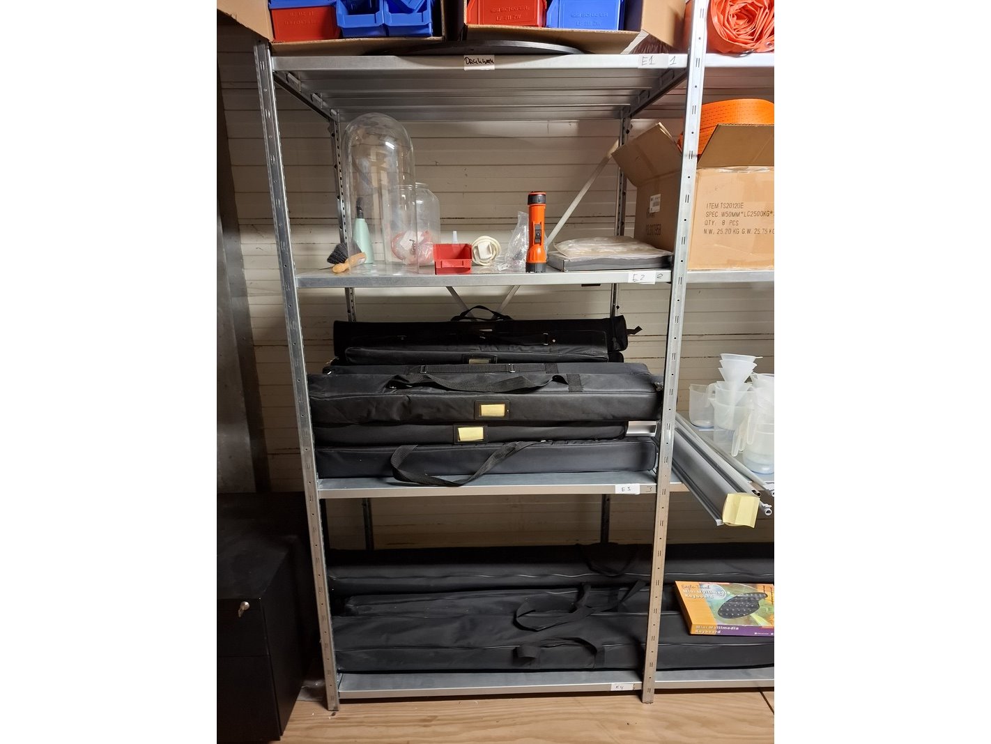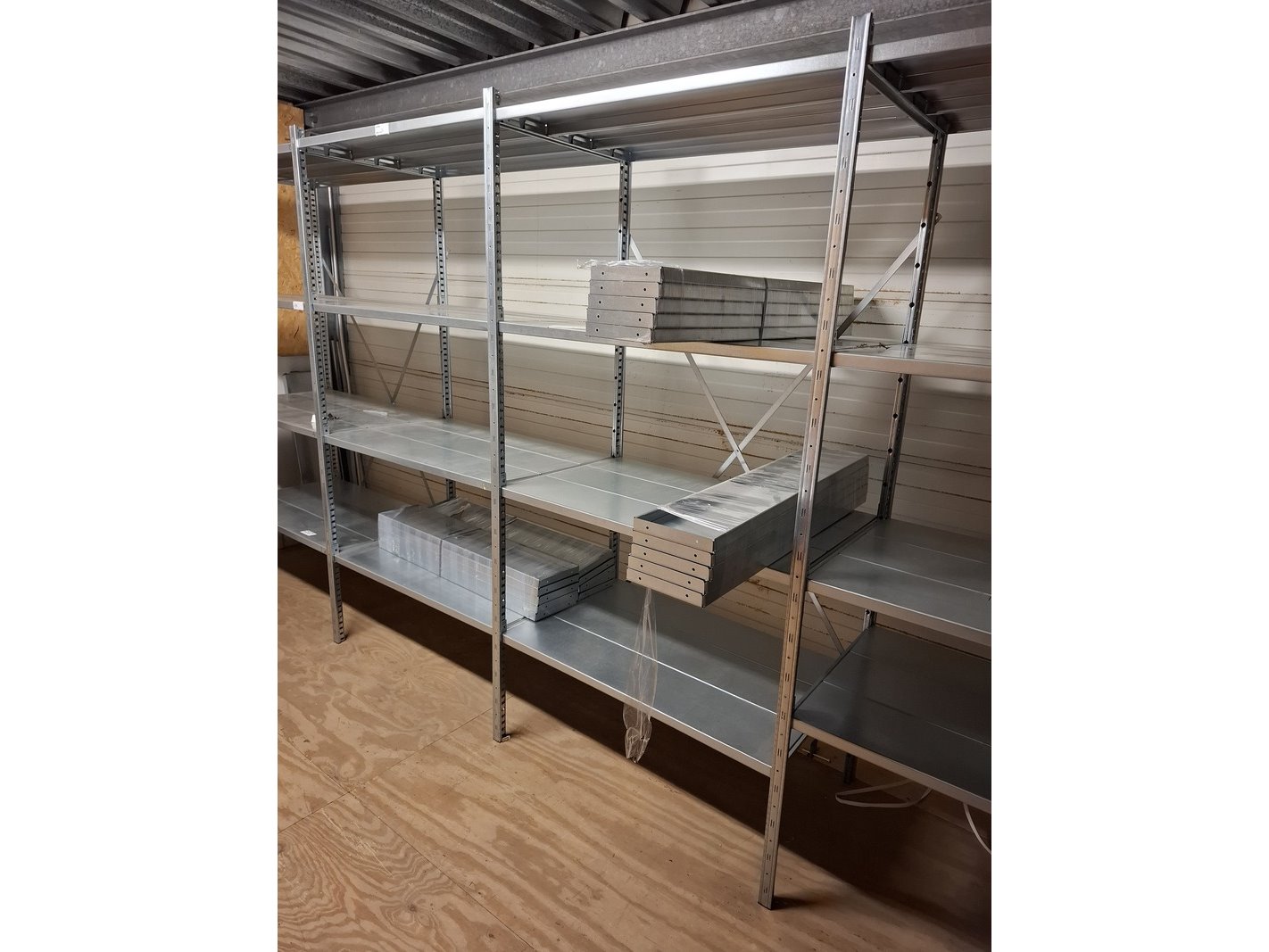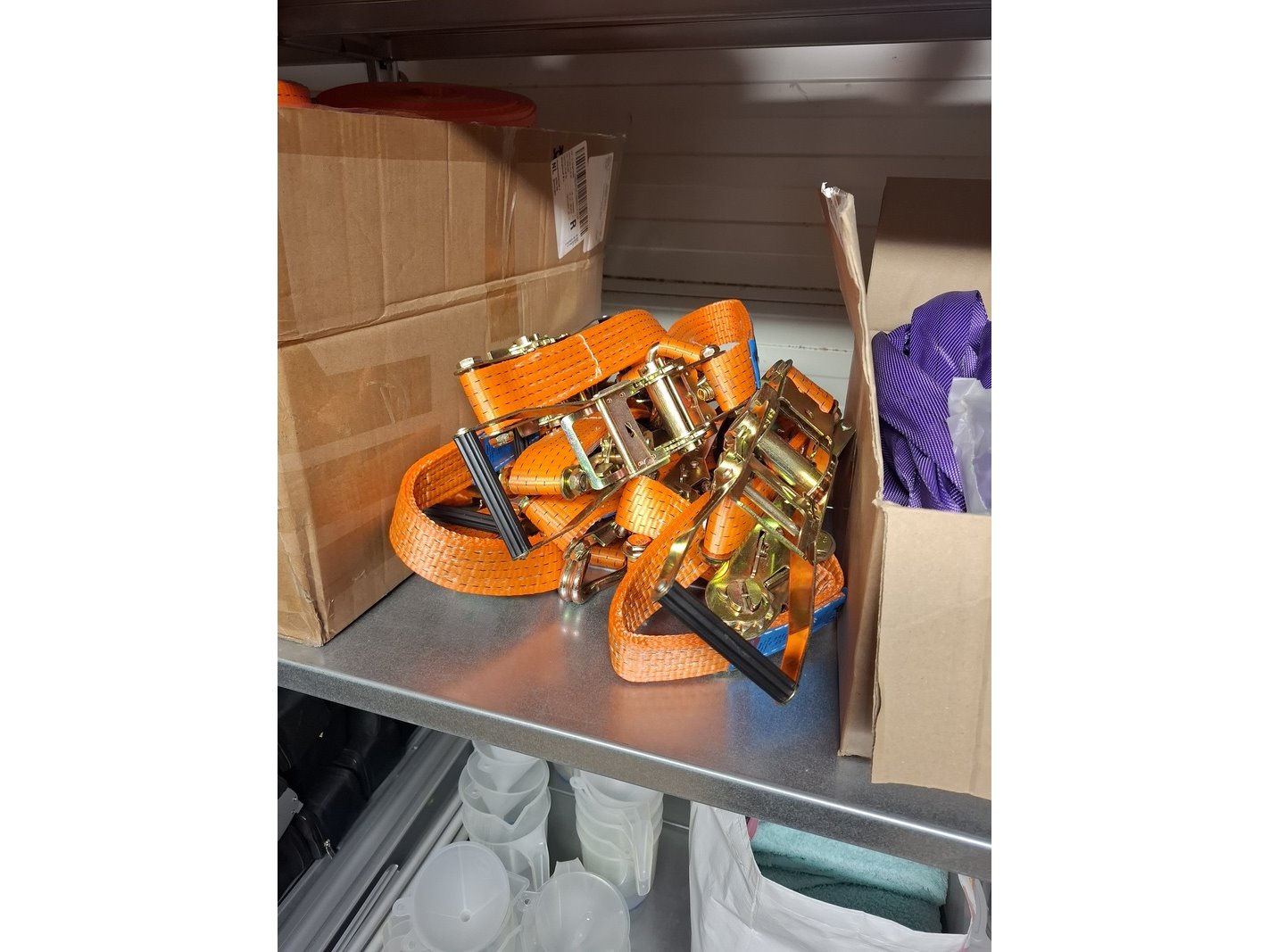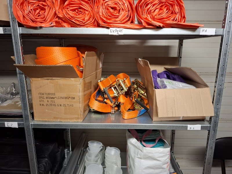 Product: Inhoud magazijn Specificaties: o.a. ca 8mtr stelling, hxd ca 200x60cm; 3x lameldeurkast, afm. ca 195x120x47cm; 4x 2-deurskast, afm. ca 195x100x40cm; isolatiemateriaal, promotiemateriaal; etc. (2 kasten gevuld met vloeistoffen, kitten, verf, schuurpads, diverse pvc, etc.) Opmerking: reclame banners staan door het hele pand tijdens de kijkdagen