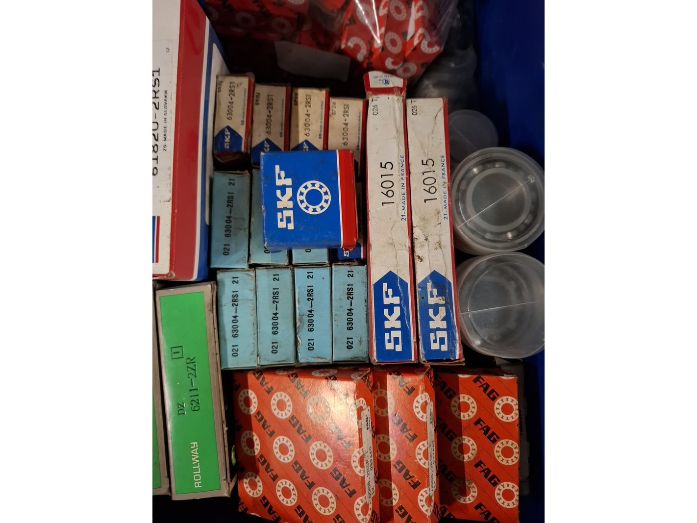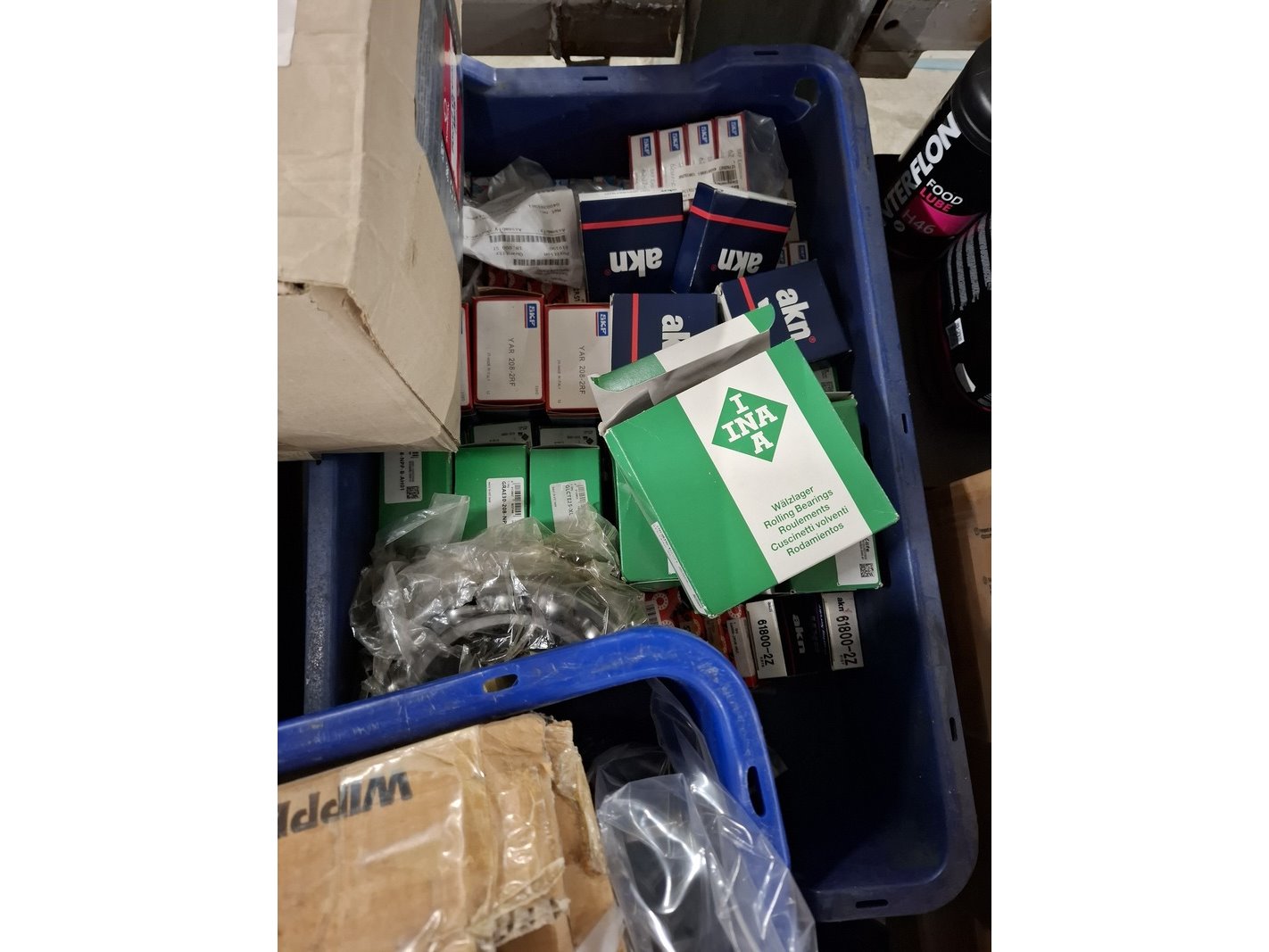 Merk: o.a. SKF, Omron Product: Partij machine onderdelen en toebehoren Specificaties: o.a. lagers, diverse soorten; sensoren; bekabeling; etc.