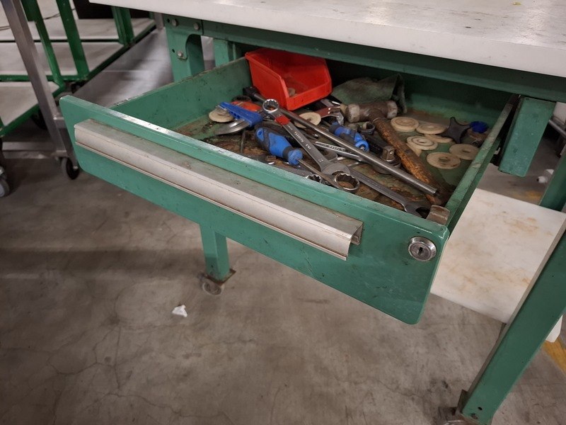 Product: Verrijdbare laboratoriumtafel Afmeting: afm. ca 125x75x95cm Specificaties: metalen onderstel met kunststof werkblad