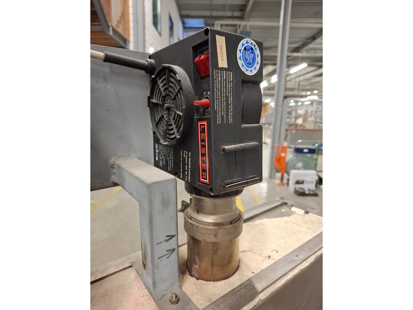 Product: Heater t.b.v. fleskrimpcapsules Afmeting: statiefhoogte ca 220cm Specificaties: v.z.v. 3 heater Leister, type 9C1, 3400W, 230V