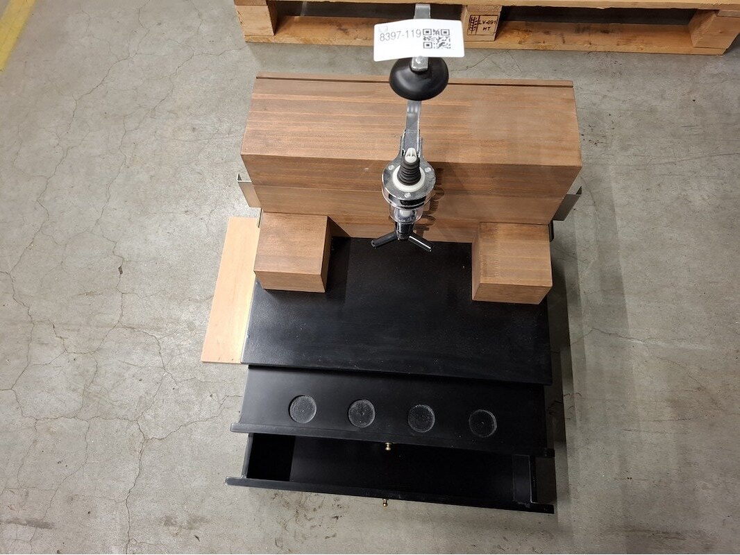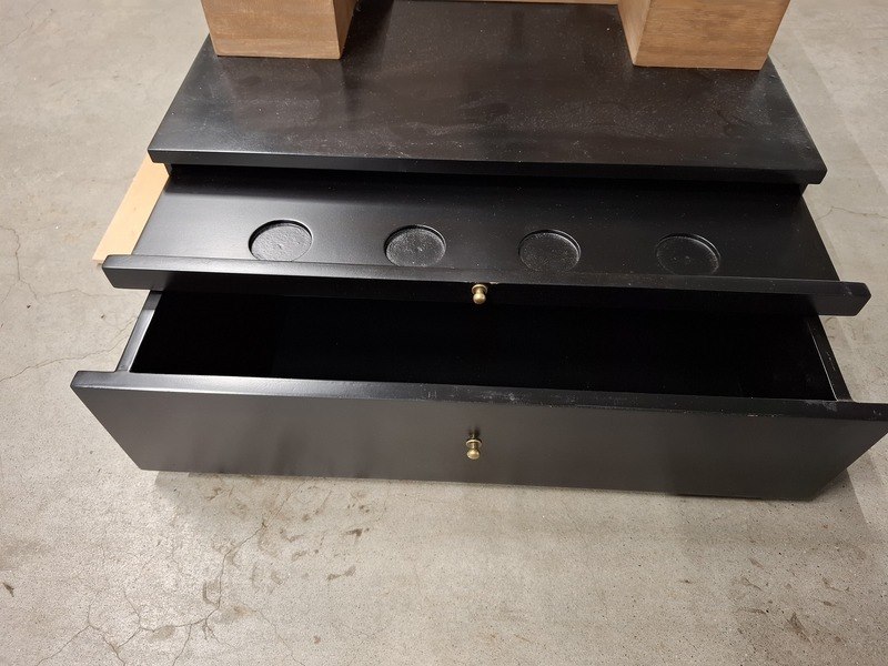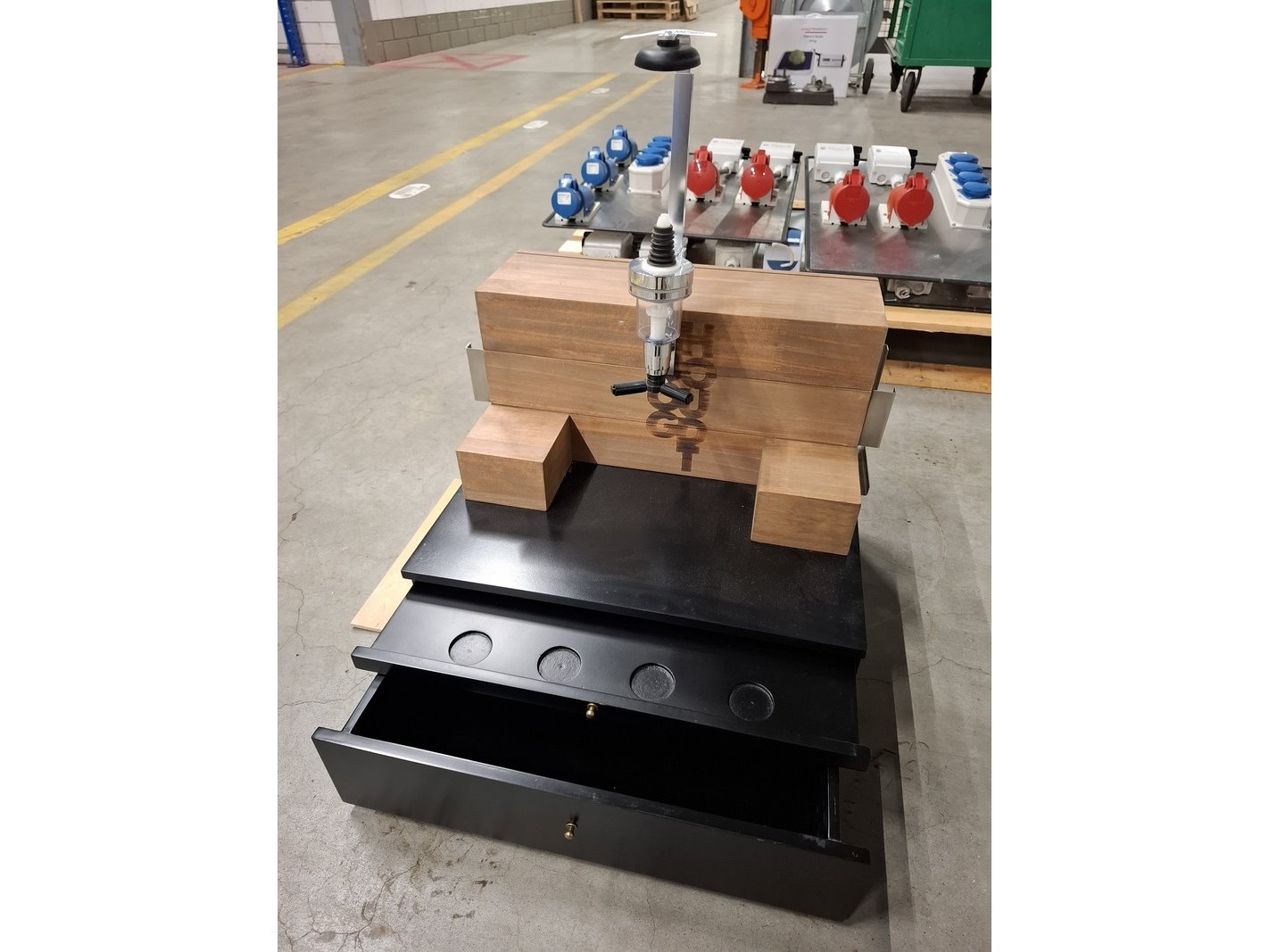 Product: Flesdispencer t.b.v. proeverij 'Hooghoudt' Afmeting: afm. ca 40x46x60cm Specificaties: vnl. houten opstelling