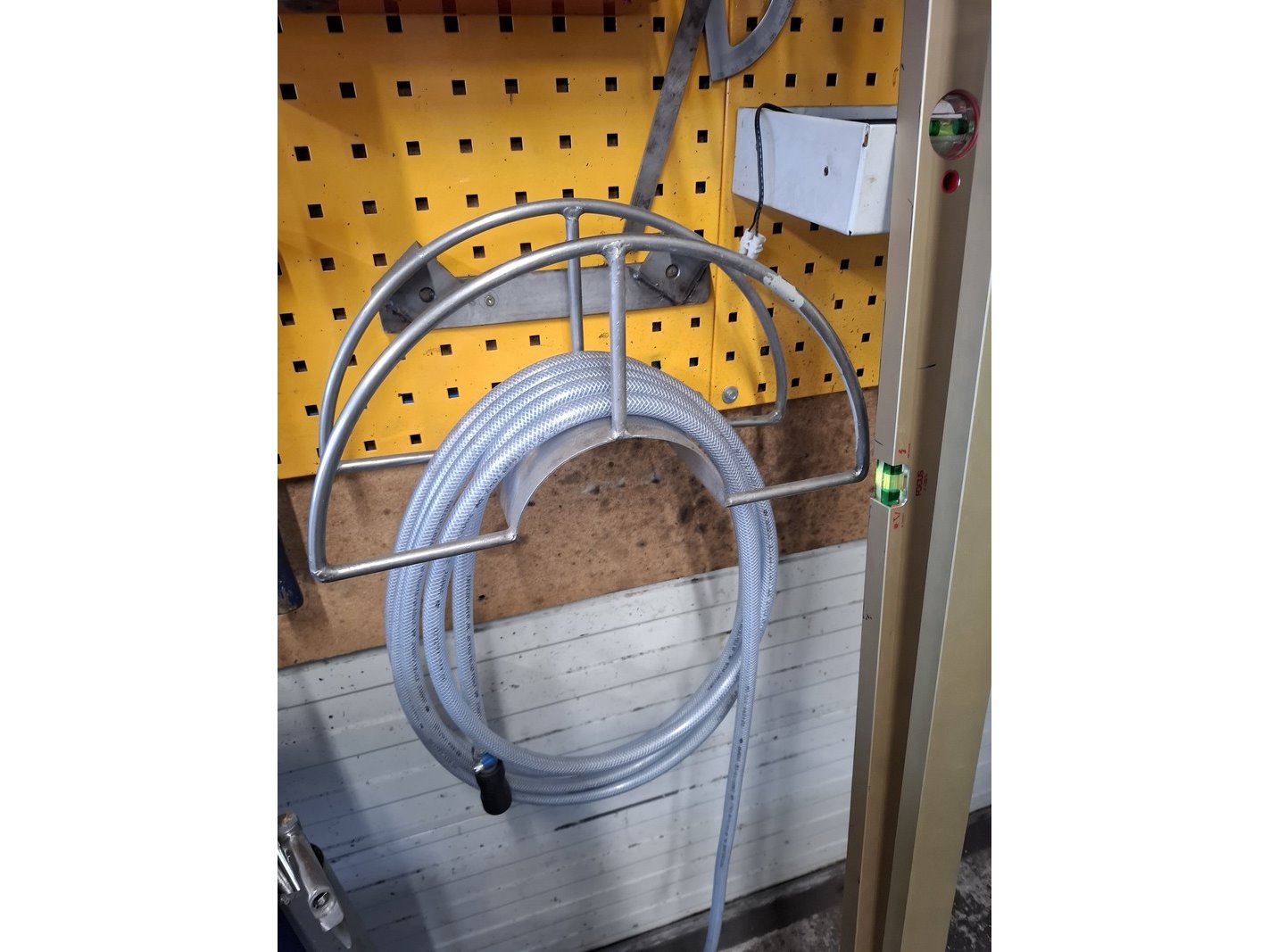 Product: Wandstelling met diverse handgereedschap Specificaties: o.a. lijmtangen, waterpassen, pijpentangen, hamers, etc.