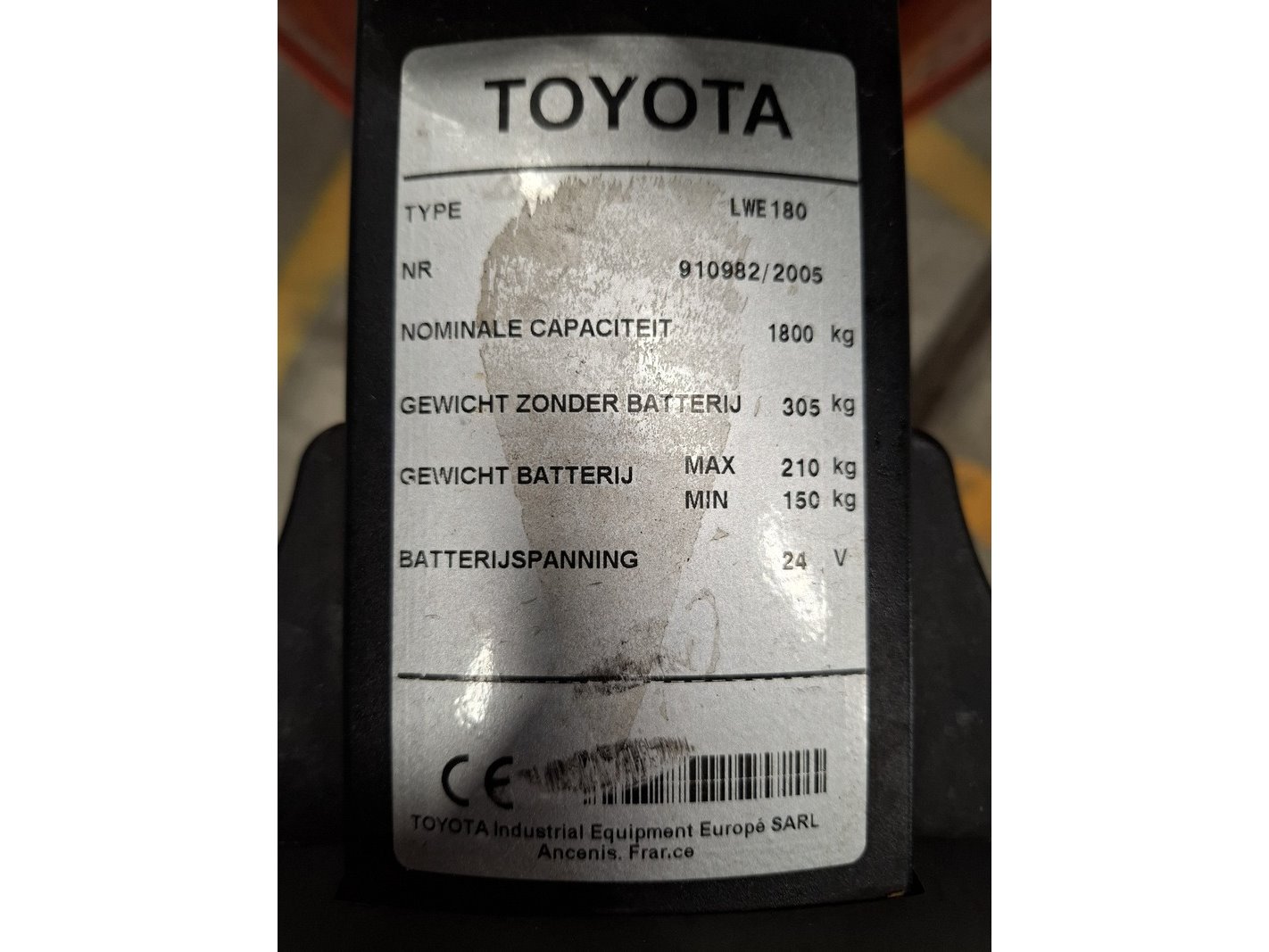 Elektrische pallettruck v.v. pyroban systeem toyota, lwe180, geschikt voor atex omgeving, bouwjaar 2005