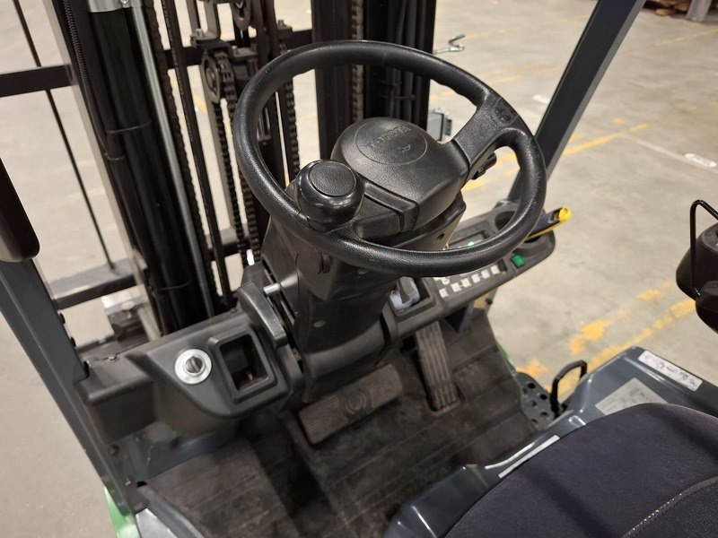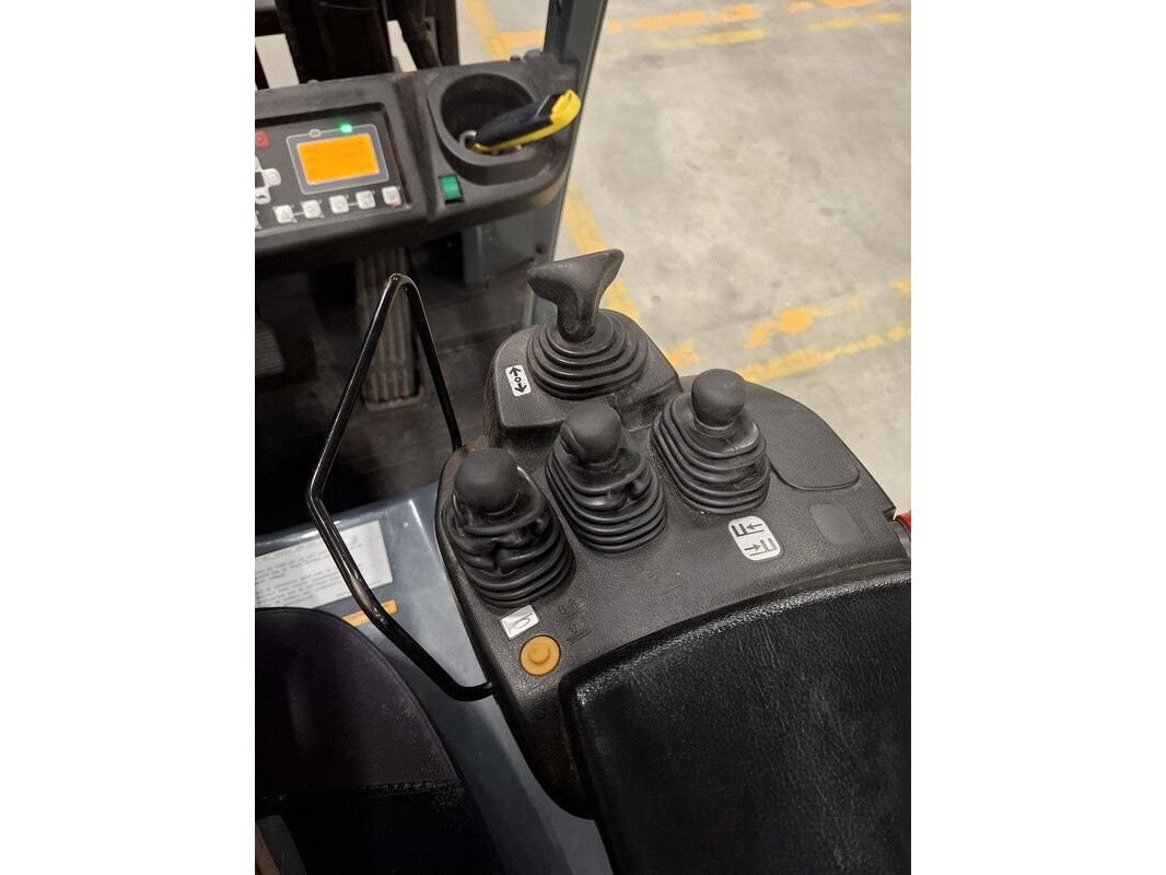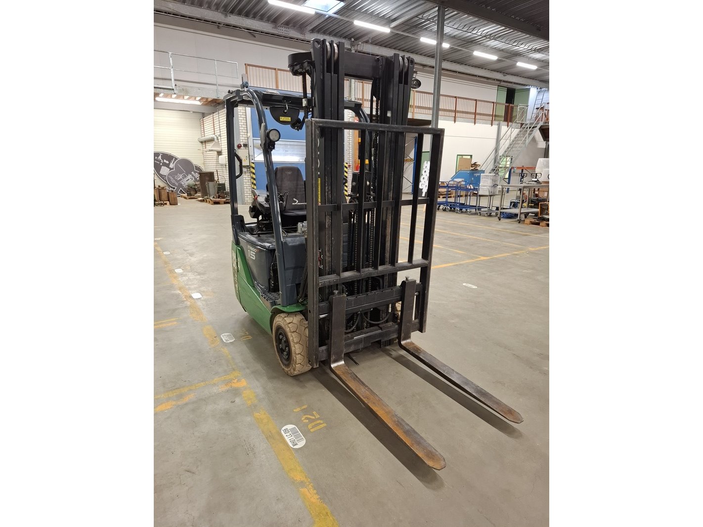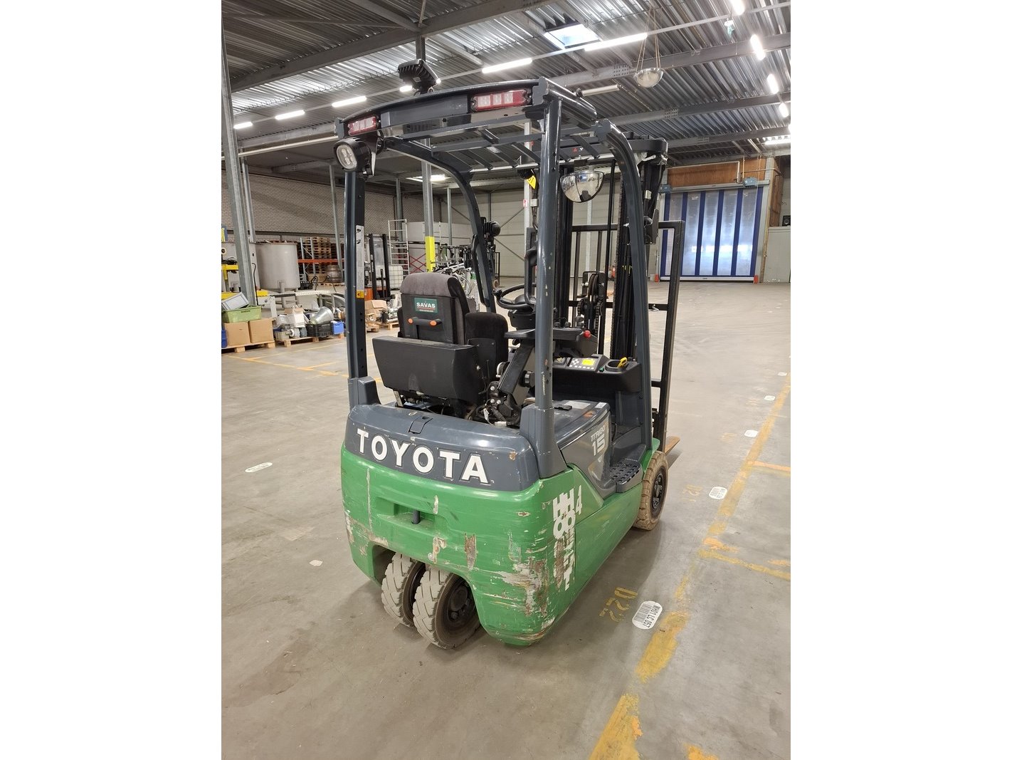 Merk: Toyota Product: Elektrische vorkheftruck BouwJaar: 2018 Specificaties: afgelezen urenstand 11639, max 1500kg, 3-delige hefmast, masthoogte ca 210cm, hefhoogte ca 470cm, freelift, side-shift, lepellengte ca 97cm, 48V, incl. lader