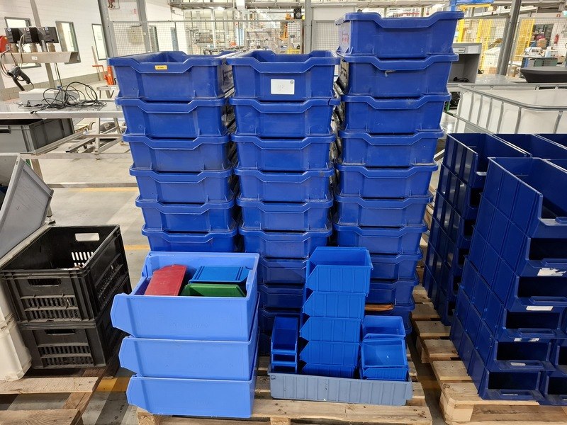 Product: Partij magazijn/opslagbakken Specificaties: diverse soorten en maten, op 3x pallet