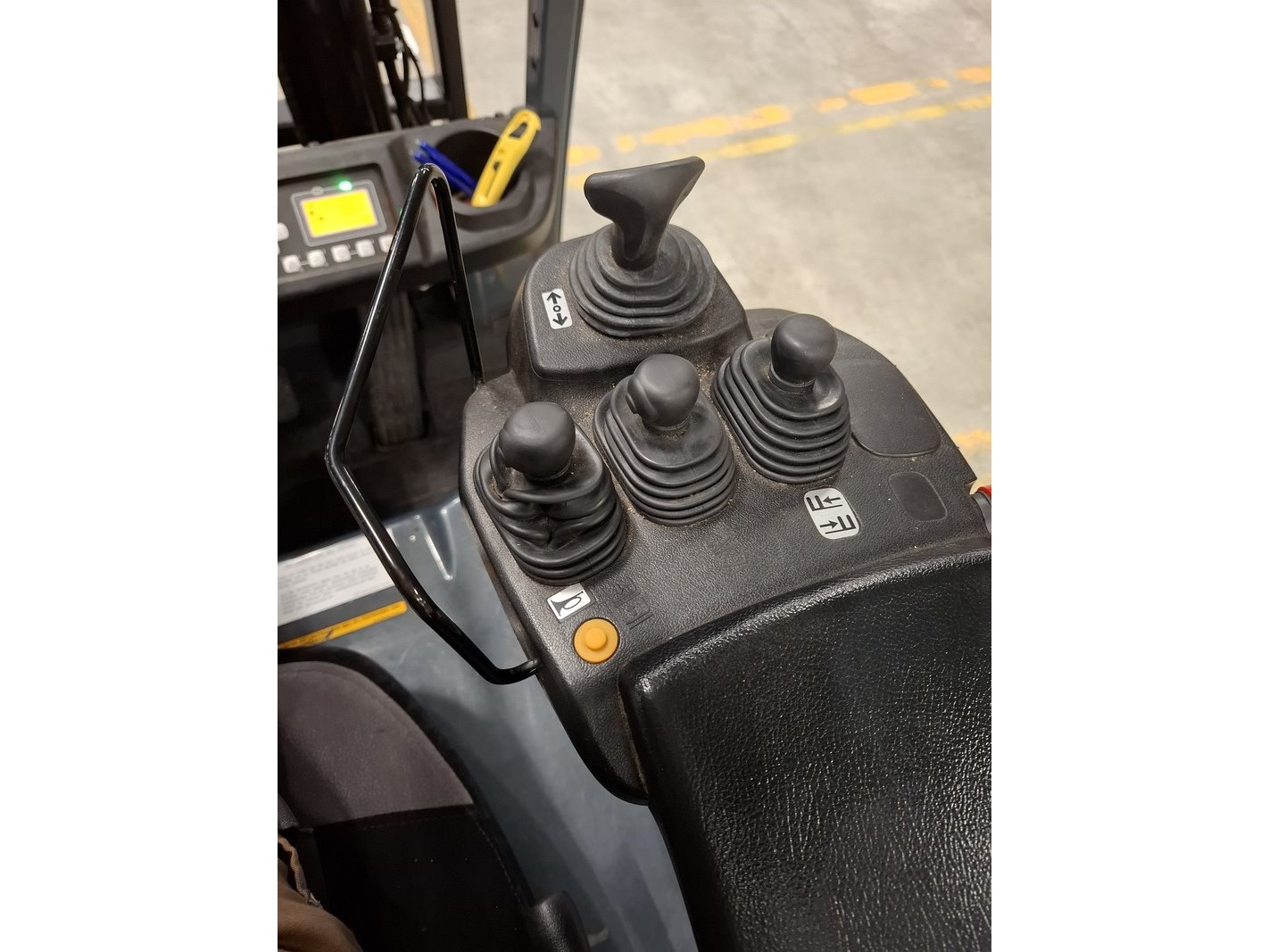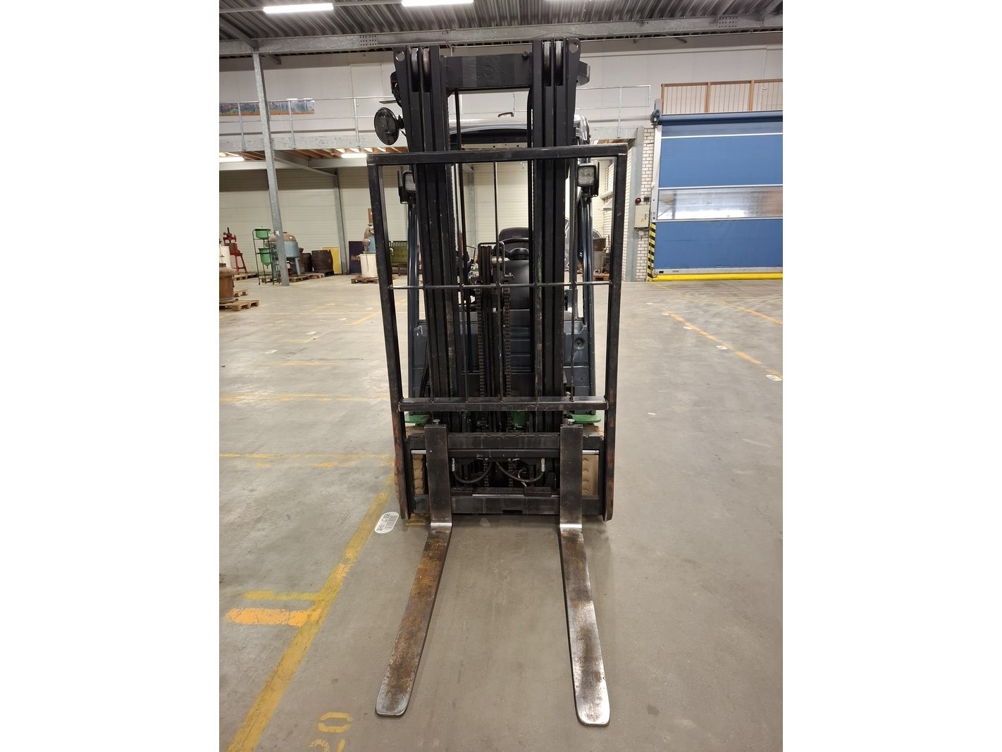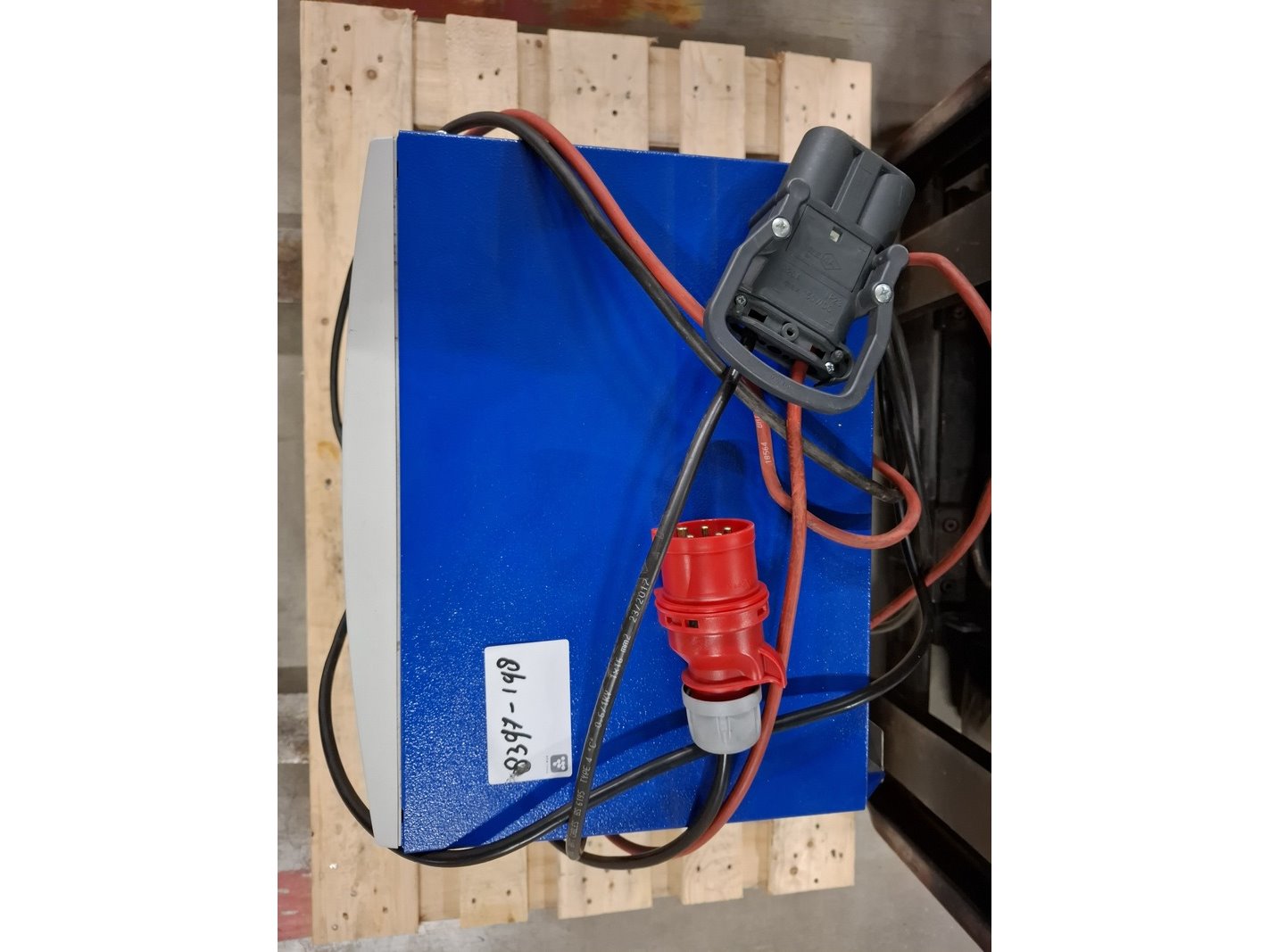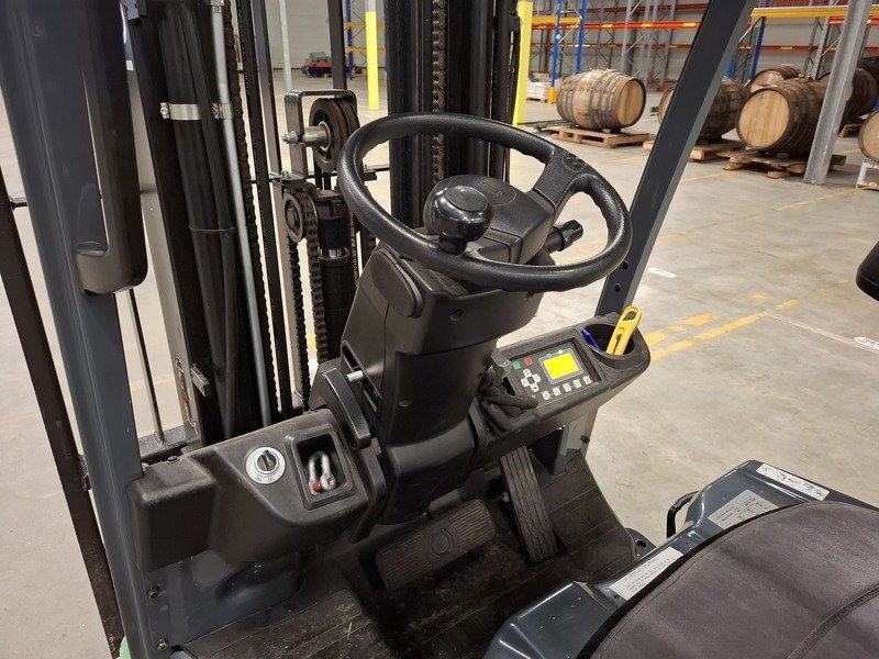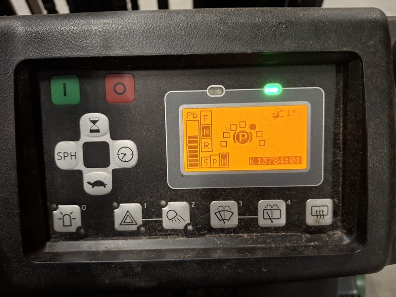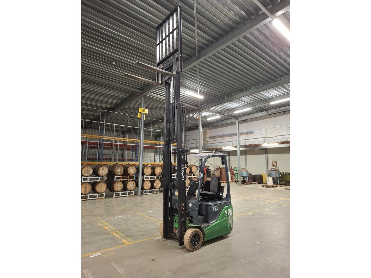 Merk: Toyota Product: Elektrische vorkheftruck Specificaties: afgelezen urenstand 13783, max 1500kg, 3-delige hefmast, masthoogte ca 210cm, hefhoogte ca 470cm, freelift, side-shift, lepellengte ca 97cm, 48V, incl. lader