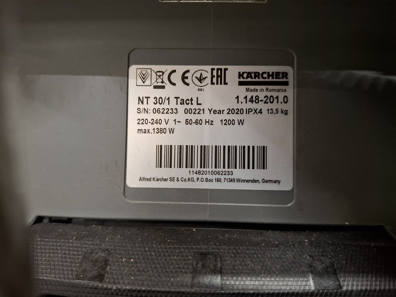 Merk: Karcher Product: Bedrijfstofzuiger BouwJaar: 2020 Specificaties: 1200W, 230V