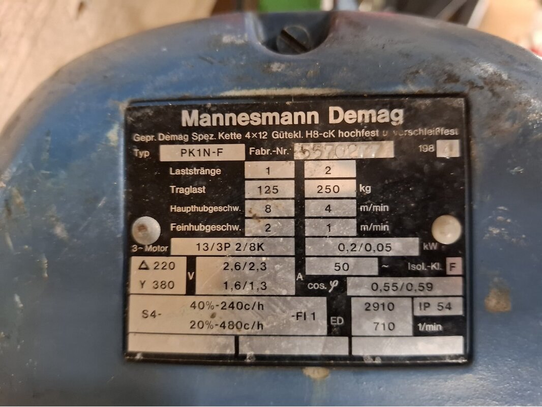 Merk: Demag Product: Elektrische kettingtakel Specificaties: met diverse toebehoren