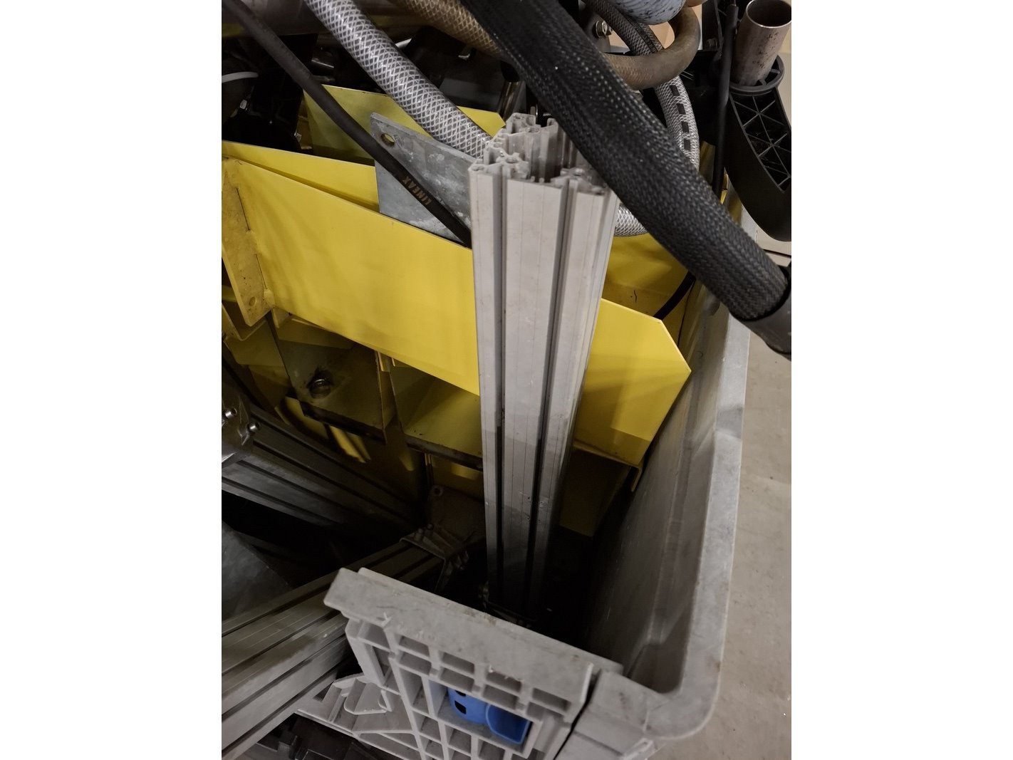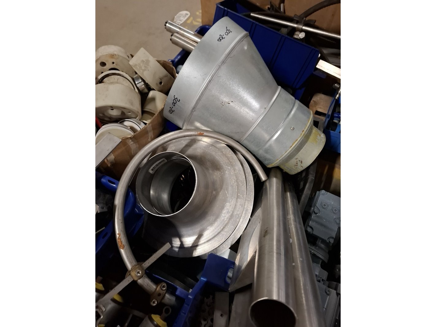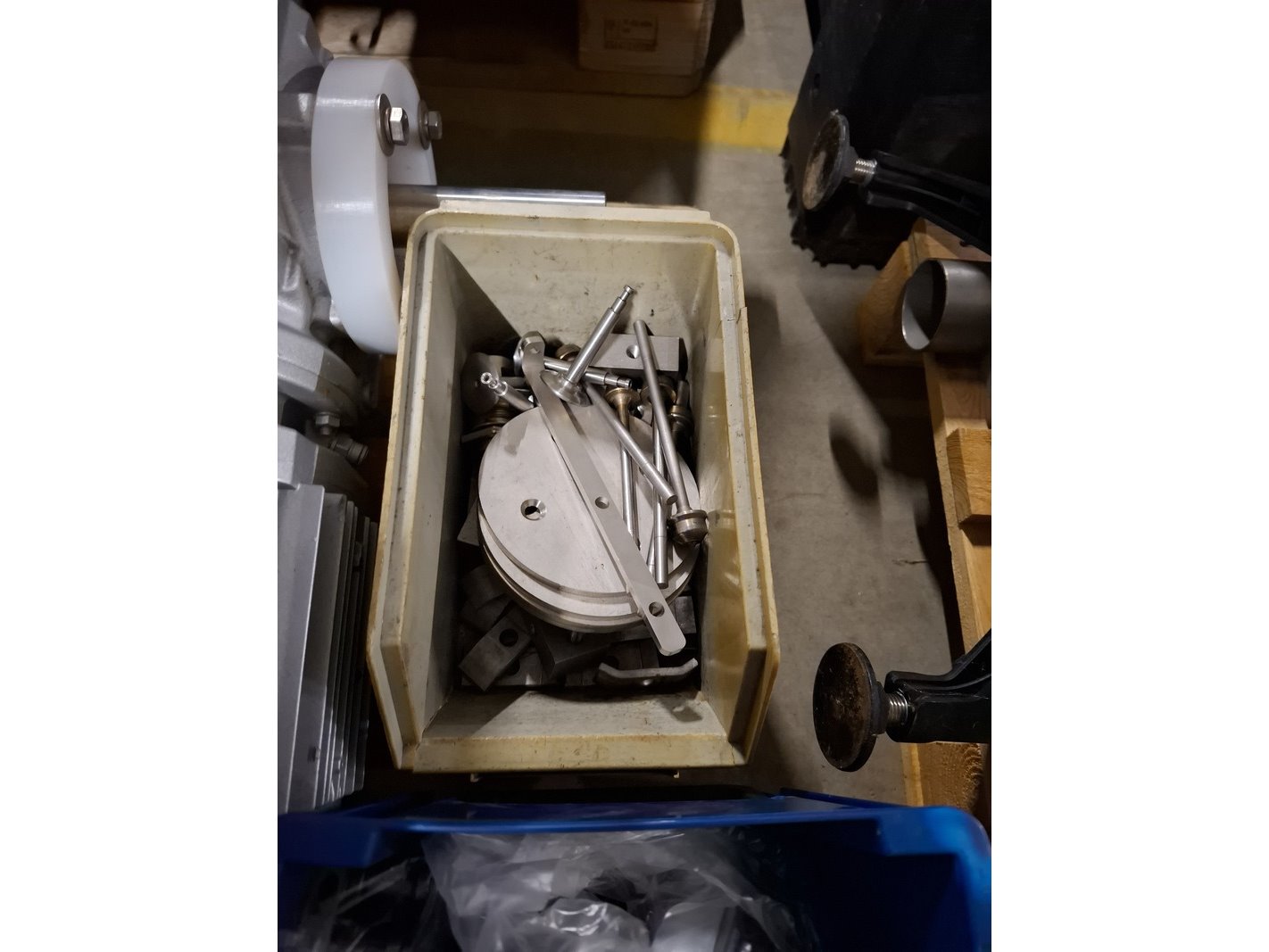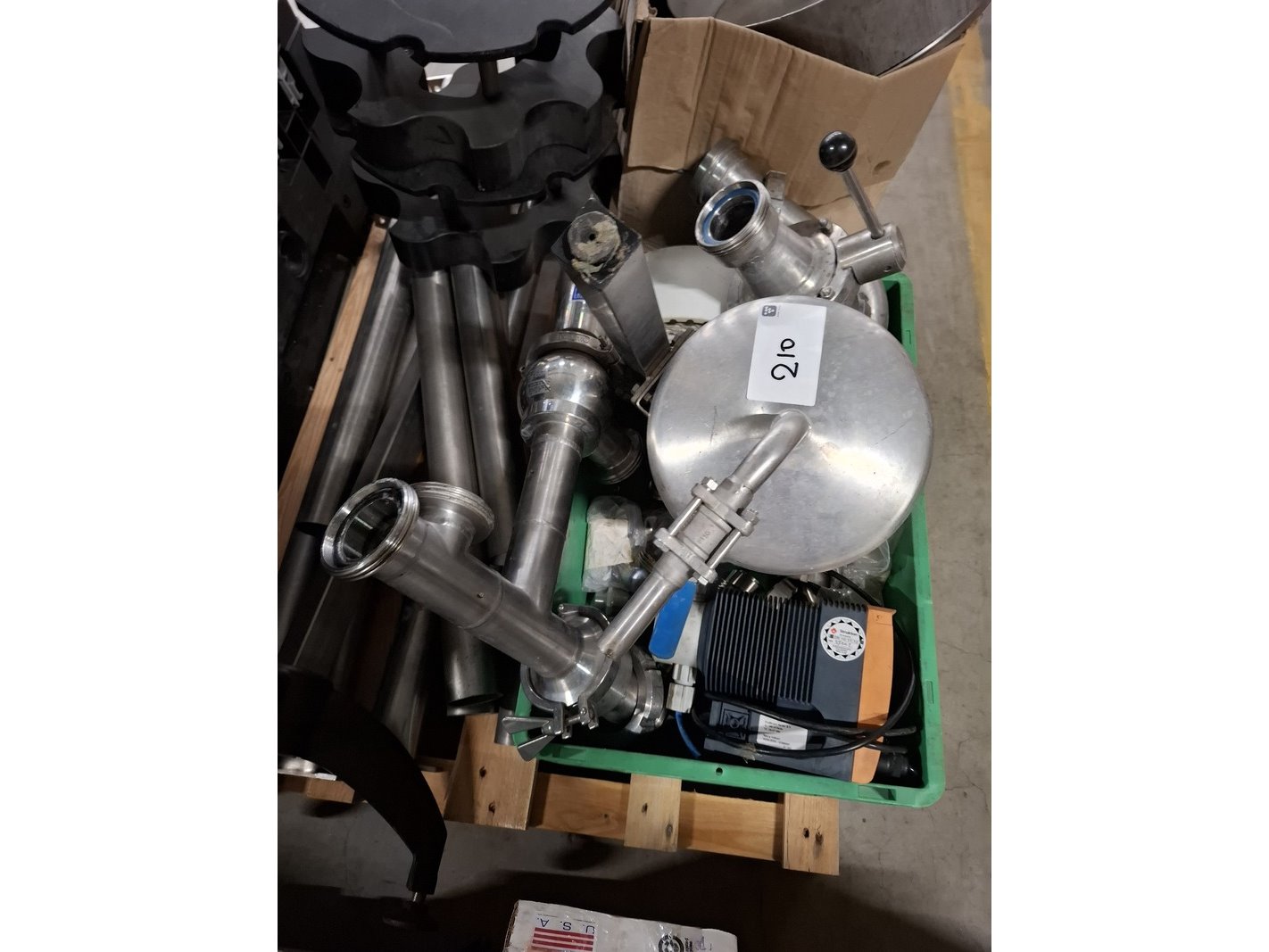 Product: Partij machine onderdelen en toebehoren Specificaties: RVS, kunststof, metaal, etc.; o.a. slang, aanrijbeveiliging palletstelling; looprollen; drukmeters; koppelingen; bevestigingsmateriaal; etc. (op 4x pallet)