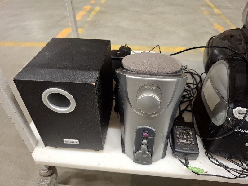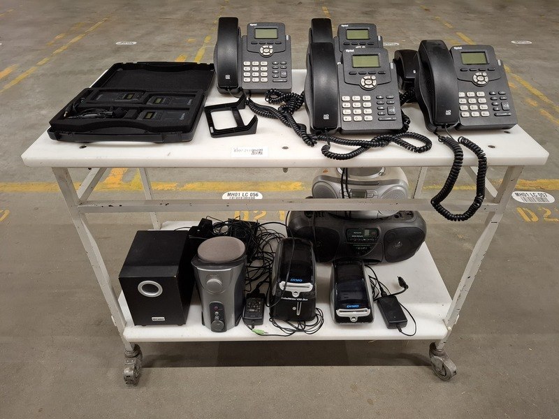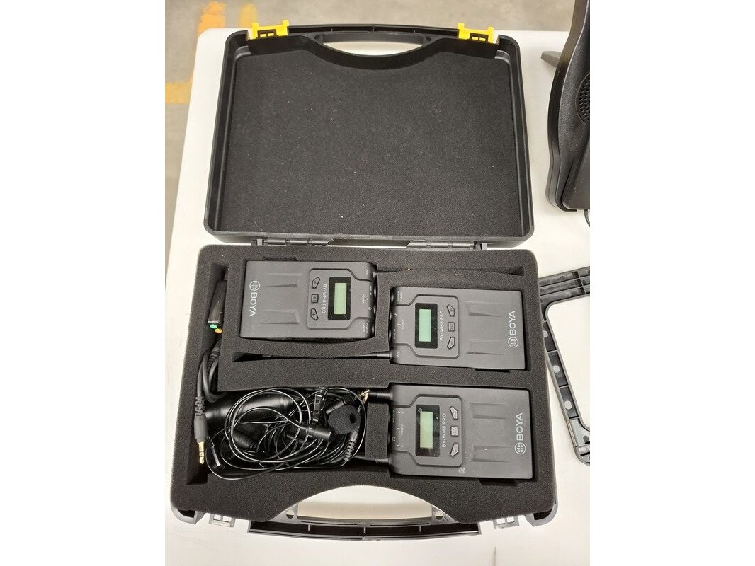 Merk: o.a. Tiptel, Boya Product: Diverse multimedia Specificaties: o.a. telefoons, radio's, Dual channel draadloos microfoon systeem, etc. (incl magazijnwagen)