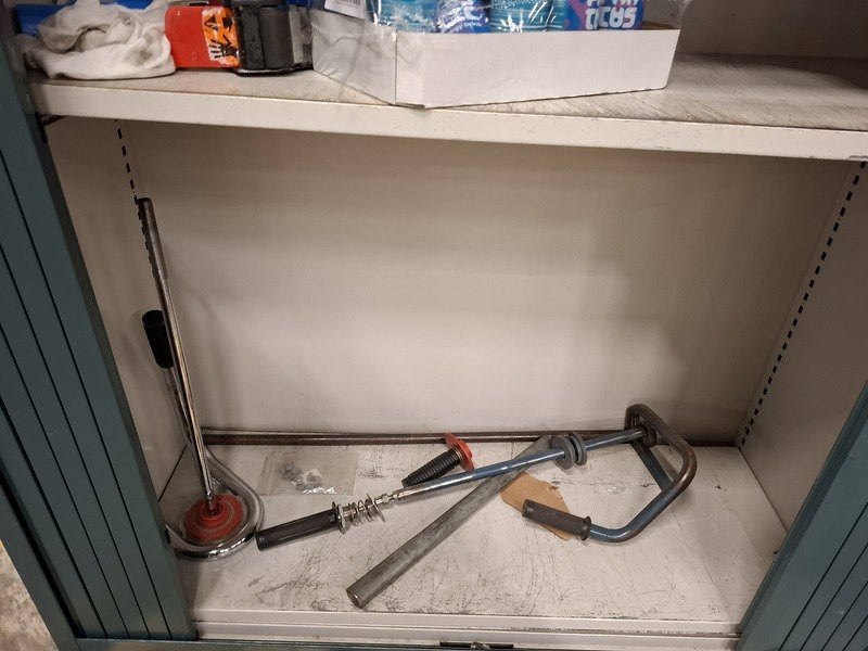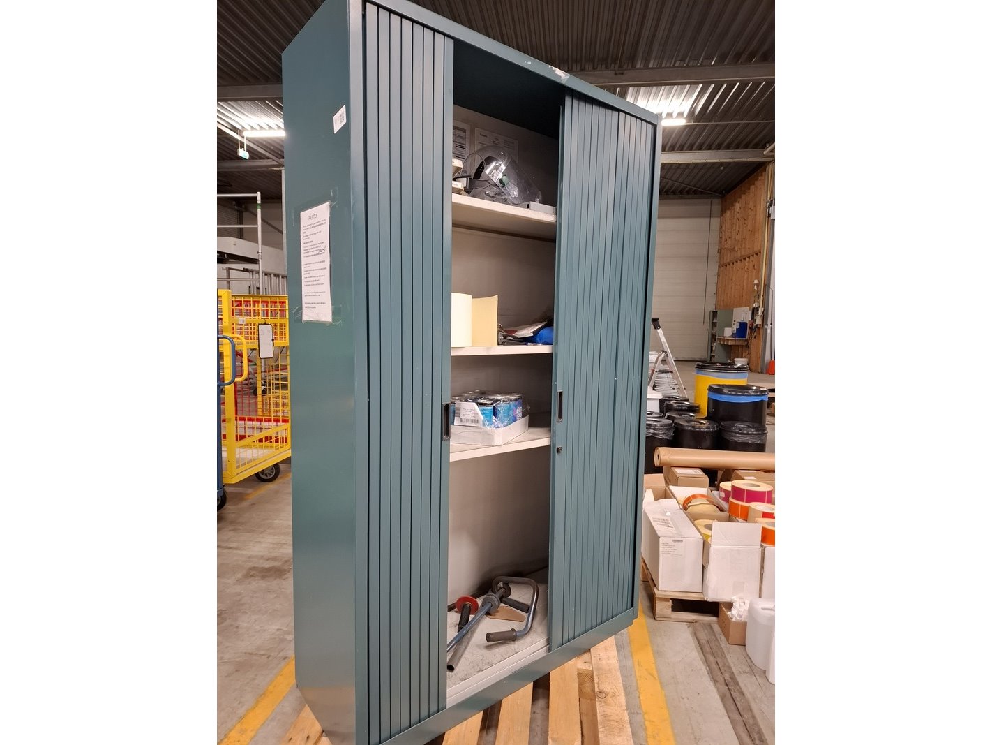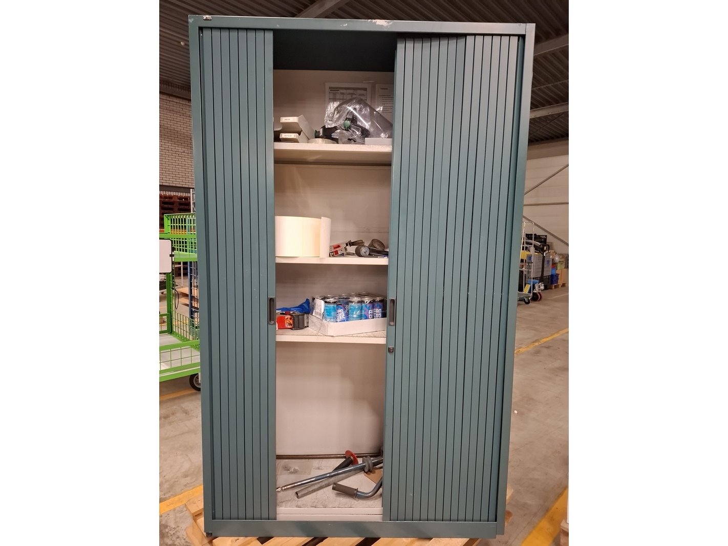 Product: Lameldeurkast met inhoud Afmeting: hxbxd ca 195x120x47cm Specificaties: deur beschadigd