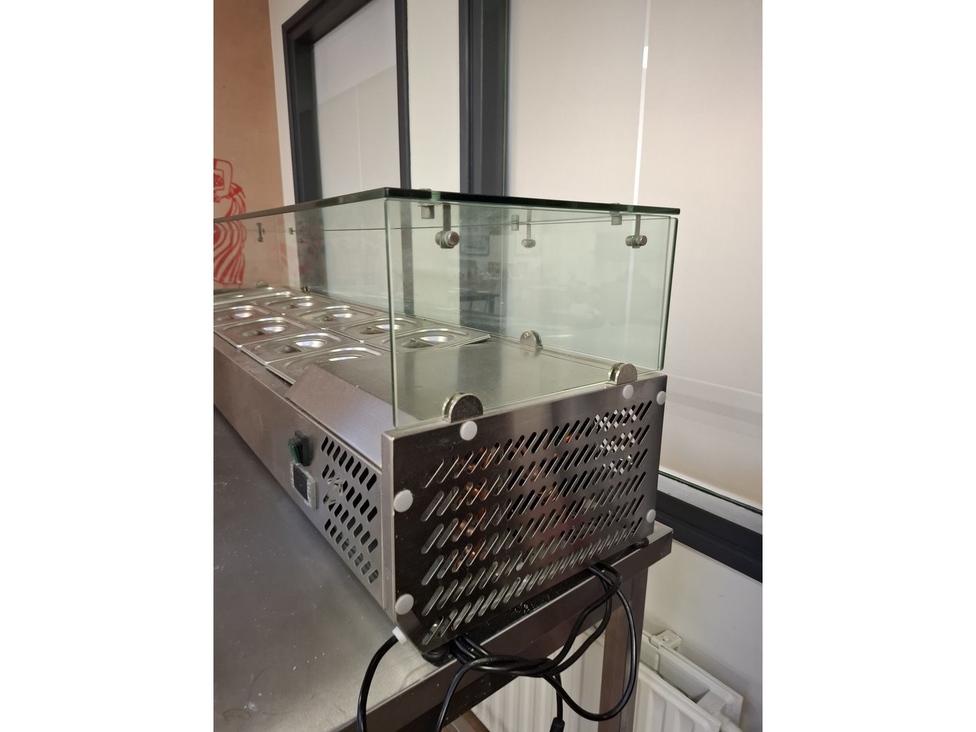 Product: Diverse horeca benodigdheden Specificaties: bestaande uit: RVS werktafel, lxbxh ca 200x70x92cm; saladiere hxbxd ca 44x160x40cm, 230V; koelkast Liebherr, afm. ca 82x59x55cm