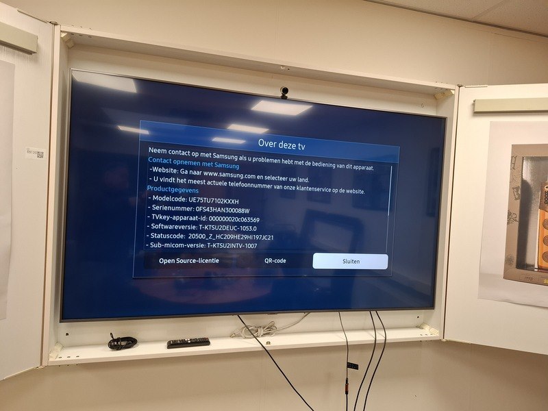Merk: Samsung Product: Smart tv in wandkast Specificaties: 75inch beeldscherm, incl. kast, hxbxd ca 123x174x17cm, webcam en afstandsbediening