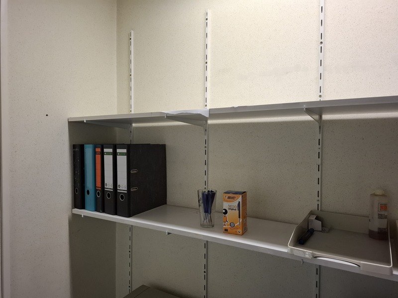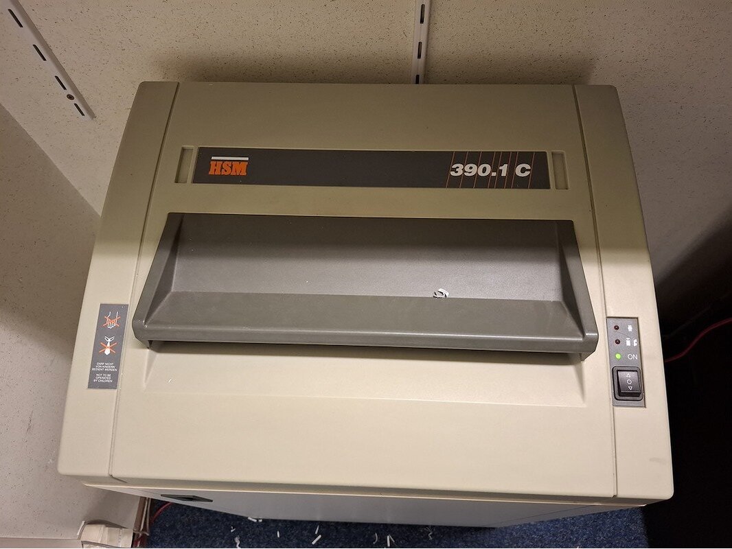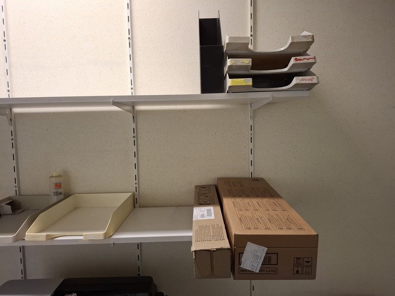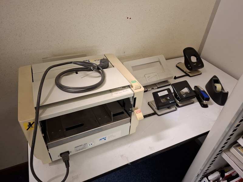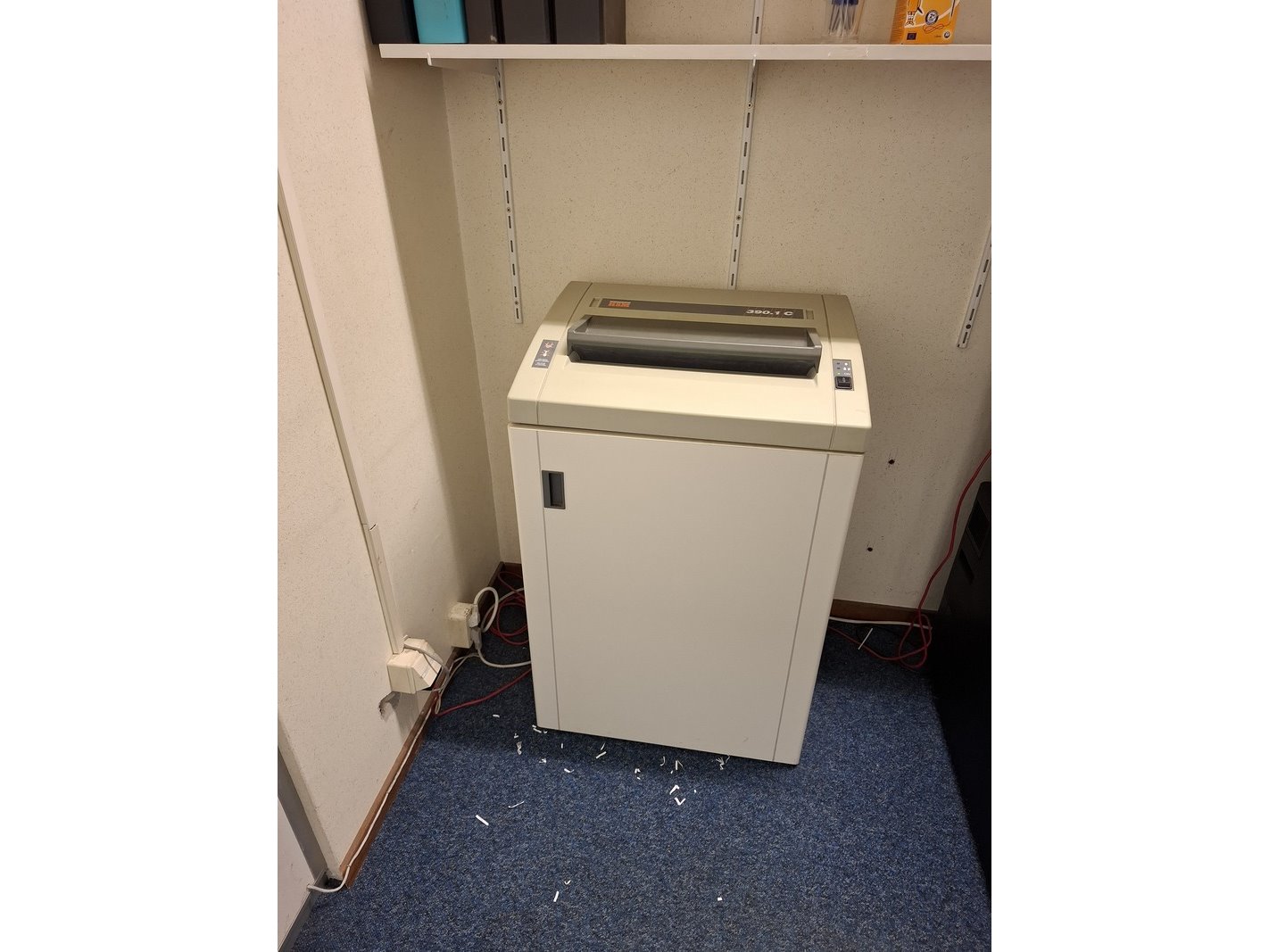 Product: Inhoud printerruimte Specificaties: bestaande uit: papierversnipperaar, lameldeurkast met diverse kantoorgerei, postbakken, etc.