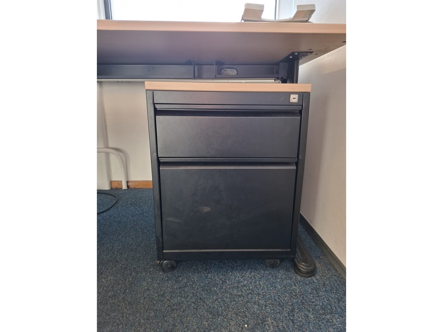 Product: Diverse kantoorinventaris Specificaties: bestaande uit: 2x archiefkast, hxbxd ca 194x92x42cm, incl. sleutel; bureauopstelling, lxbxh ca 360x240/80x75cm, in hoogte verstelbaar; 2x bureaustoel; ladeblok; stoel en tafel Let op! Computer en randzaken behoren niet tot de kavel