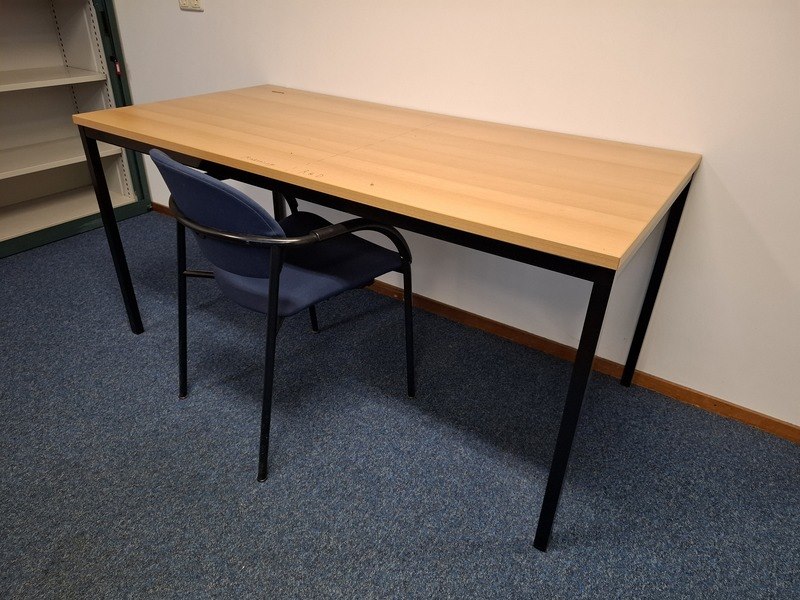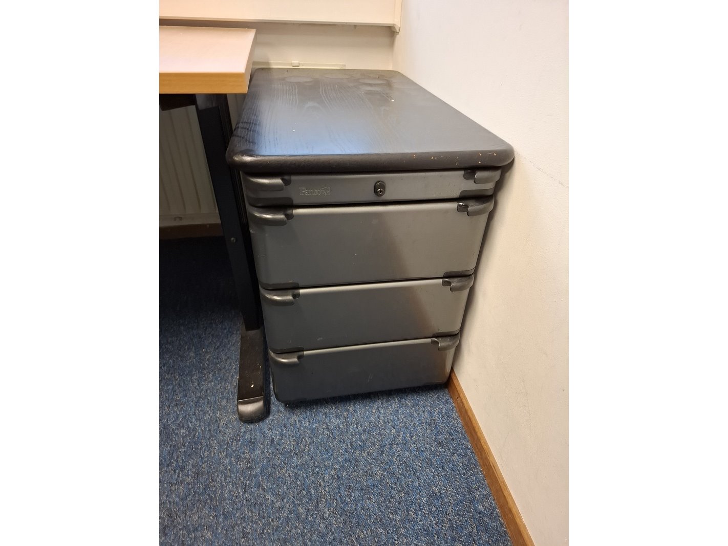 Product: Diverse kantoorinventaris Specificaties: bestaande uit: 2x lameldeurkast, metaal, hxbxd ca 195x120x47xm; 2x hoekbureau, lxbxh ca 200/160x80cm; 2x ladeblok; 3x bureaustoel; 1x tafel, lxbxh ca 160x80x76cm, in hoogte verstelbaar; 1x tafel, lxbxh ca 160x80x76cm; 2x ontvangst stoel