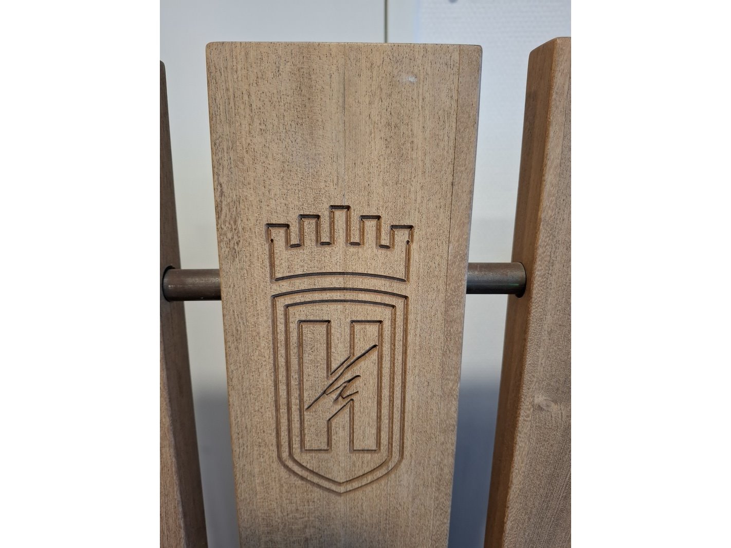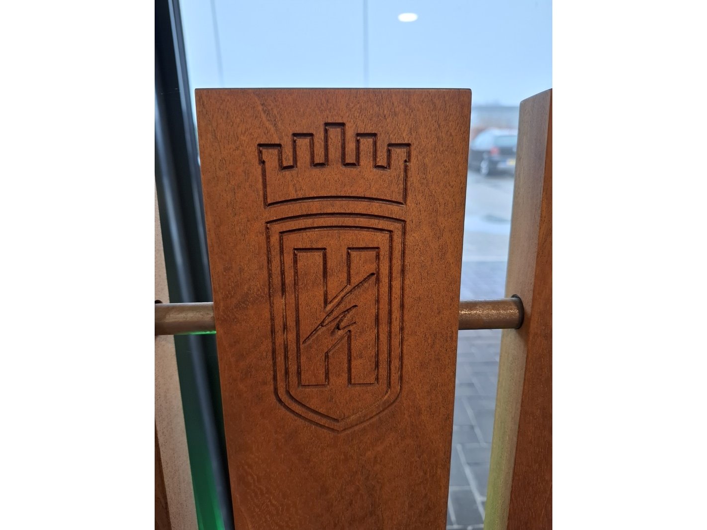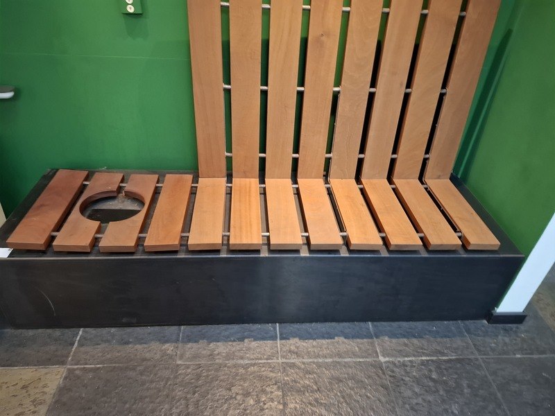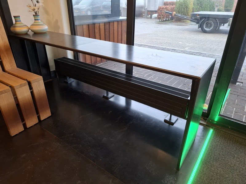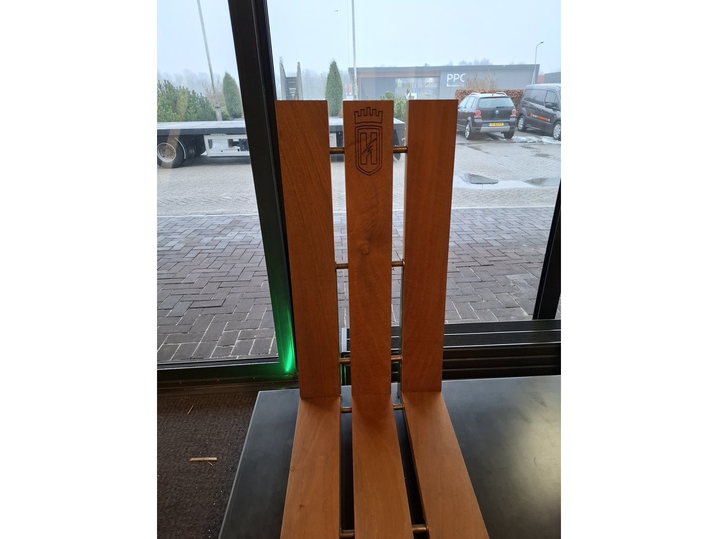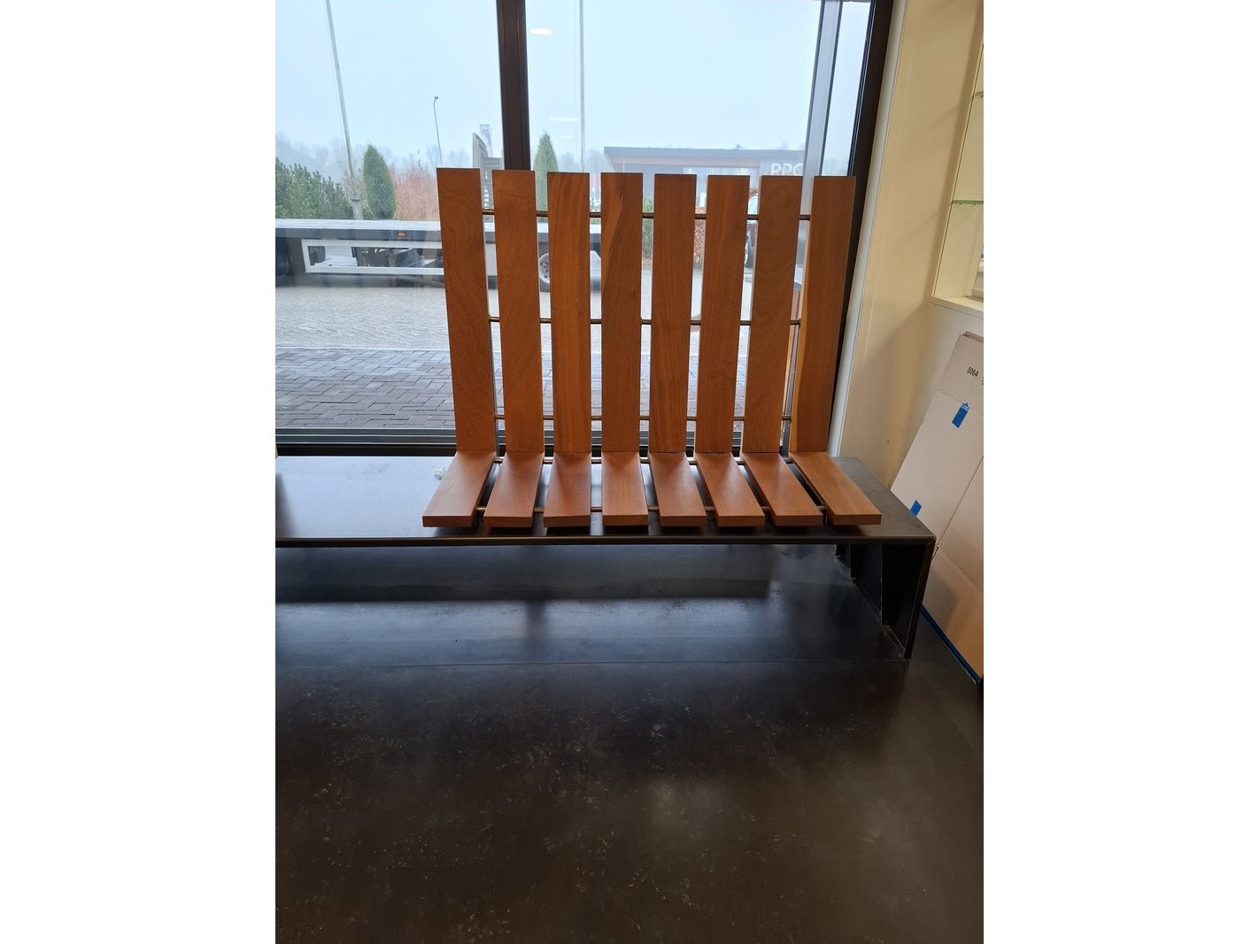Product: Design wachtruimte opstelling 'Hooghoudt' Specificaties: bestaande uit 1x stoelopstelling lxbxh ca 243x57x125cm; 1x tafel lxbxh ca 221x44x75cm met 4x stoelen,1x stoelopstelling ca 201x62x118cm