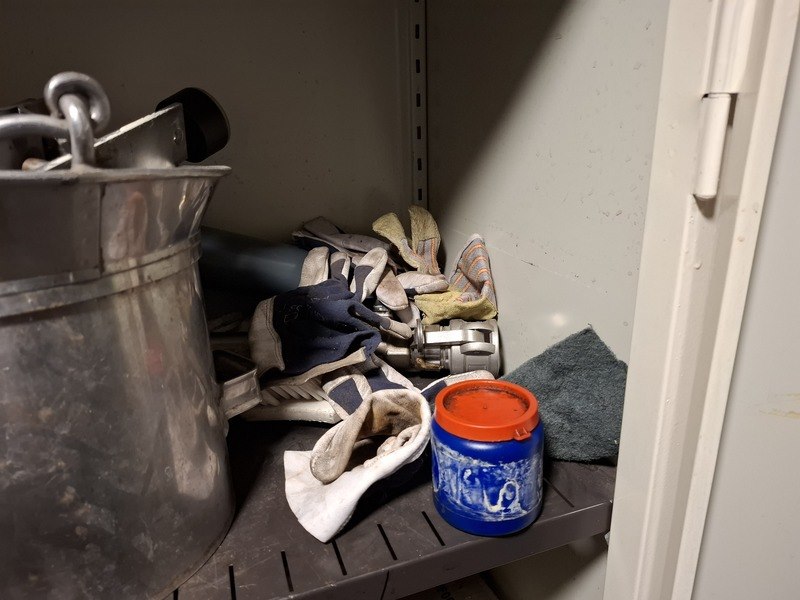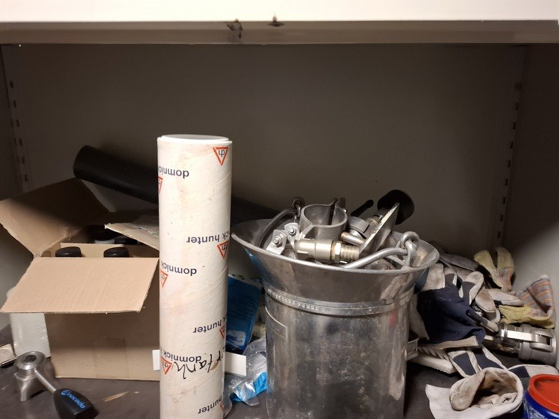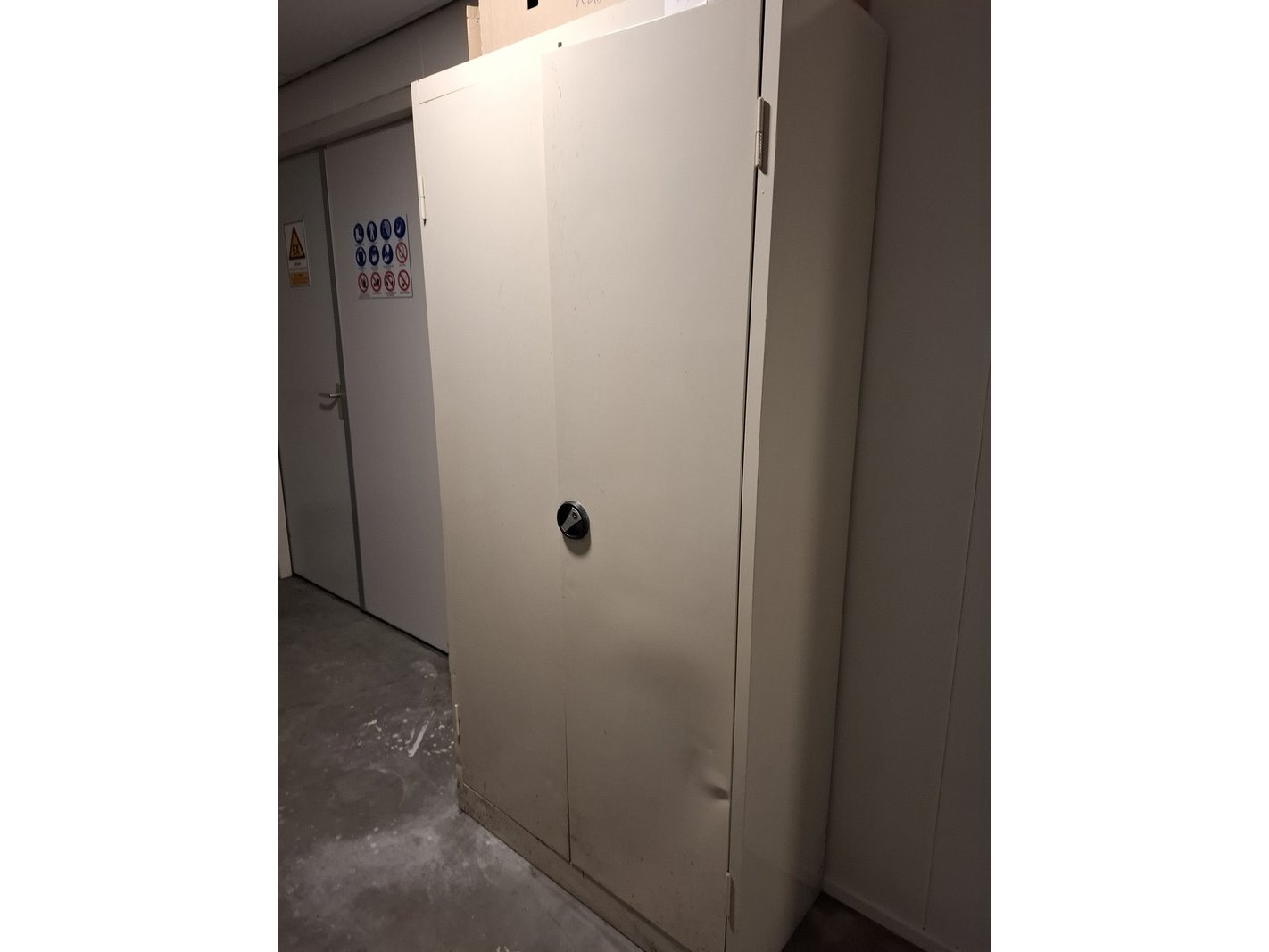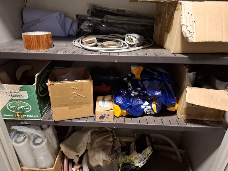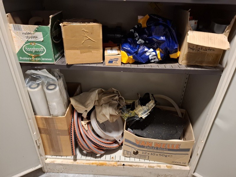 Product: 2x Lab kast met kantoorkast Specificaties: afm. lab kast, hxbxd ca 210x80x45cm; afm. kantoorkast met inhoud, hxbxd ca 195x95x42cm