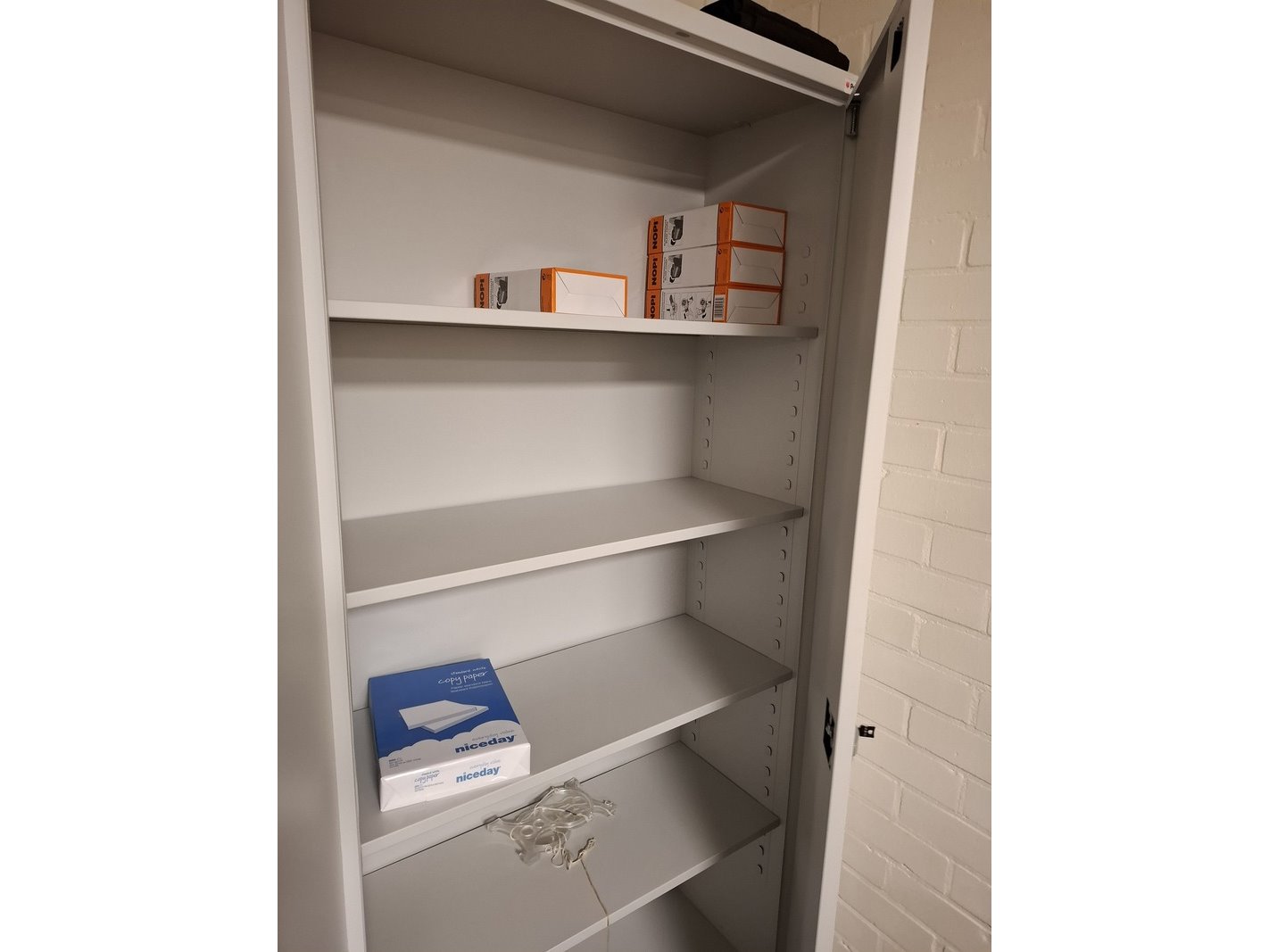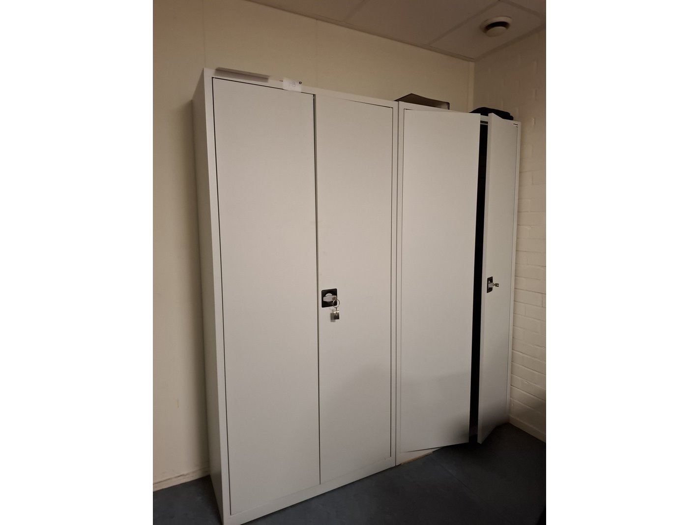 Product: 2x Archiefkast met inhoud o.a. gehoorbescherming Afmeting: hxbxd ca 195x92x42cm Specificaties: incl. sleutel