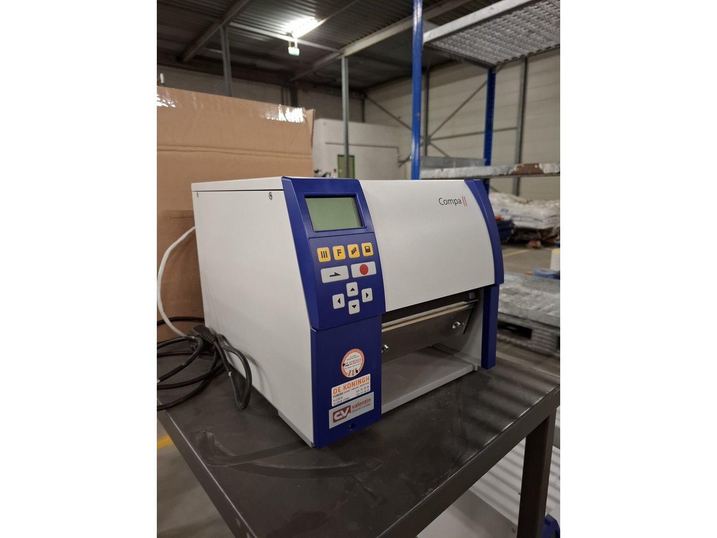 Merk: Carl Valentin Compa II Product: Industriële thermische labelprinter Specificaties: incl. voedingskabel