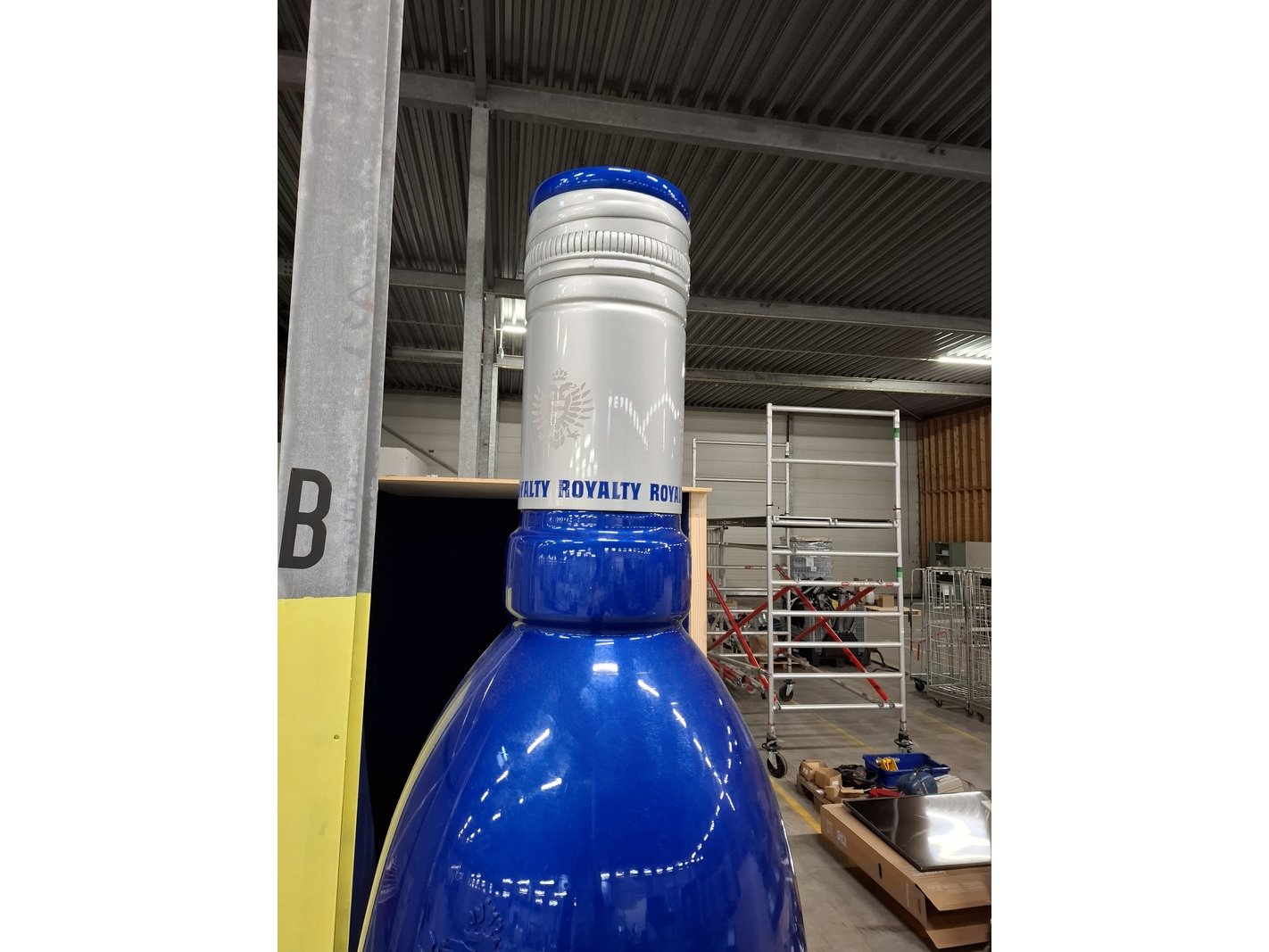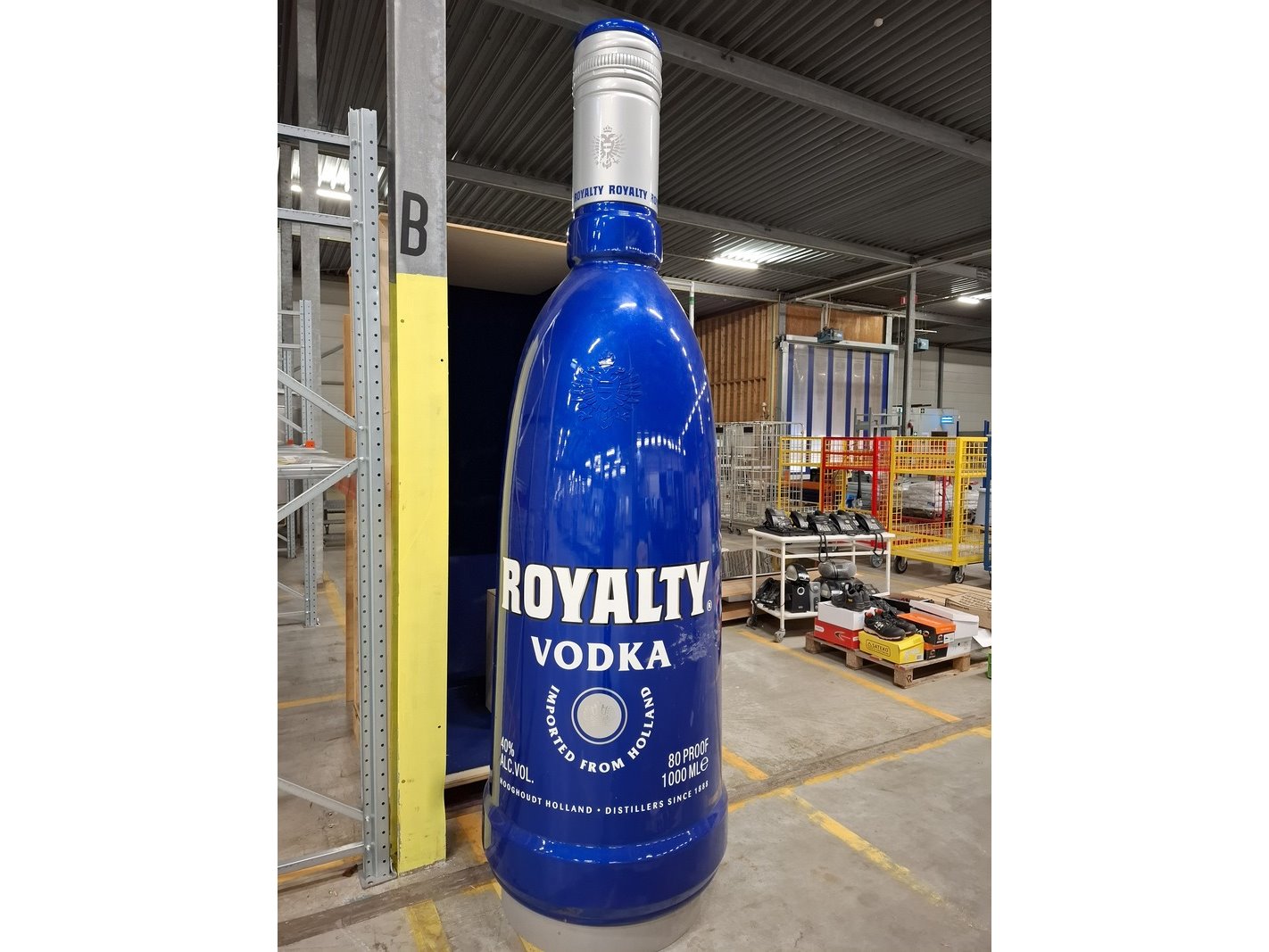 Product: Reclamezuil 'Royalty Vodka' Materiaal: kunststof Afmeting: hxd ca 270x70cm Specificaties: incl houten transportkrat