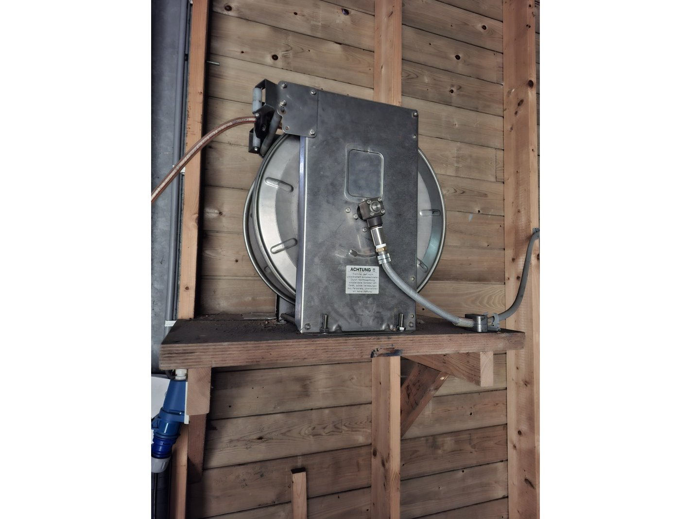 Merk: TMAS Product: RVS luchtslang haspel Specificaties: haspel met circa 30 mtr 1/2" luchtslang, Let op: zelf demonteren