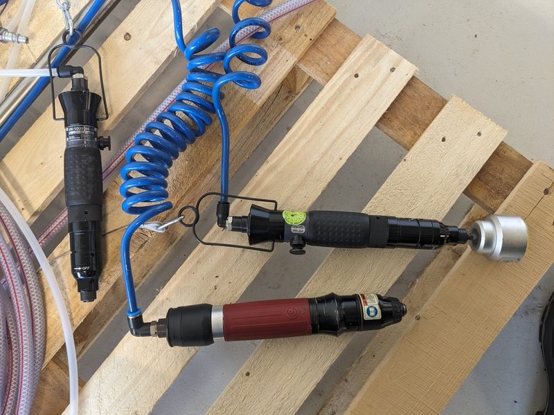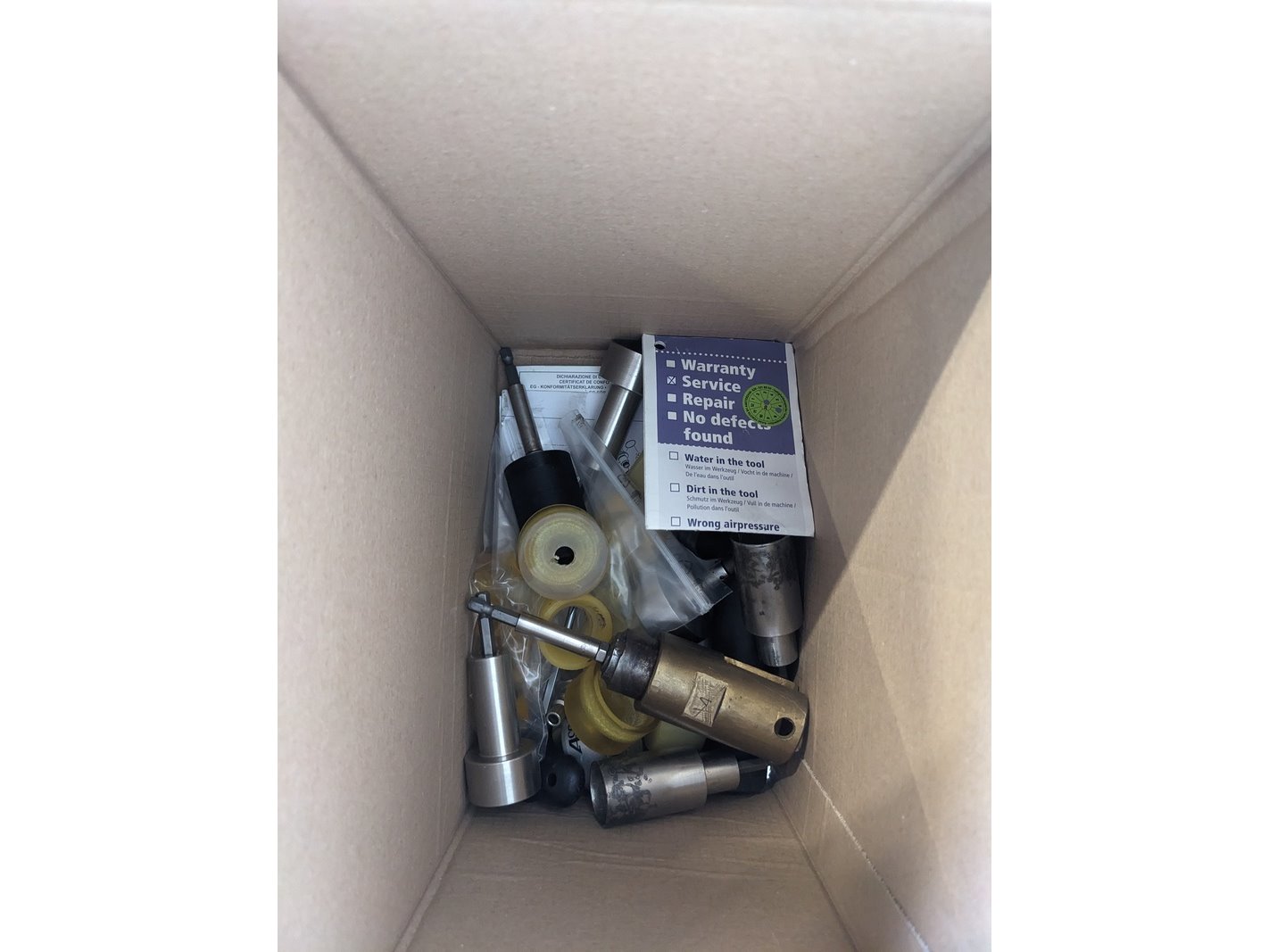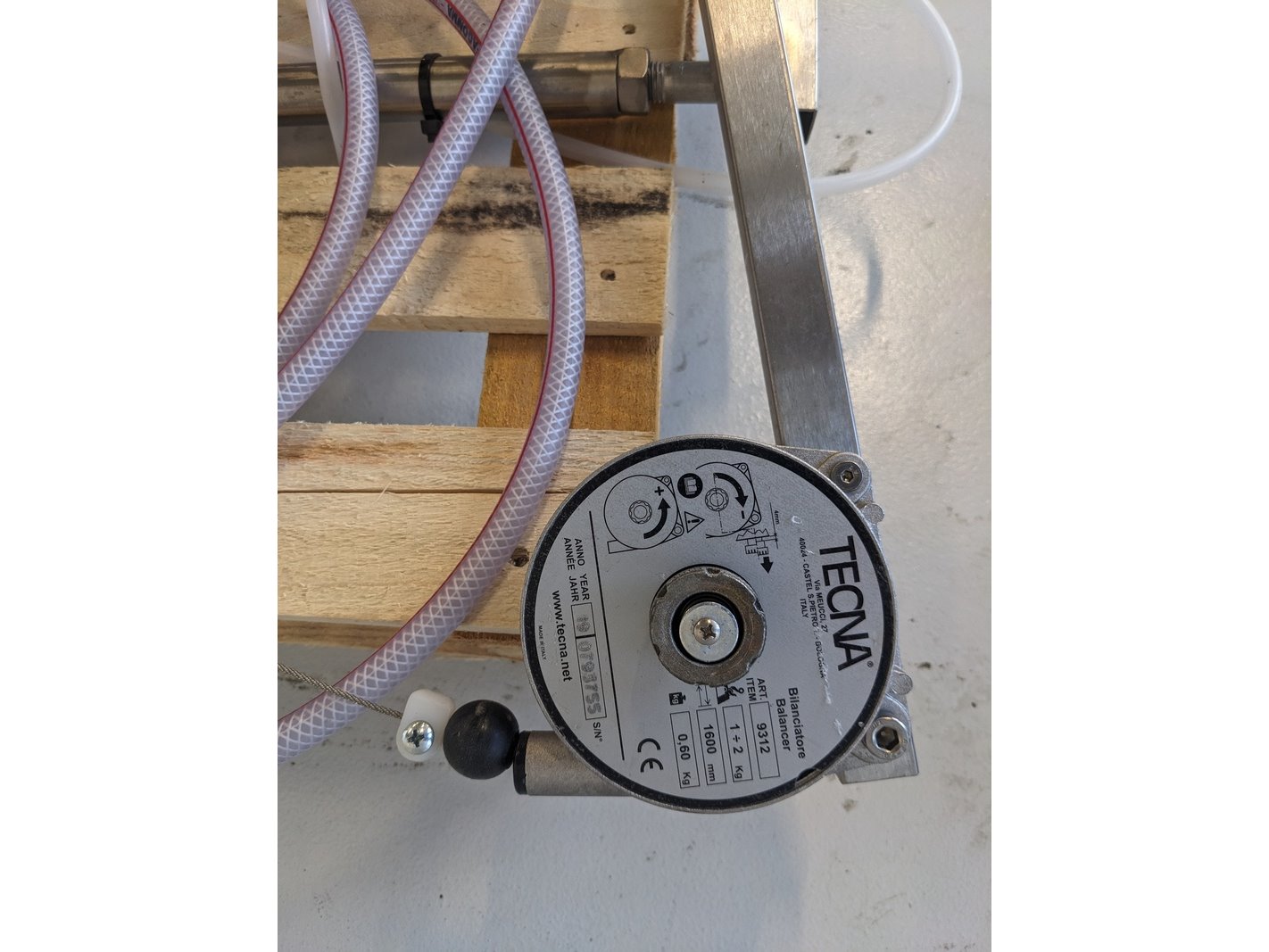 Merk: Redrooster Product: Hand doppensluiter Kleur: grijs Materiaal: RVS BouwJaar: 2022 Conditie: gebruikt Specificaties: pneumatische hand doppensluiter, 2x balancer, luchtslangen, diverse sluitkoppen